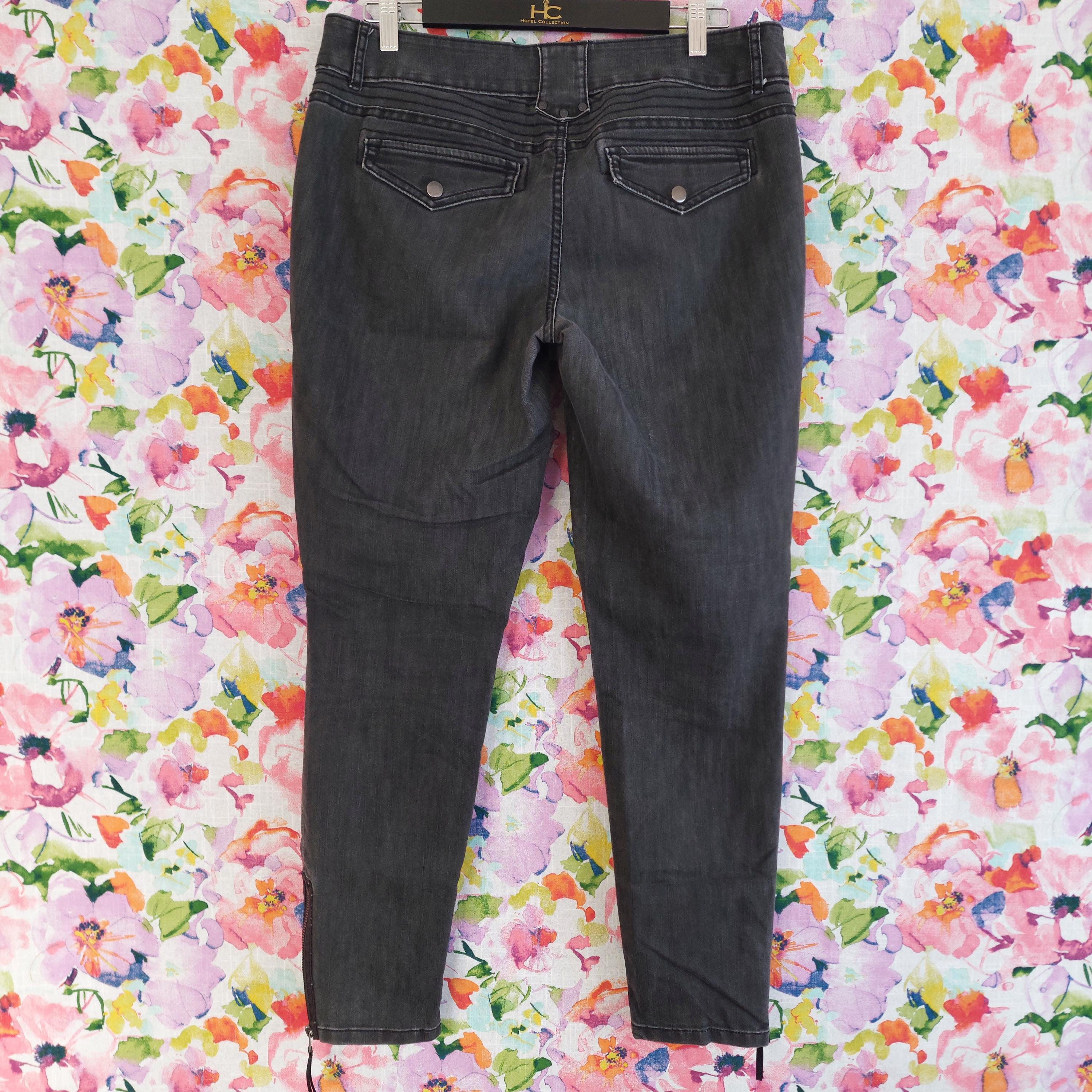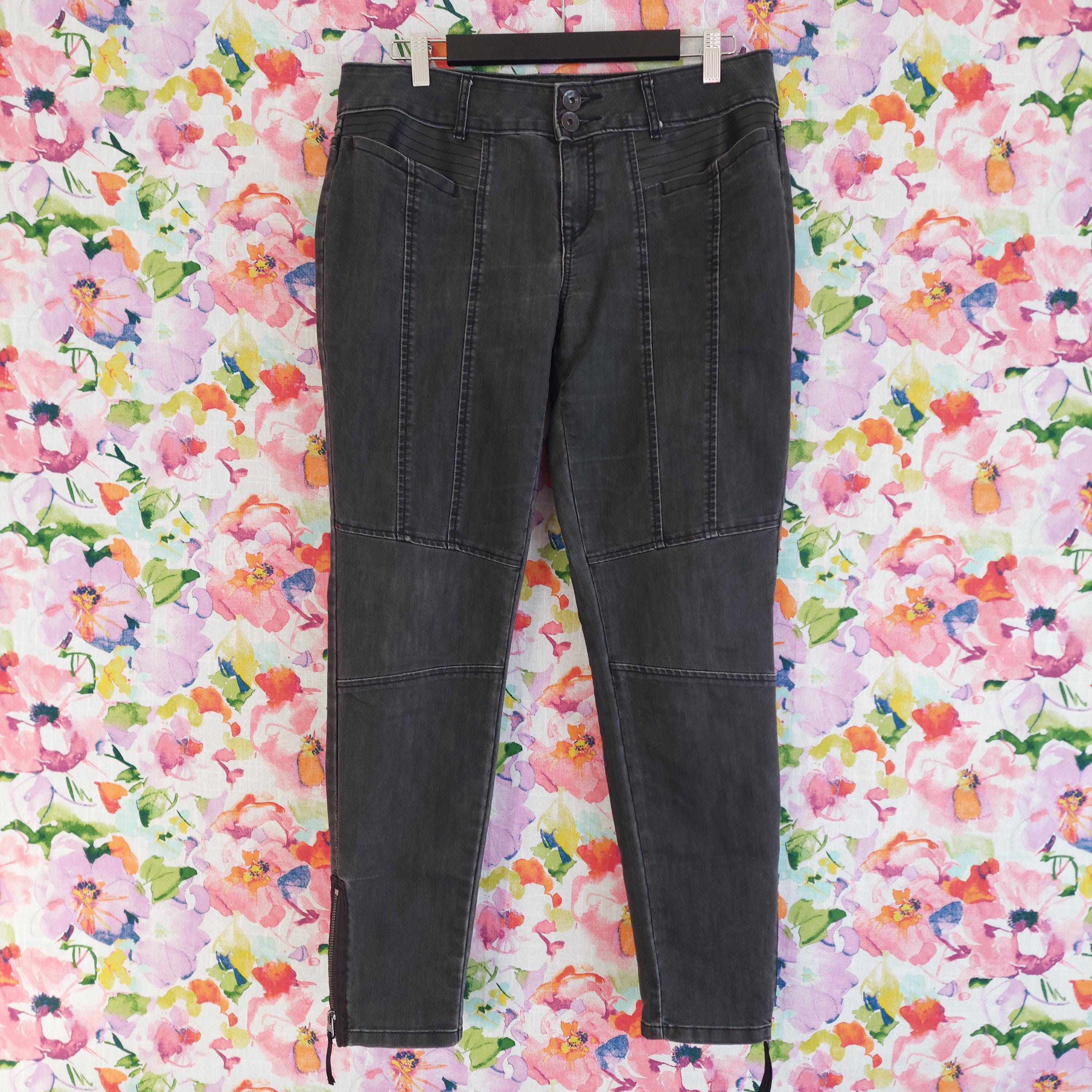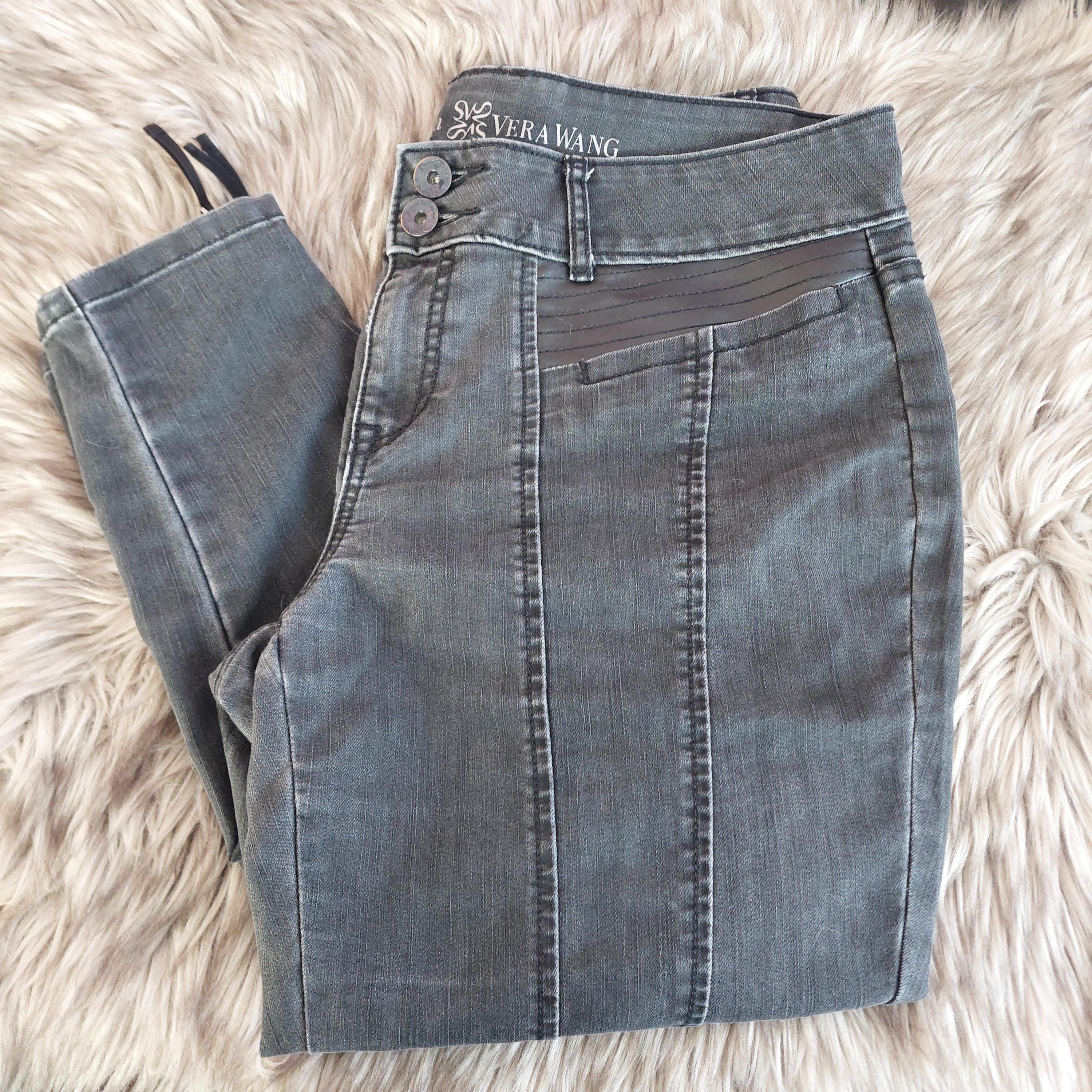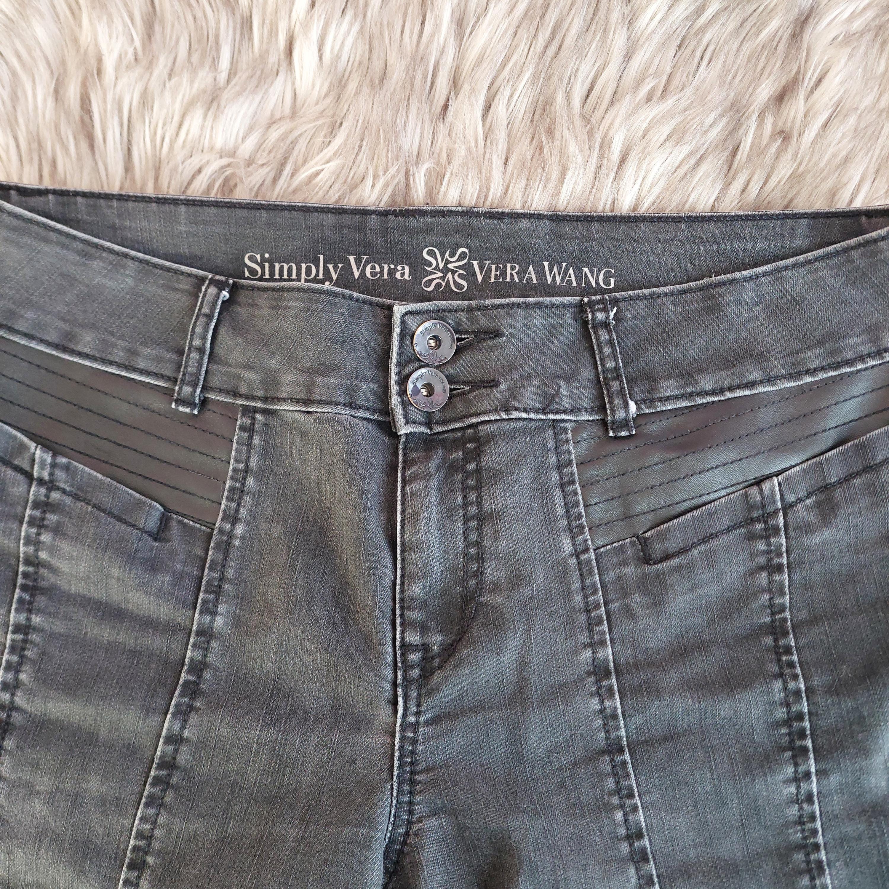 Vintage Simply Vera Vera Wang pull-on 4 pocket black denim skinny jeans with zipper ankles and seam details.