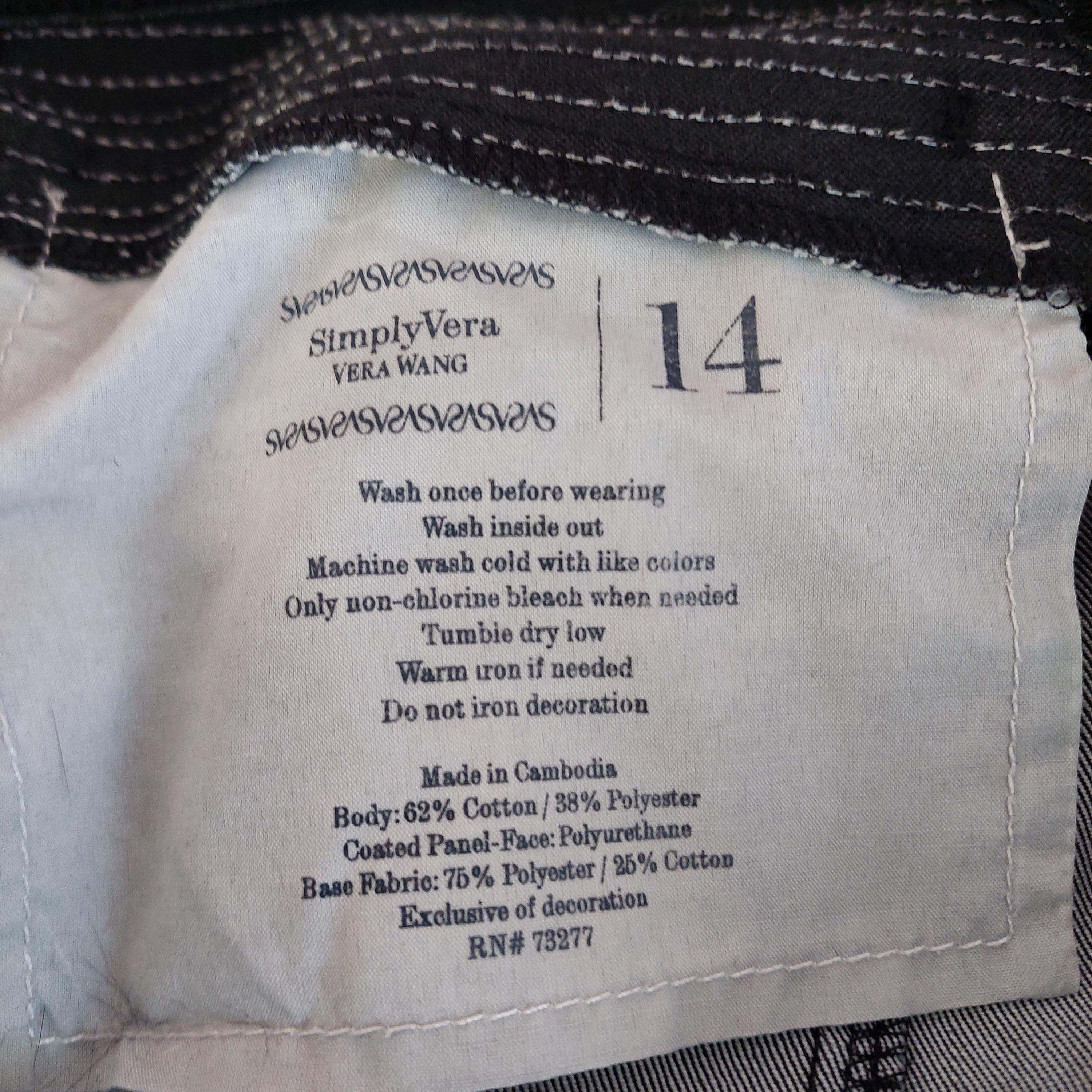 Tag: "Simply Vera Vera Wang - 14 - Body 62% Cotton, 38% Polyester, Coated Panel-Face Polyurethane, Base Fabric 75% Polyester, 25% Cotton - Machine Wash, Tumble Dry - Made in Cambodia"