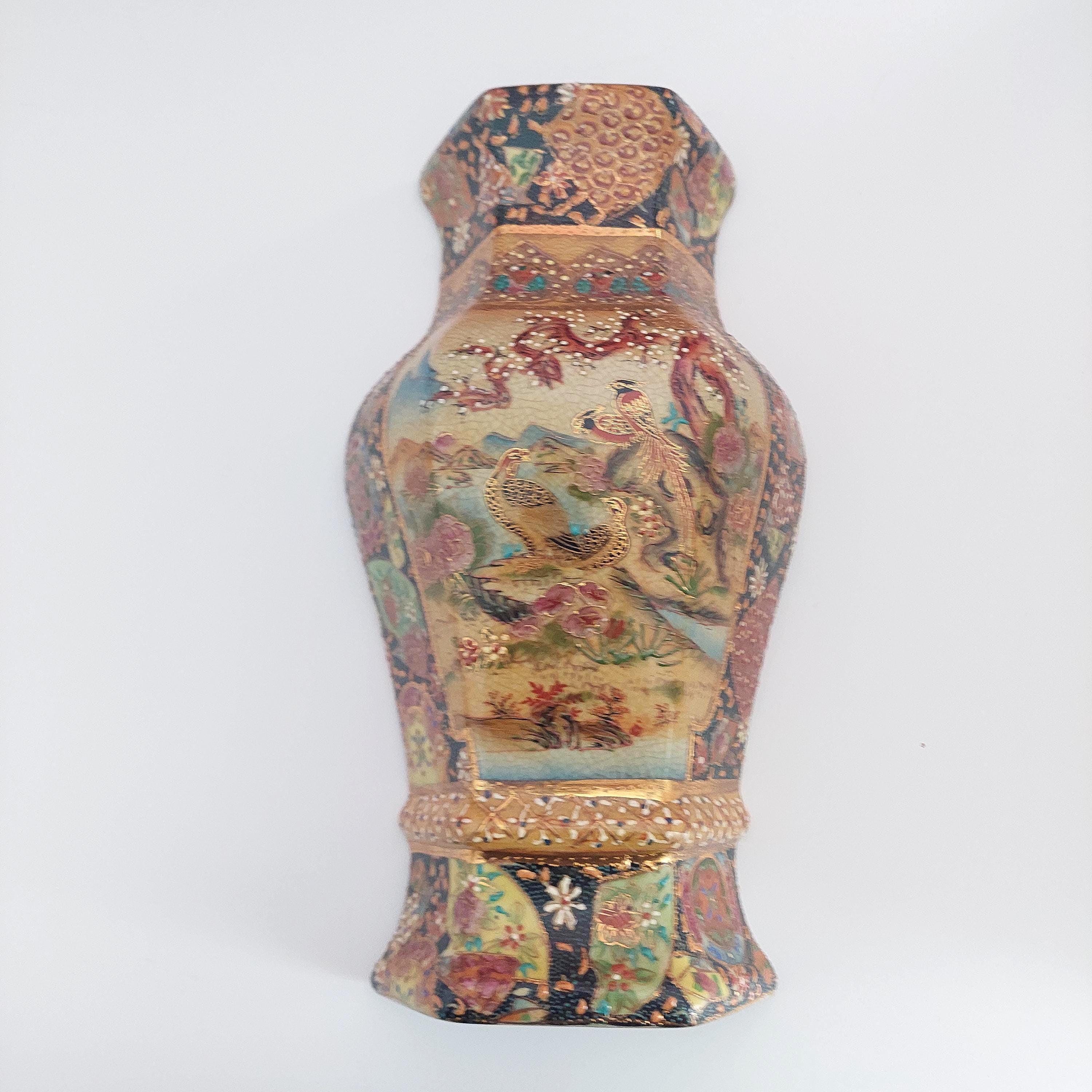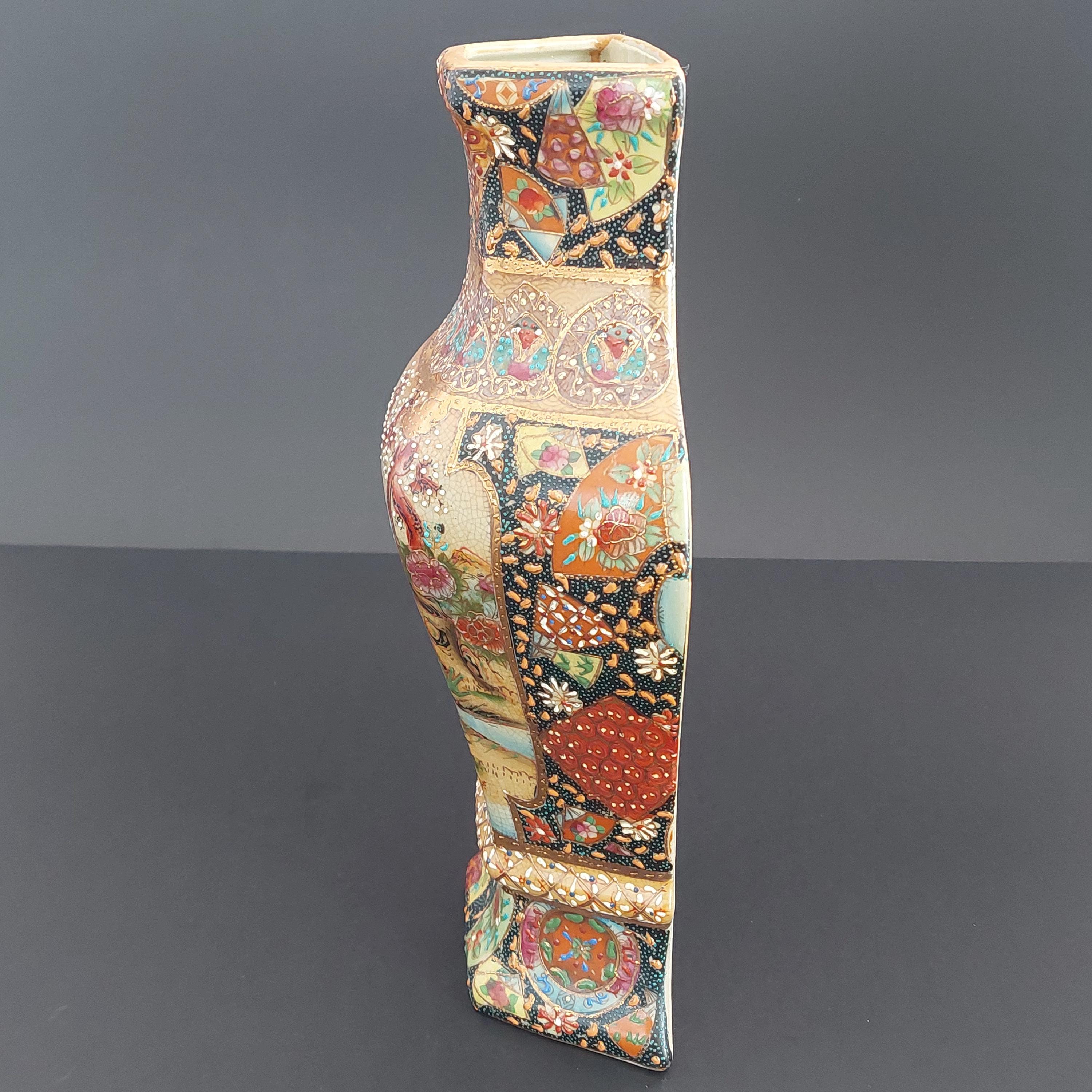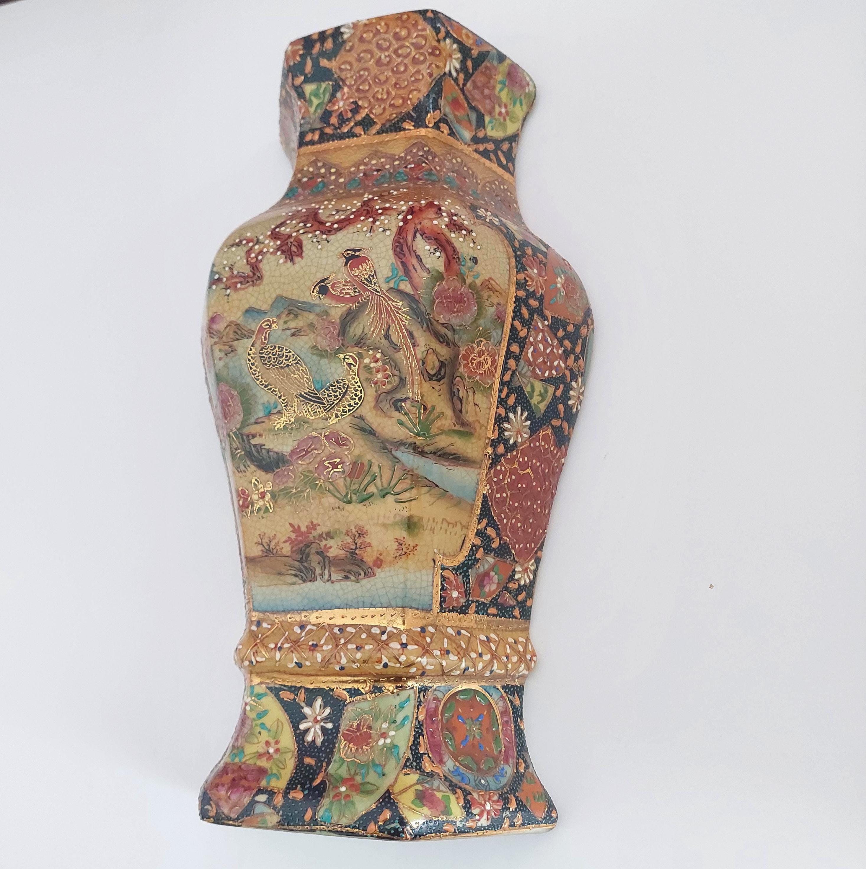 Vintage Royal Satsuma decorative wall planter in the style of genuine Satsuma Japanese pottery.