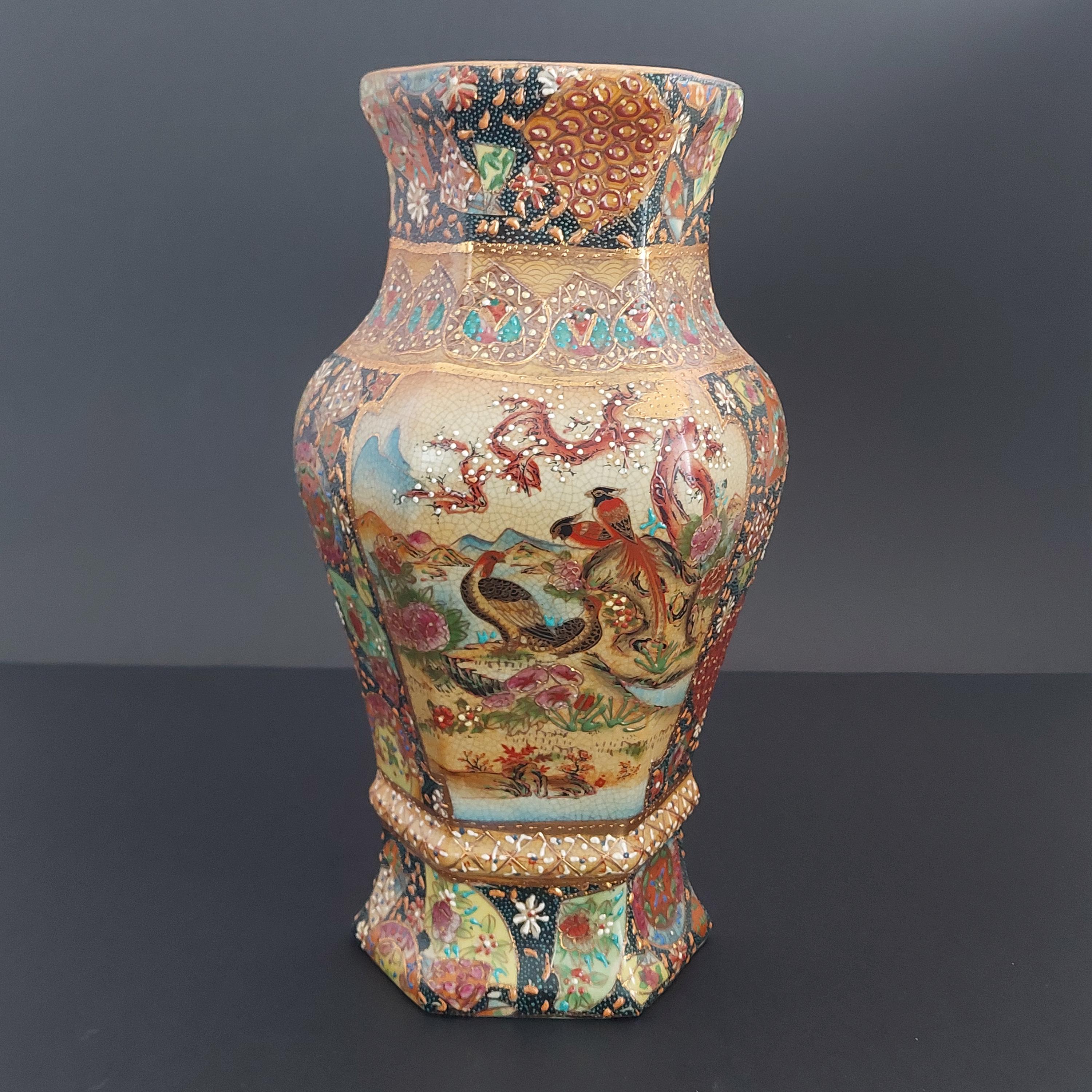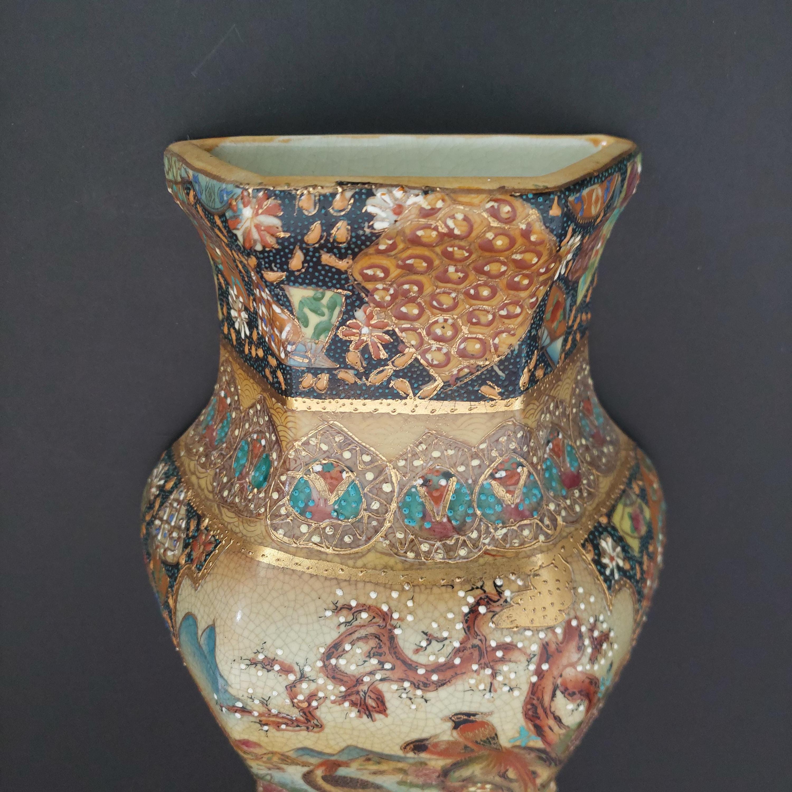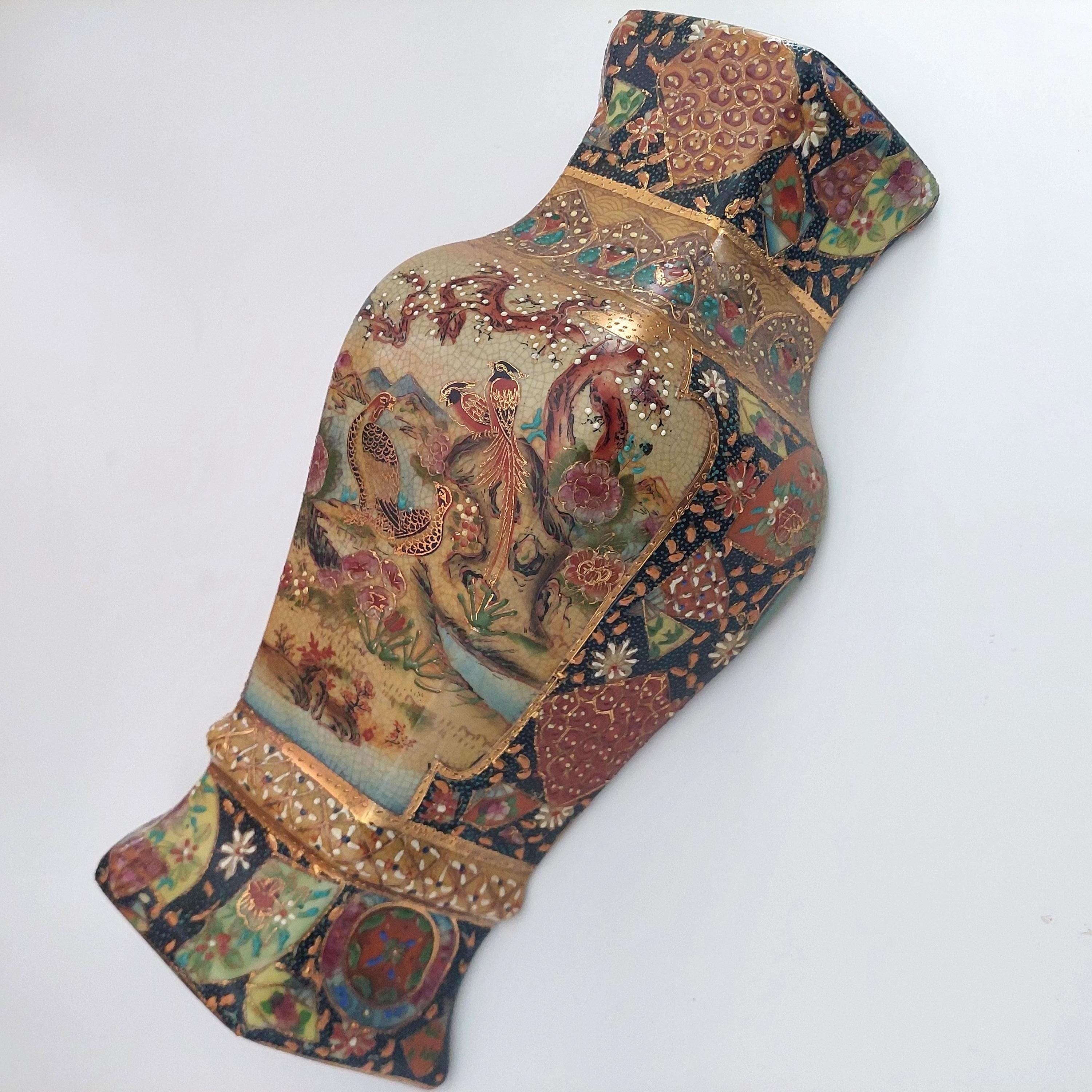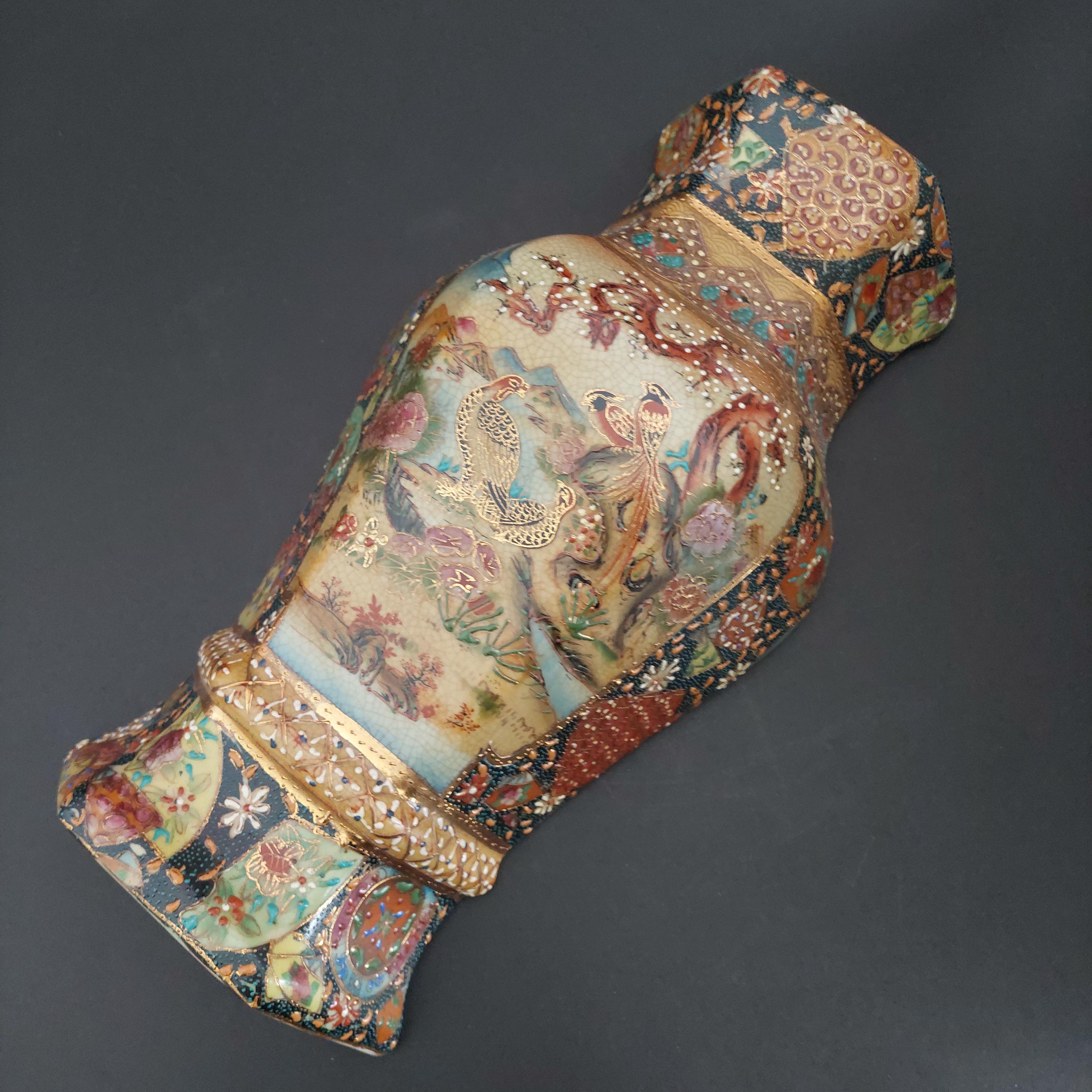 Vintage Royal Satsuma decorative wall planter in the style of genuine Satsuma Japanese pottery.