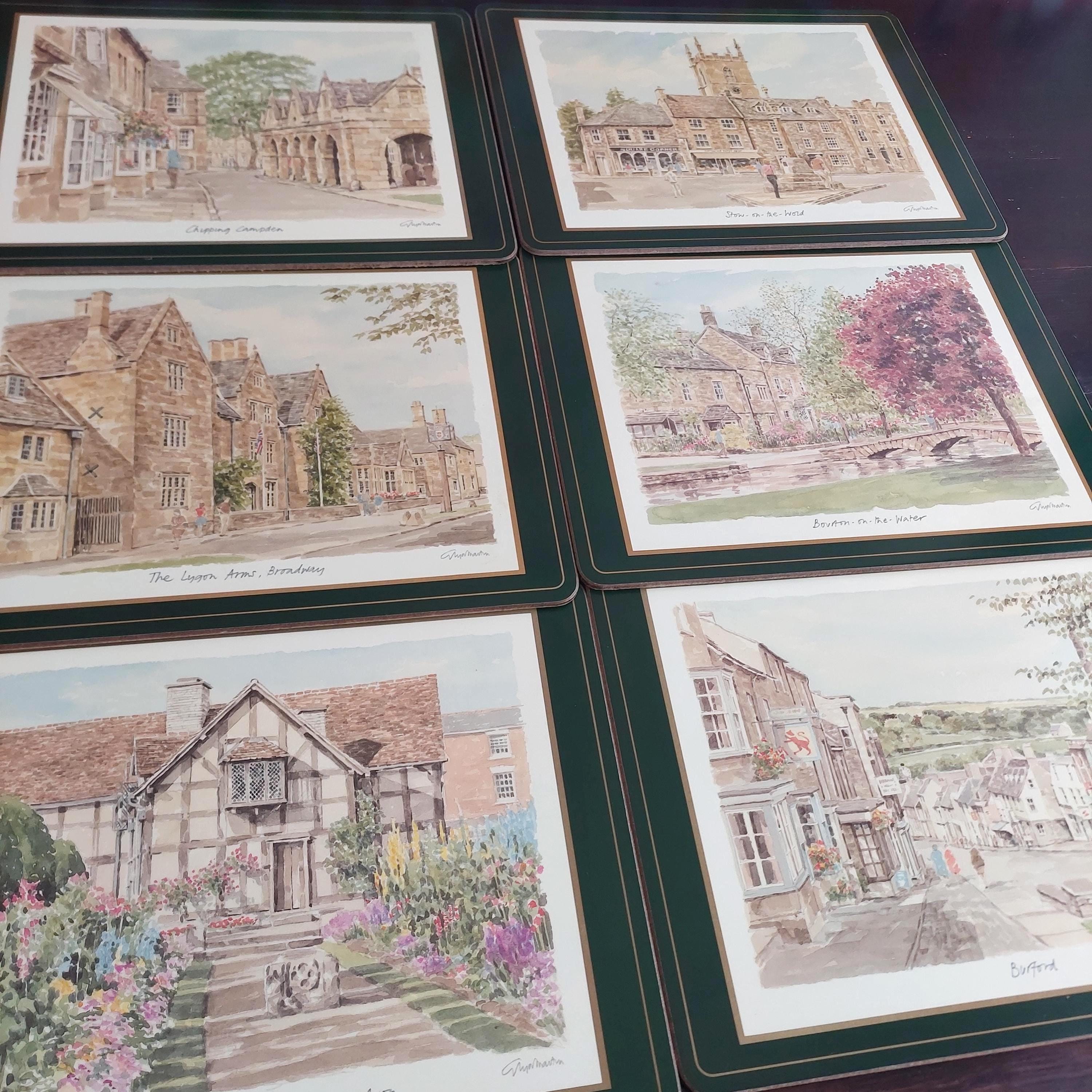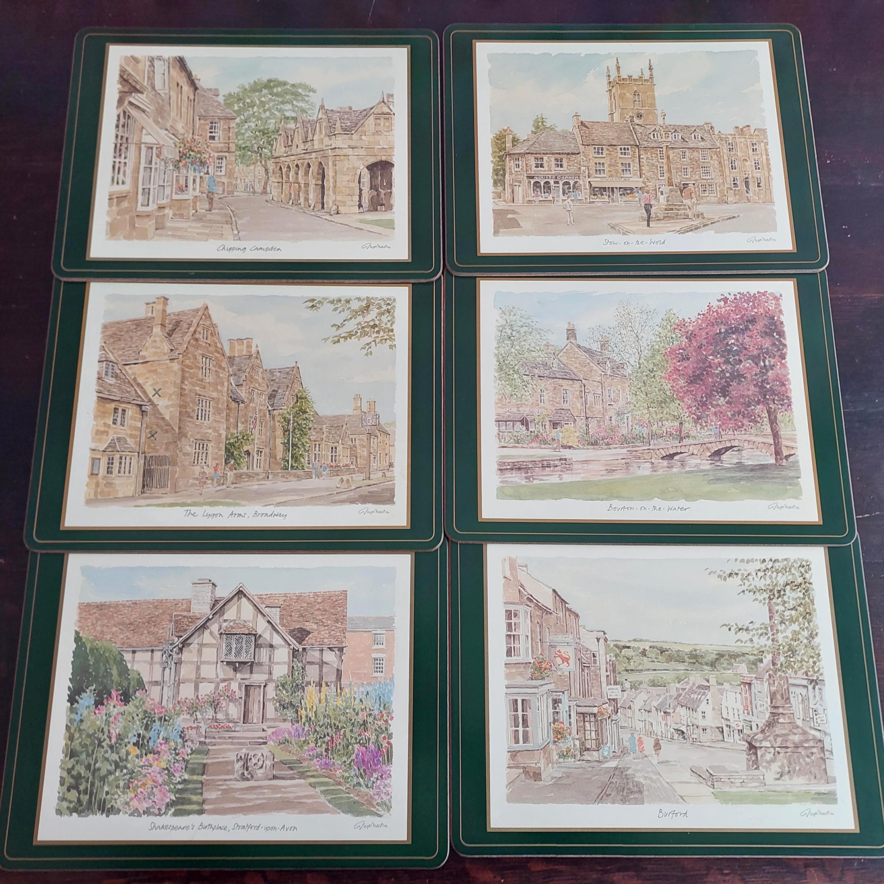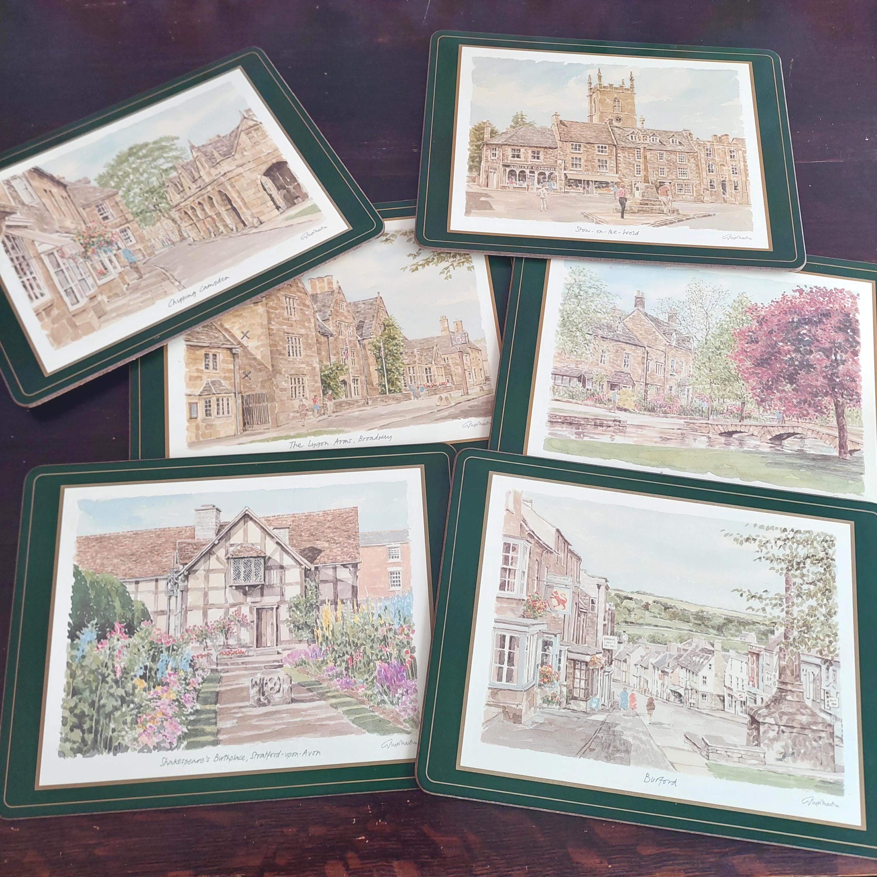 6-piece set of vintage Pimpernel English Historic Locations cork-backed placemats.