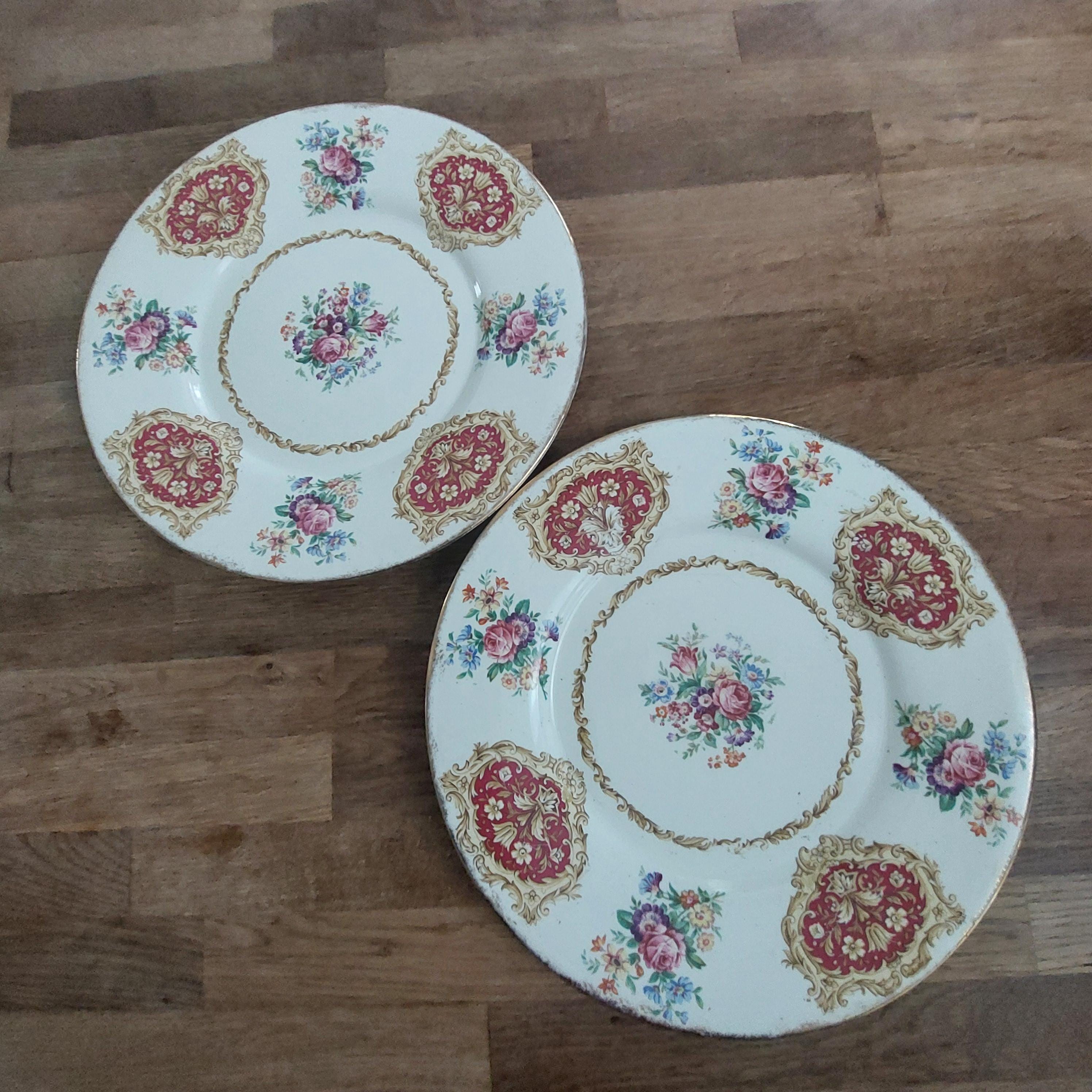 Set of 2 antique porcelain dinner plates by James Kent Pottery, England.