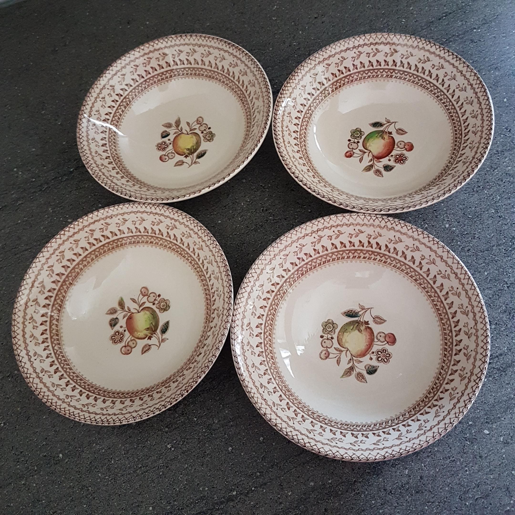 4-piece vintage Johnson Brothers Fruit Sampler coupe cereal bowls.