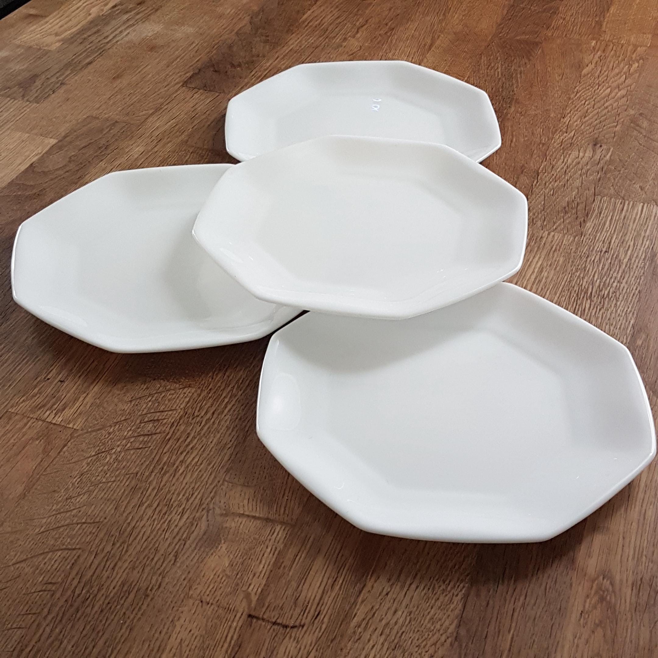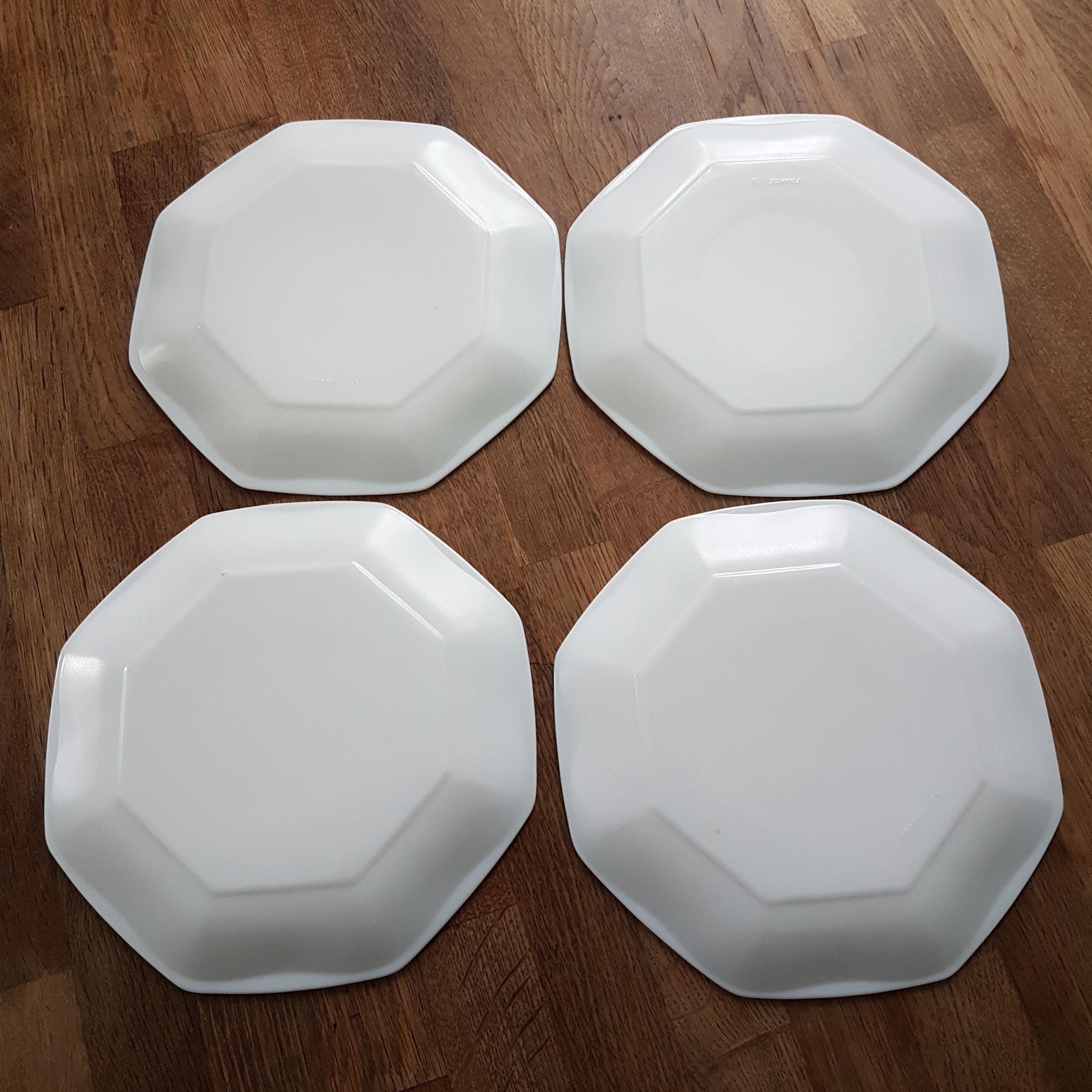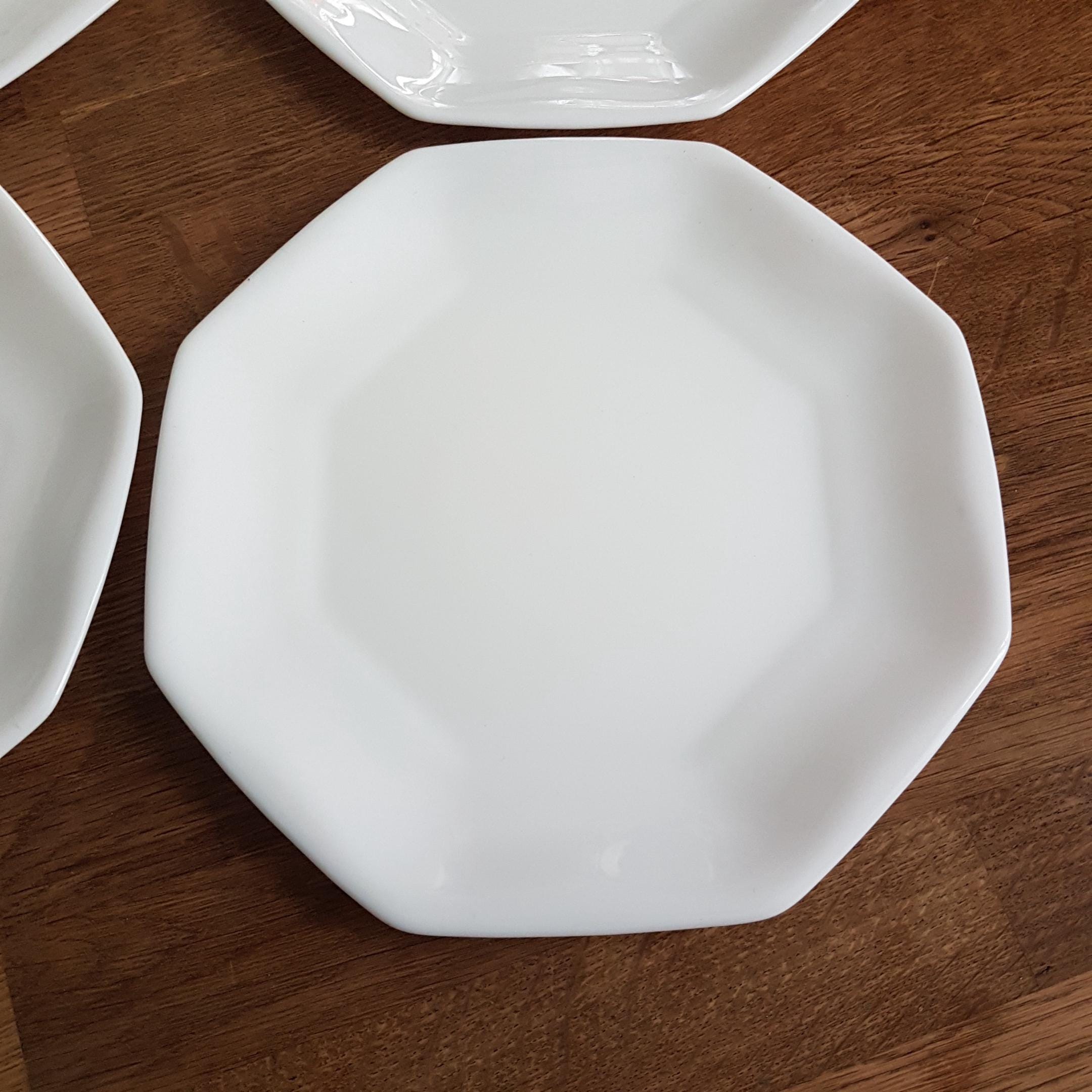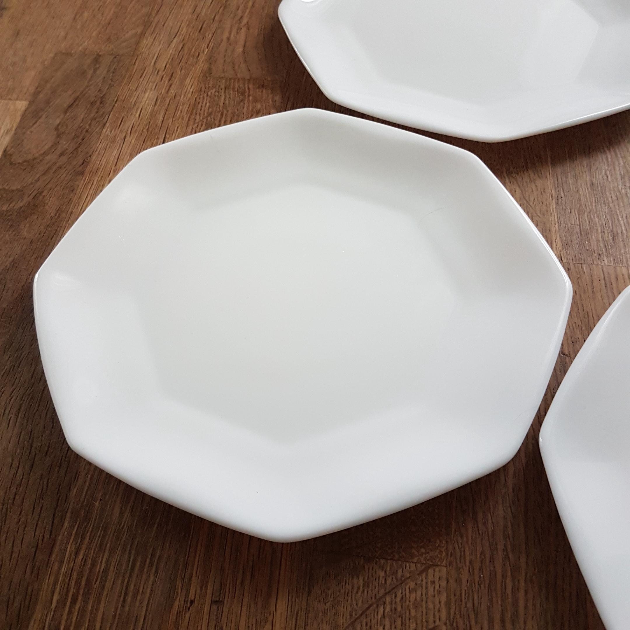 Octime is a timeless octagonal dinnerware line by Arc International of France—the same maker behind beloved brands Arcoroc, Luminarc, and Cristal d'Arques. These plates feature the distinctive geometric octagon shape and tempered glass construction that defined 1970s-80s French design.