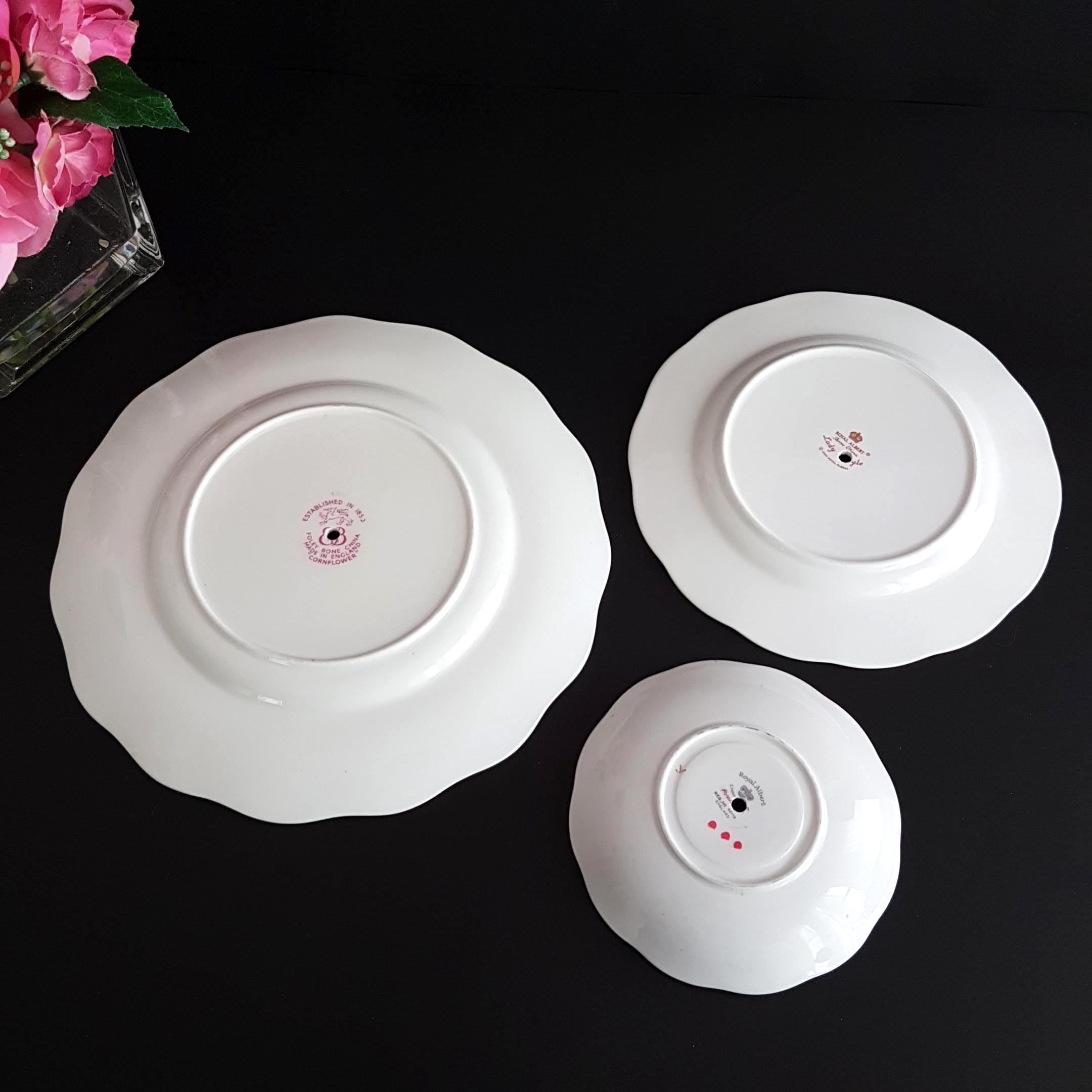 Middle tier is 8" Royal Albert salad plate