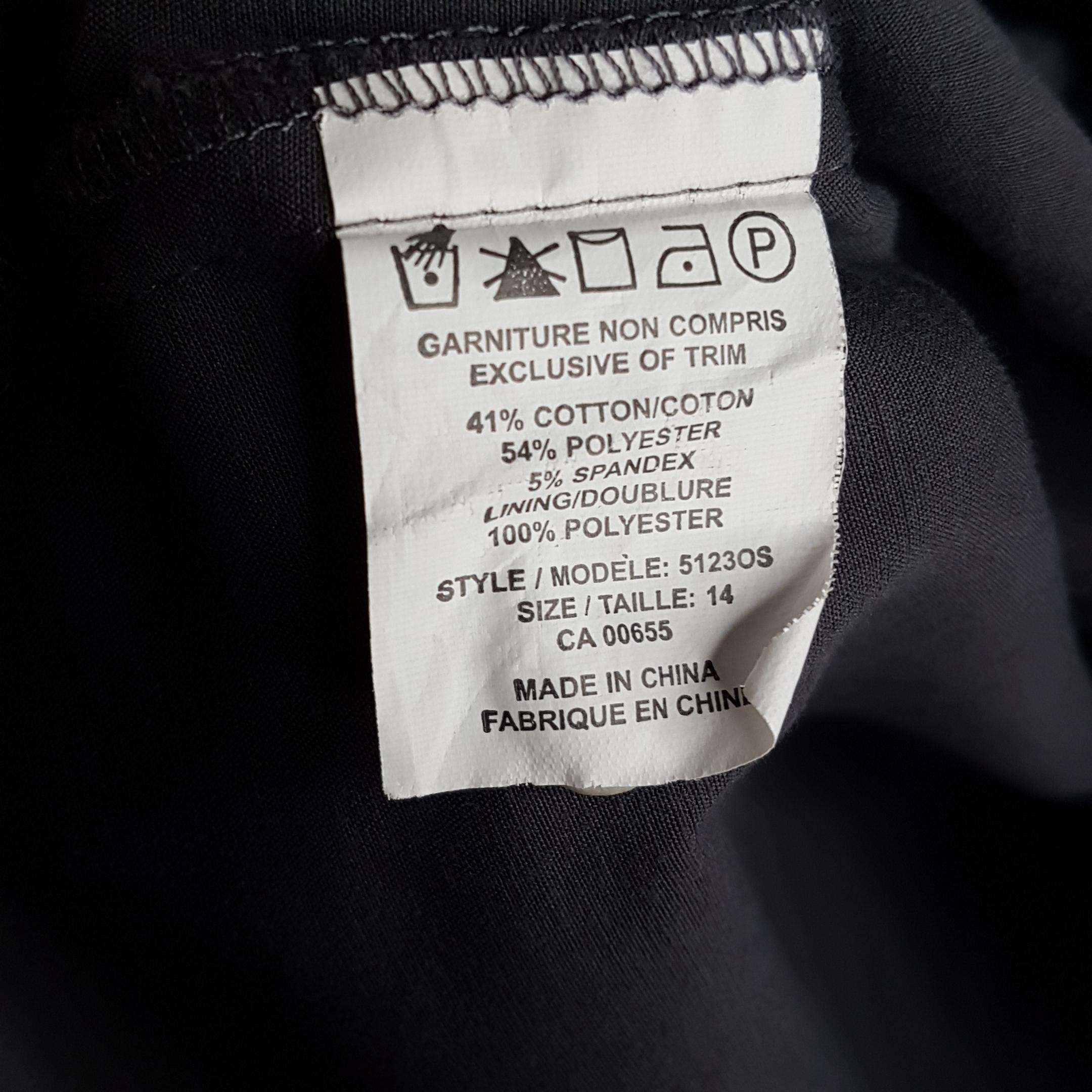 Tag: "Michel Antoni Collection - Size 14 - 41% Cotton, 54% Polyester, 5% Spandex, Lining 100% Polyester - Hand Wash Cold, Hang to Dry Made in China"