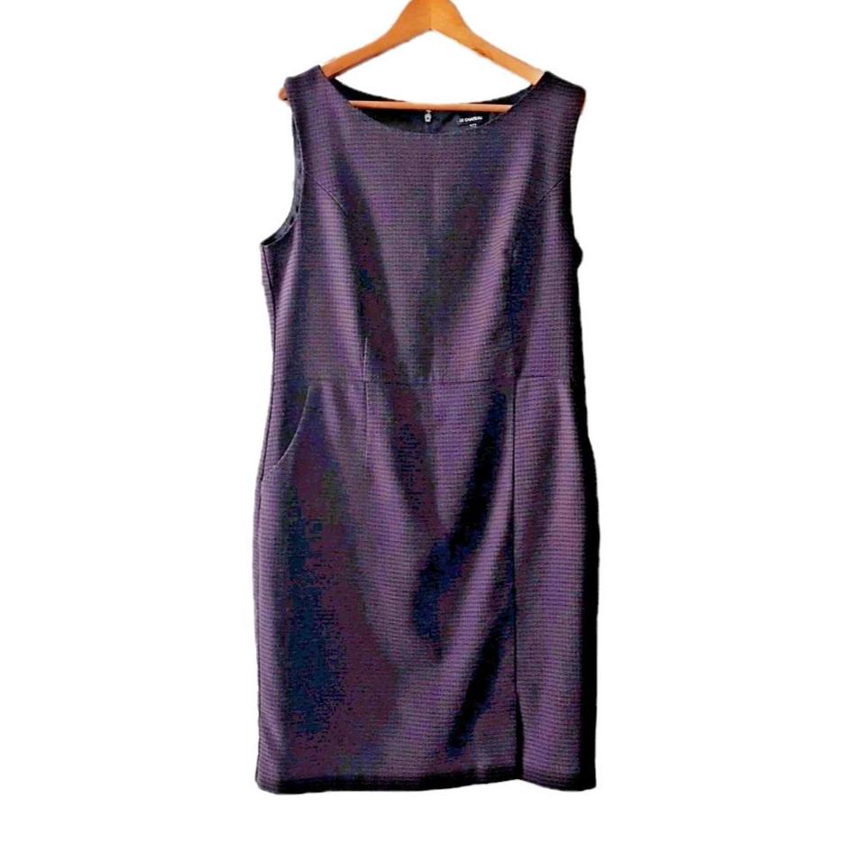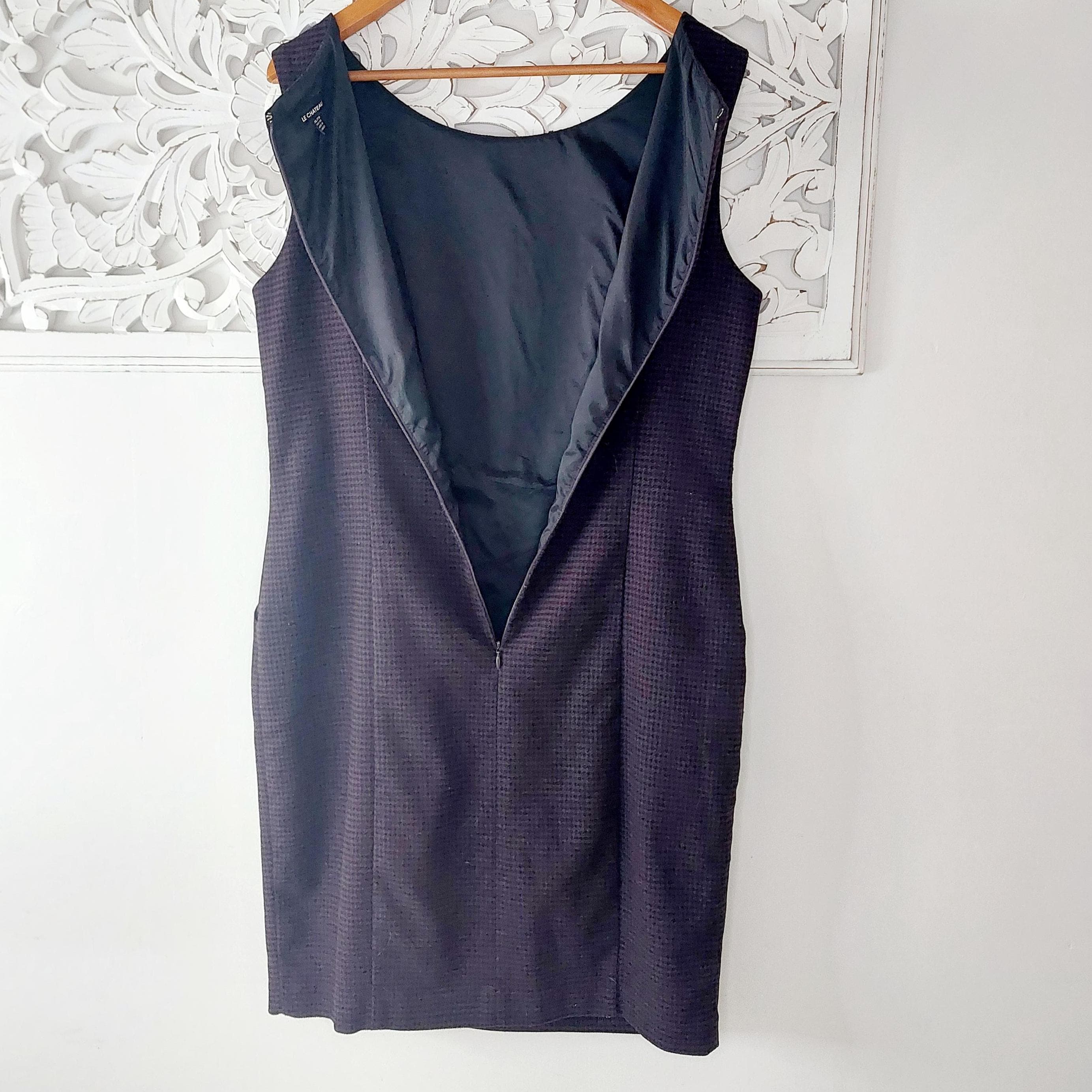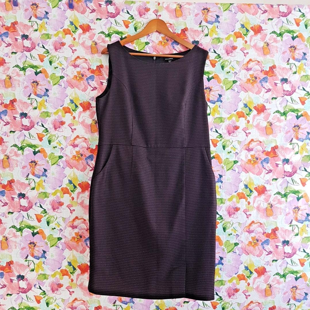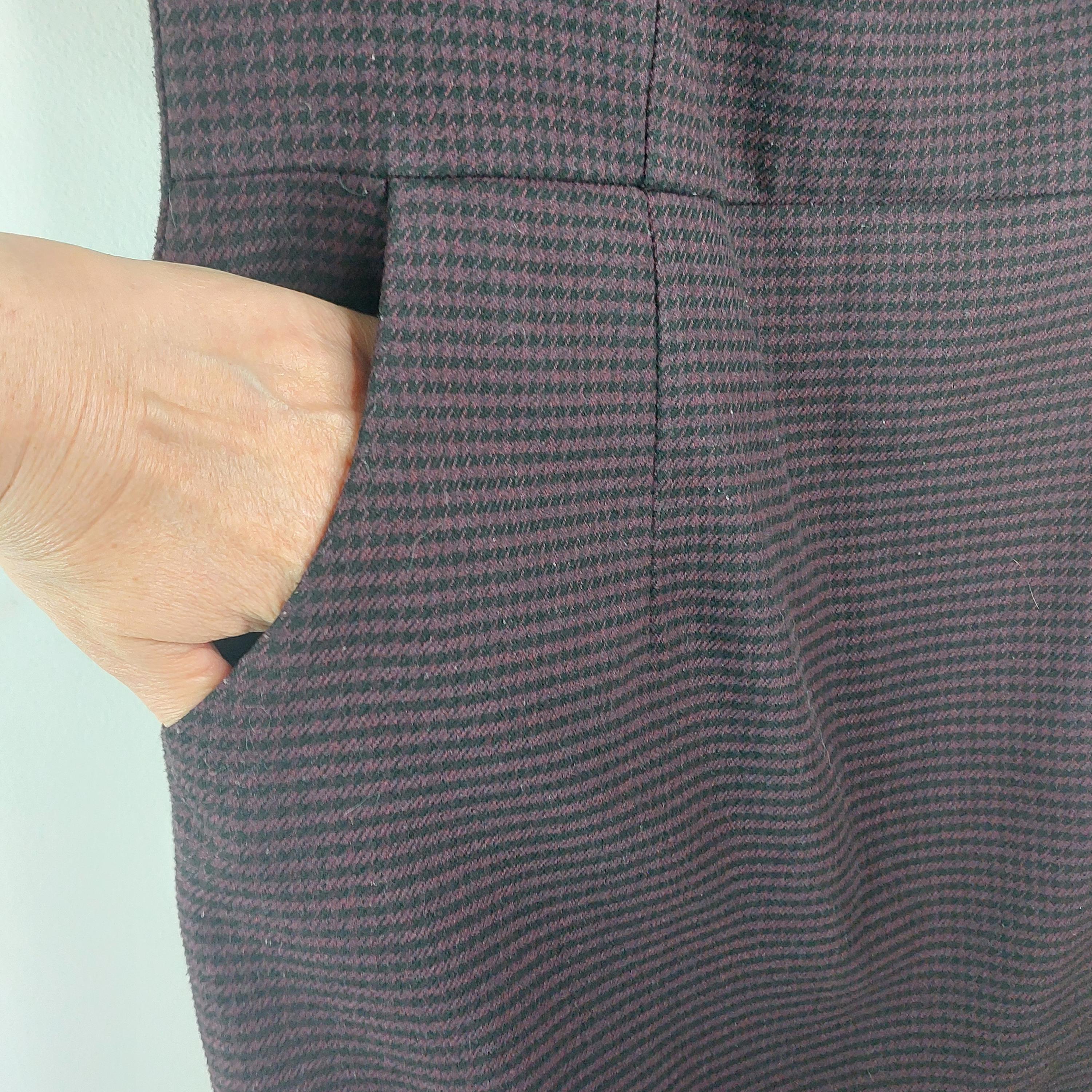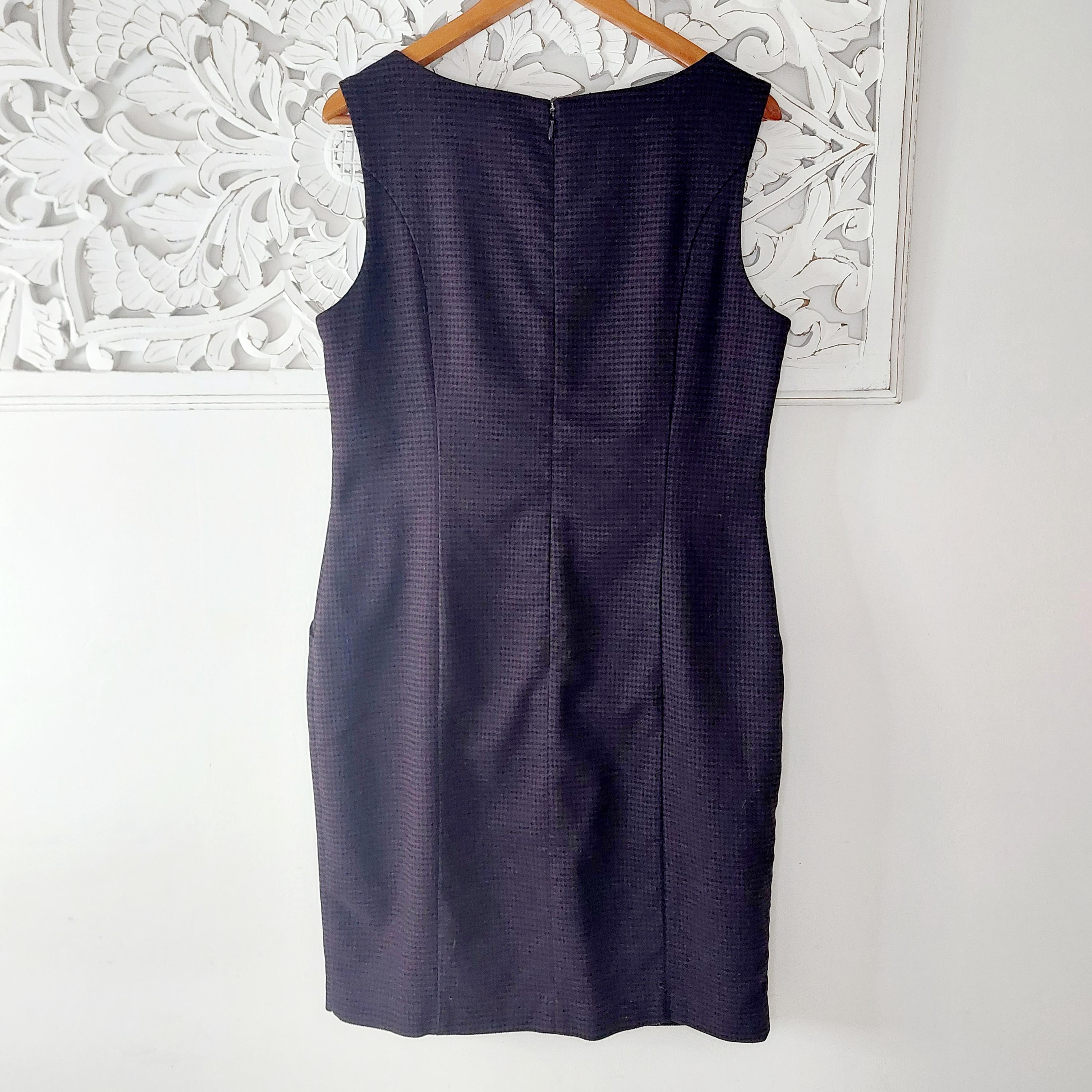 Vintage Le Chateau dark purple and black micro-houndstooth sleeveless dress.