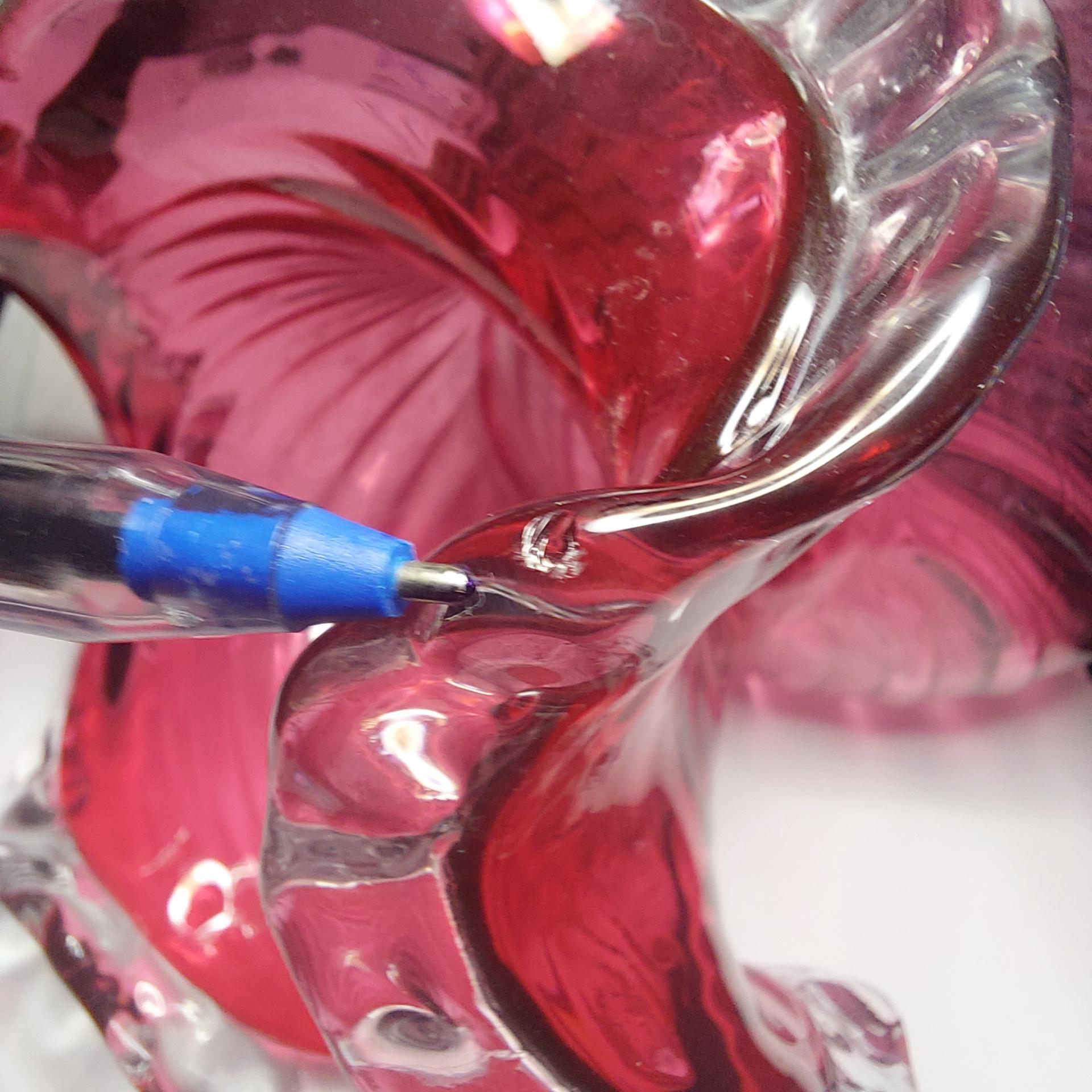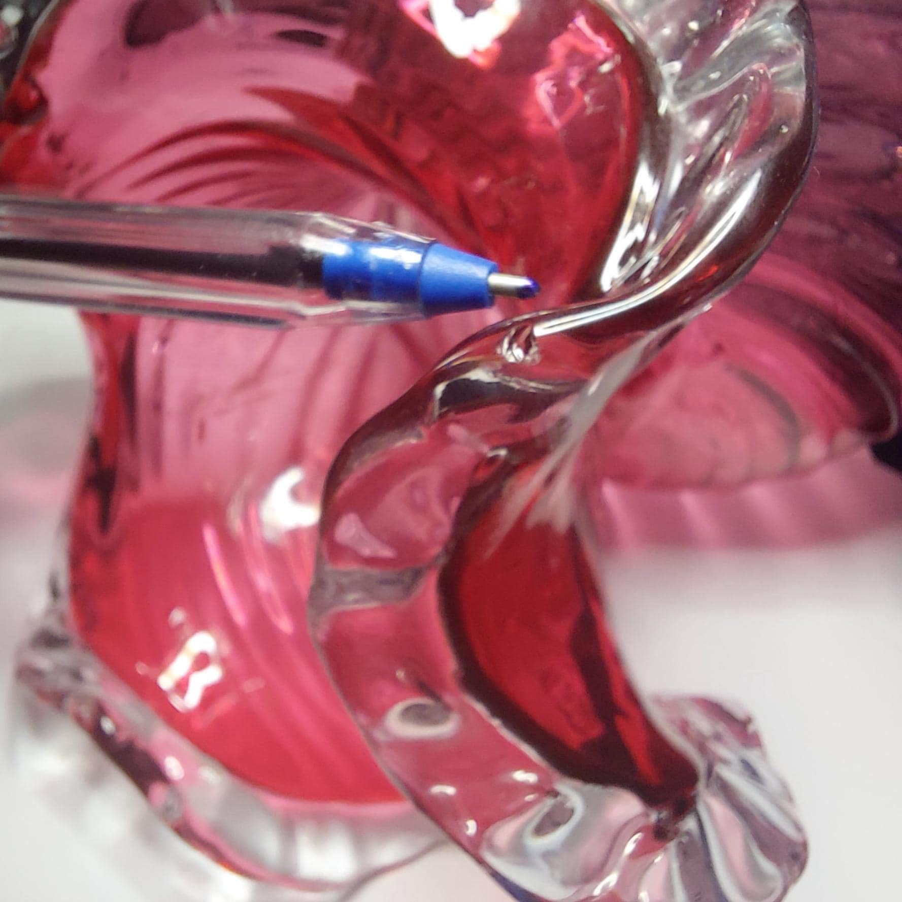 Refer to last picture, to see the polished pontil mark. The 'scar' from where the glass makers tool was attached to the glass. Another tell tale sign of blown glass are the lovely air bubbles of varying sizes throughout the glass!