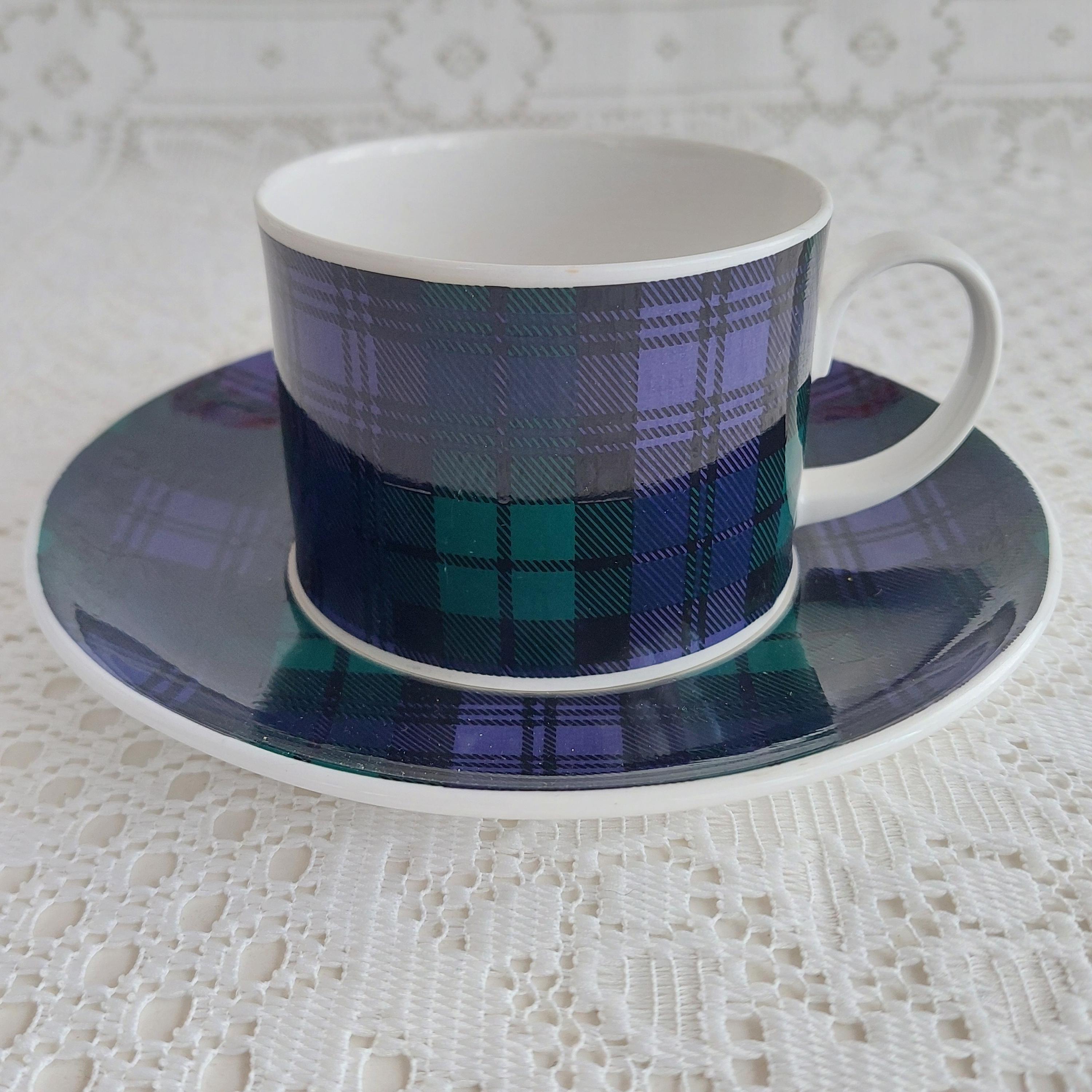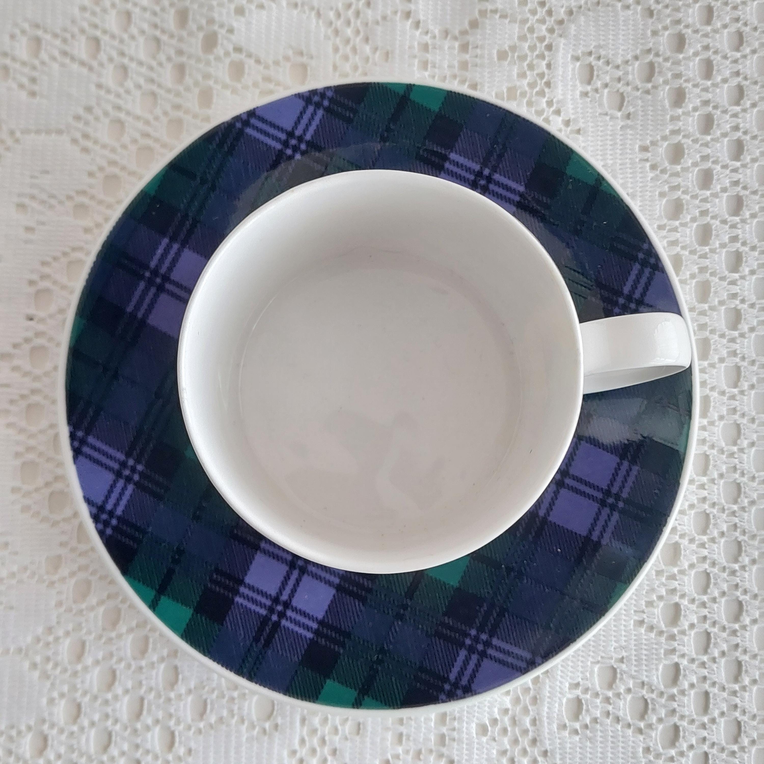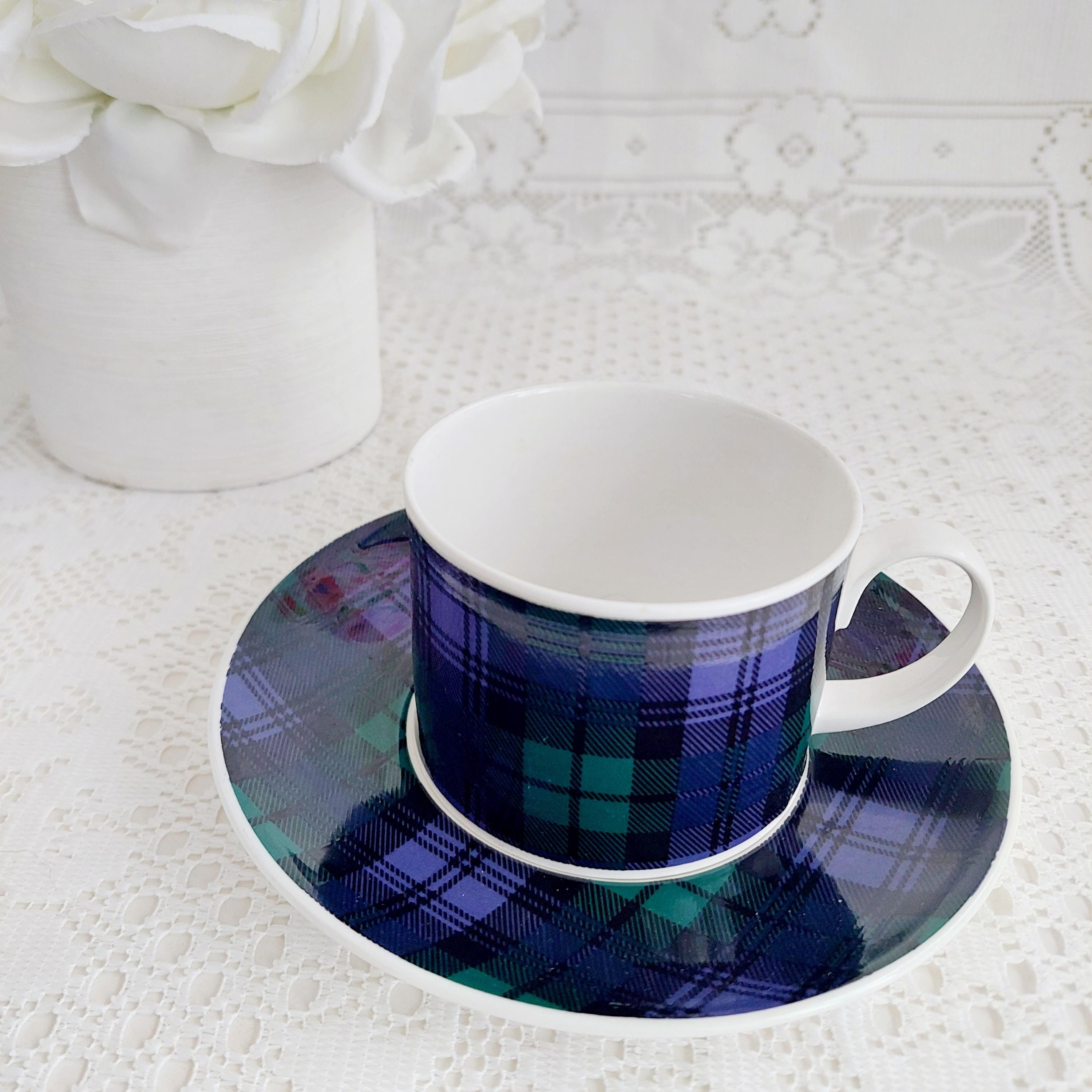 Perfect for collectors and enthusiasts of Scottish heritage who appreciate authentic vintage bone china, this Vintage Dunoon Ceramics, Black Watch Tartan Cup and Saucer set is a rare find. Made in Scotland, it features the iconic Black Watch Tartan pattern.