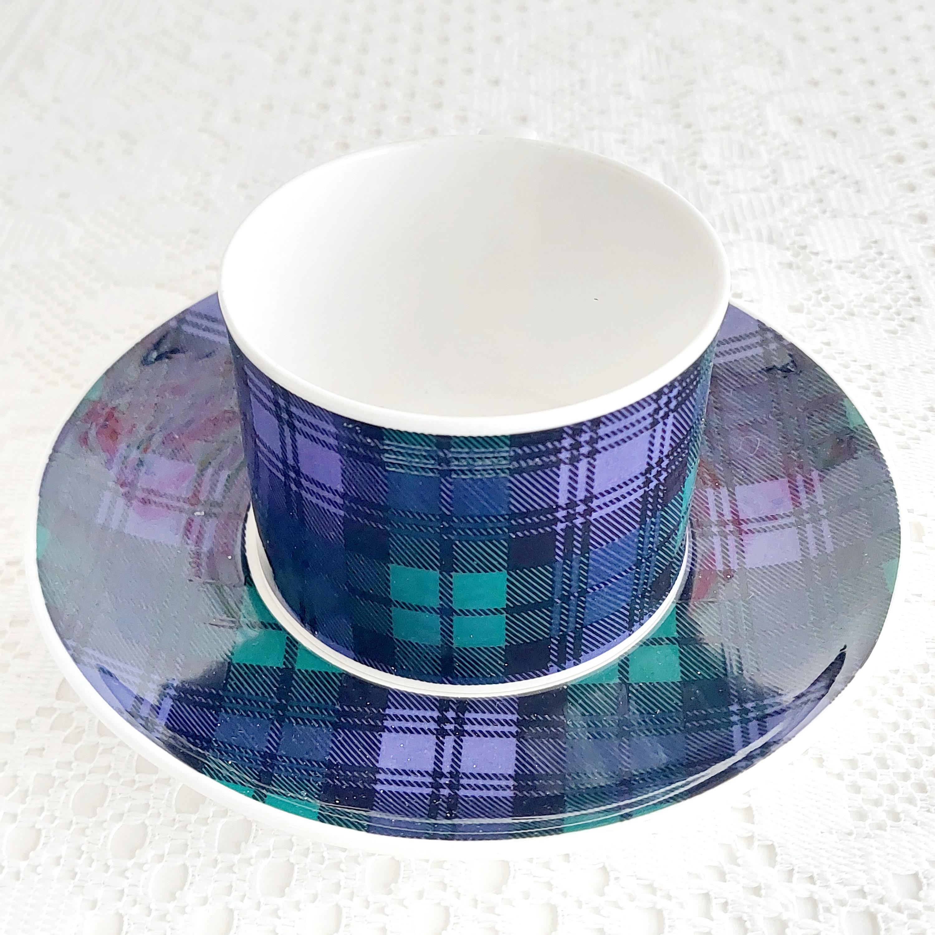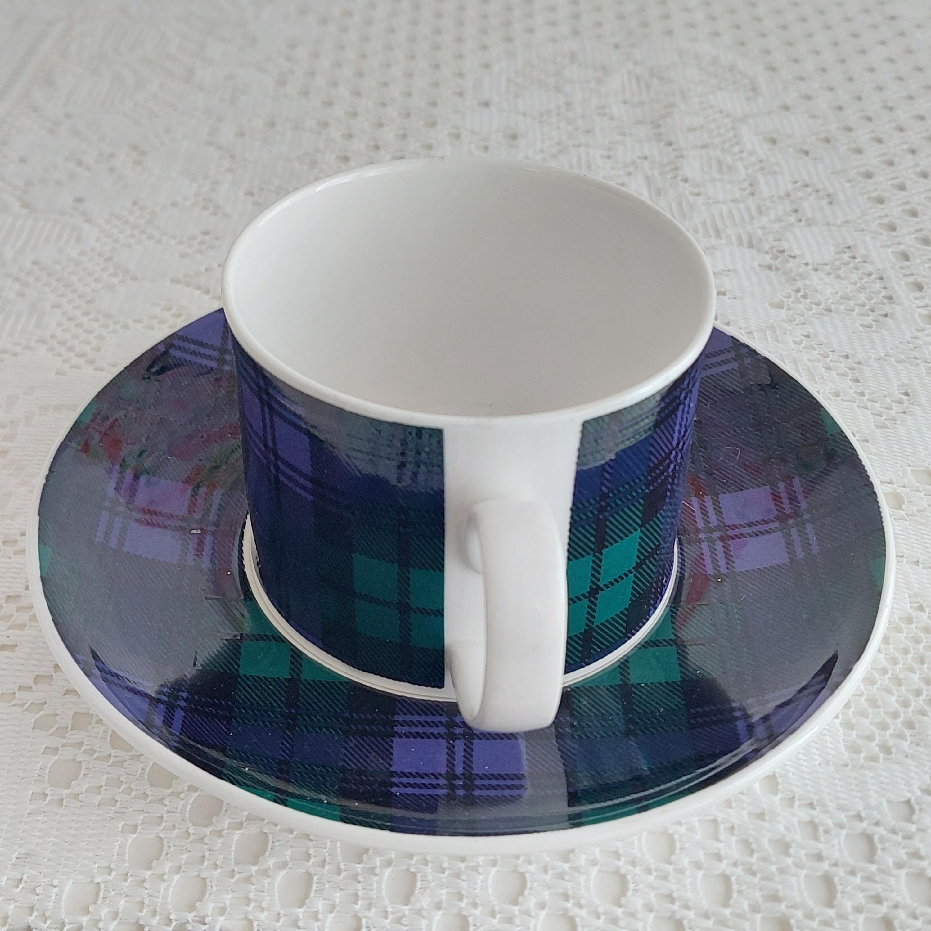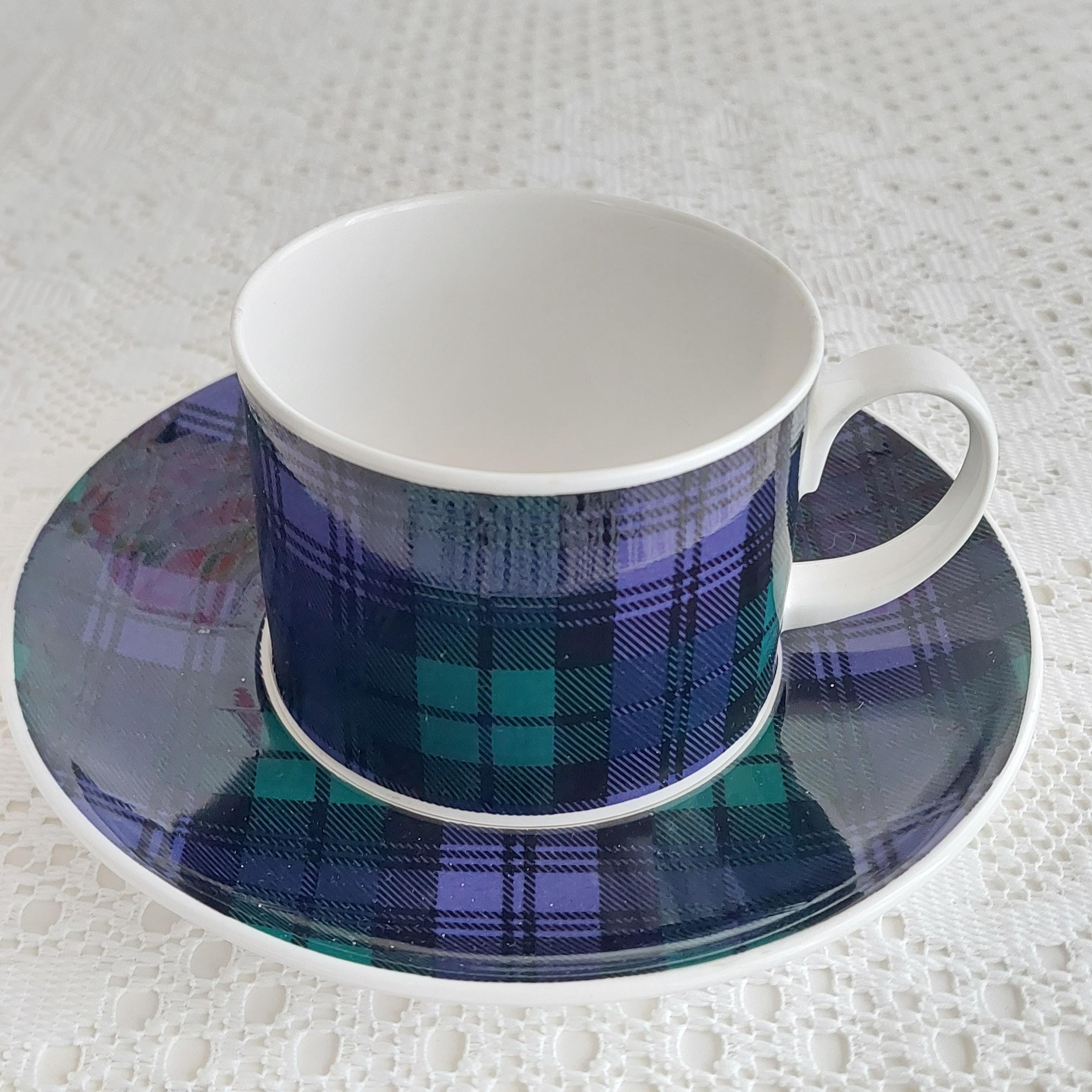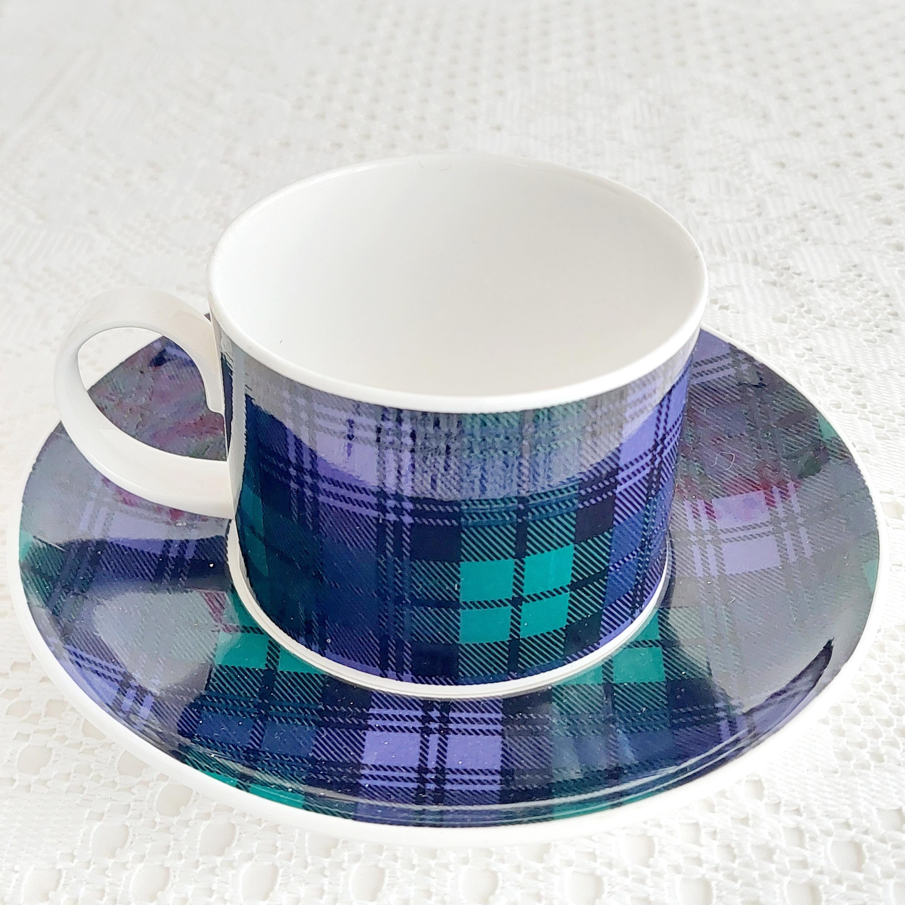 Perfect for collectors and enthusiasts of Scottish heritage who appreciate authentic vintage bone china, this Vintage Dunoon Ceramics, Black Watch Tartan Cup and Saucer set is a rare find. Made in Scotland, it features the iconic Black Watch Tartan pattern.