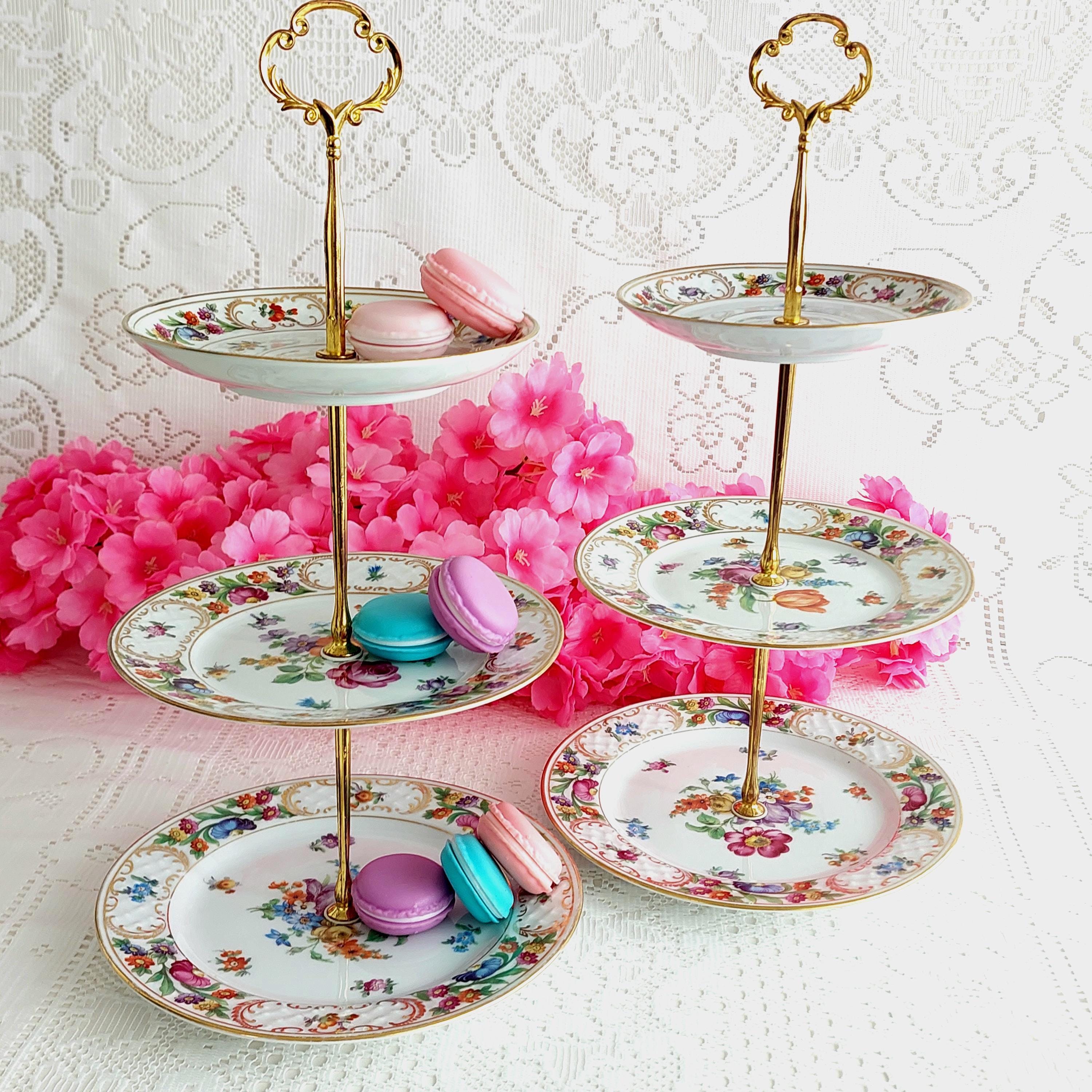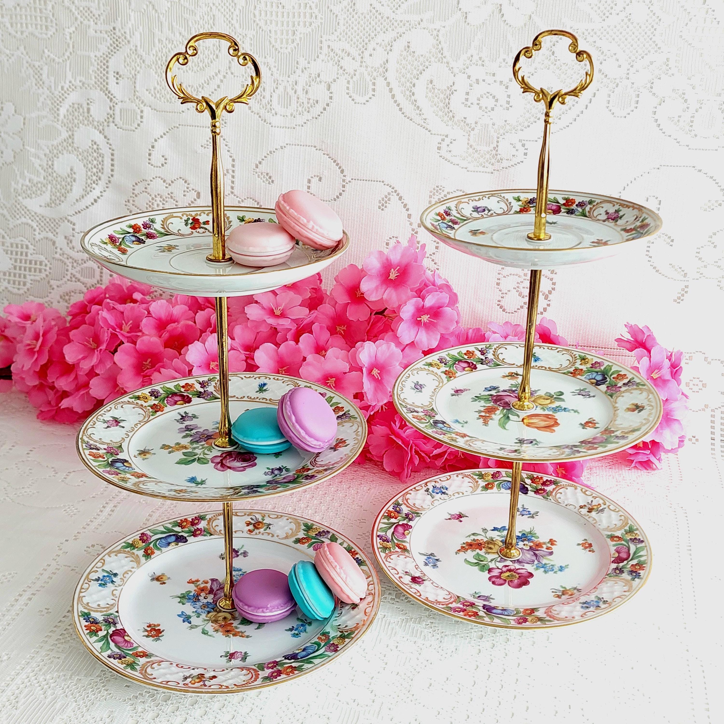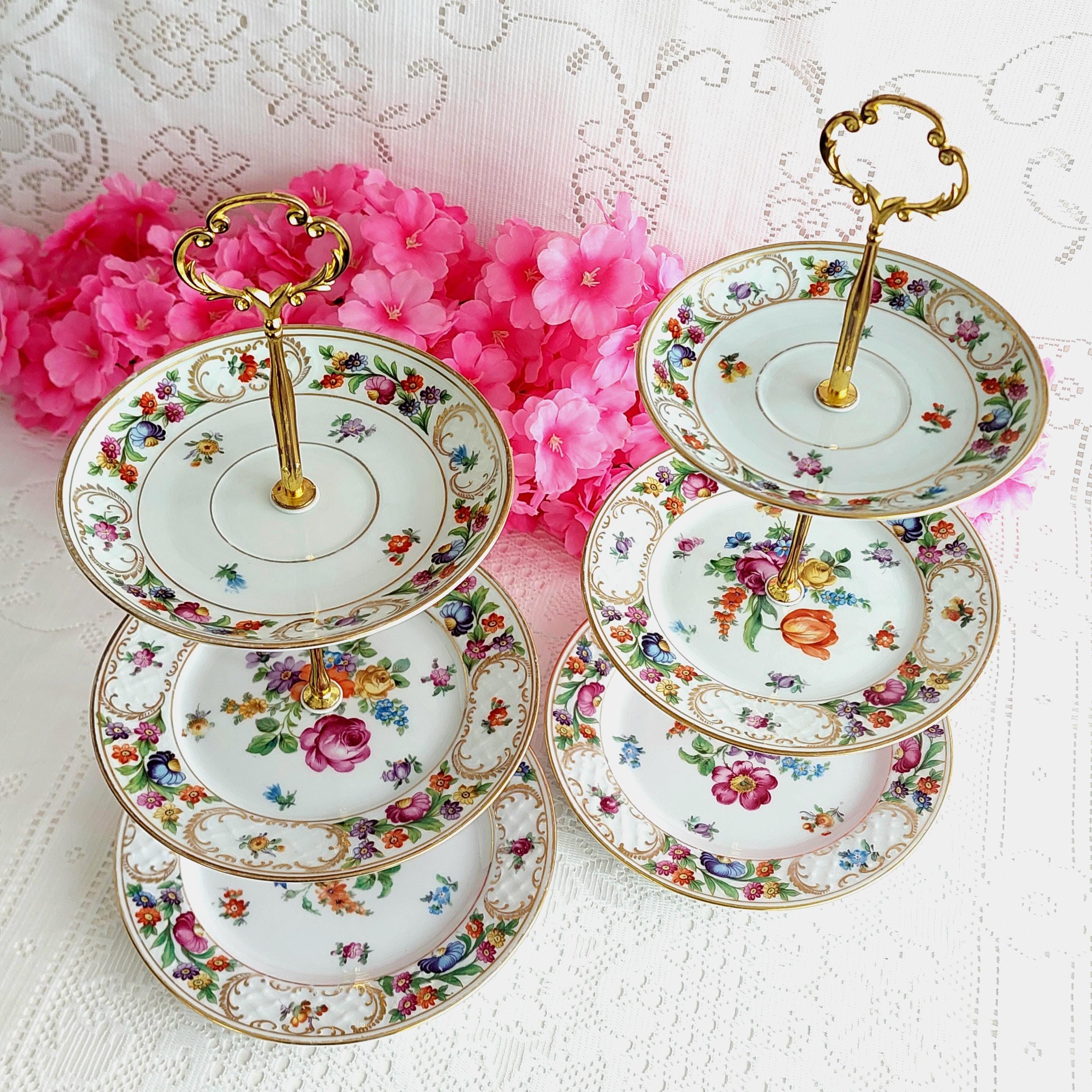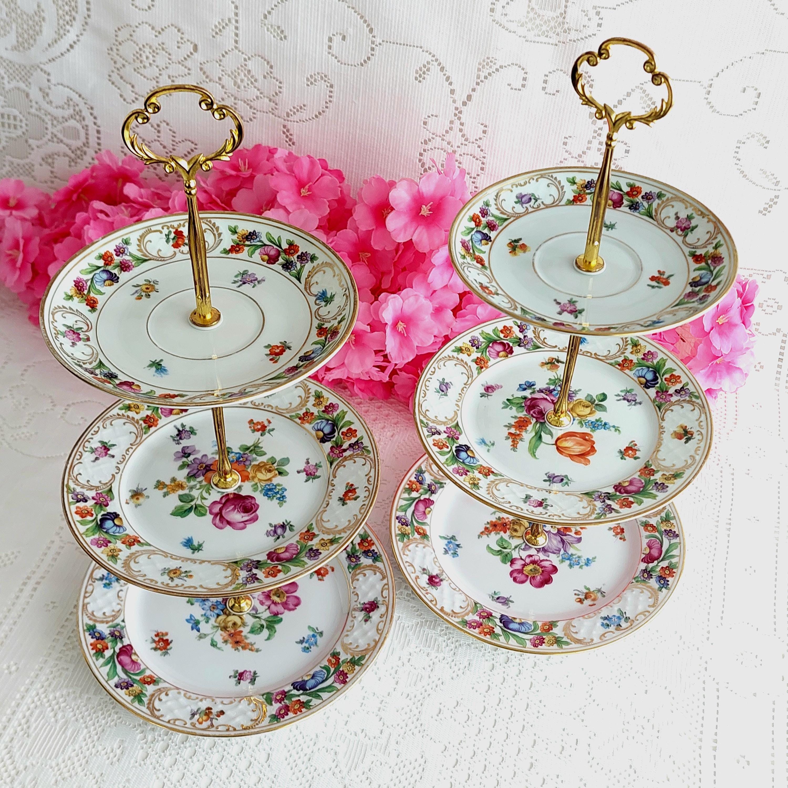 Perfect for special occasions and elegant gatherings, this small three-tier cake stand is handmade using mismatched vintage Schumann Bavaria Dresden plates. It’s ideal for weddings, tea parties, baby showers, or as a unique jewelry display. If you’re searching for a housewarming, wedding, birthday, or Christmas gift that truly stands out, this tiered stand makes a memorable centerpiece.