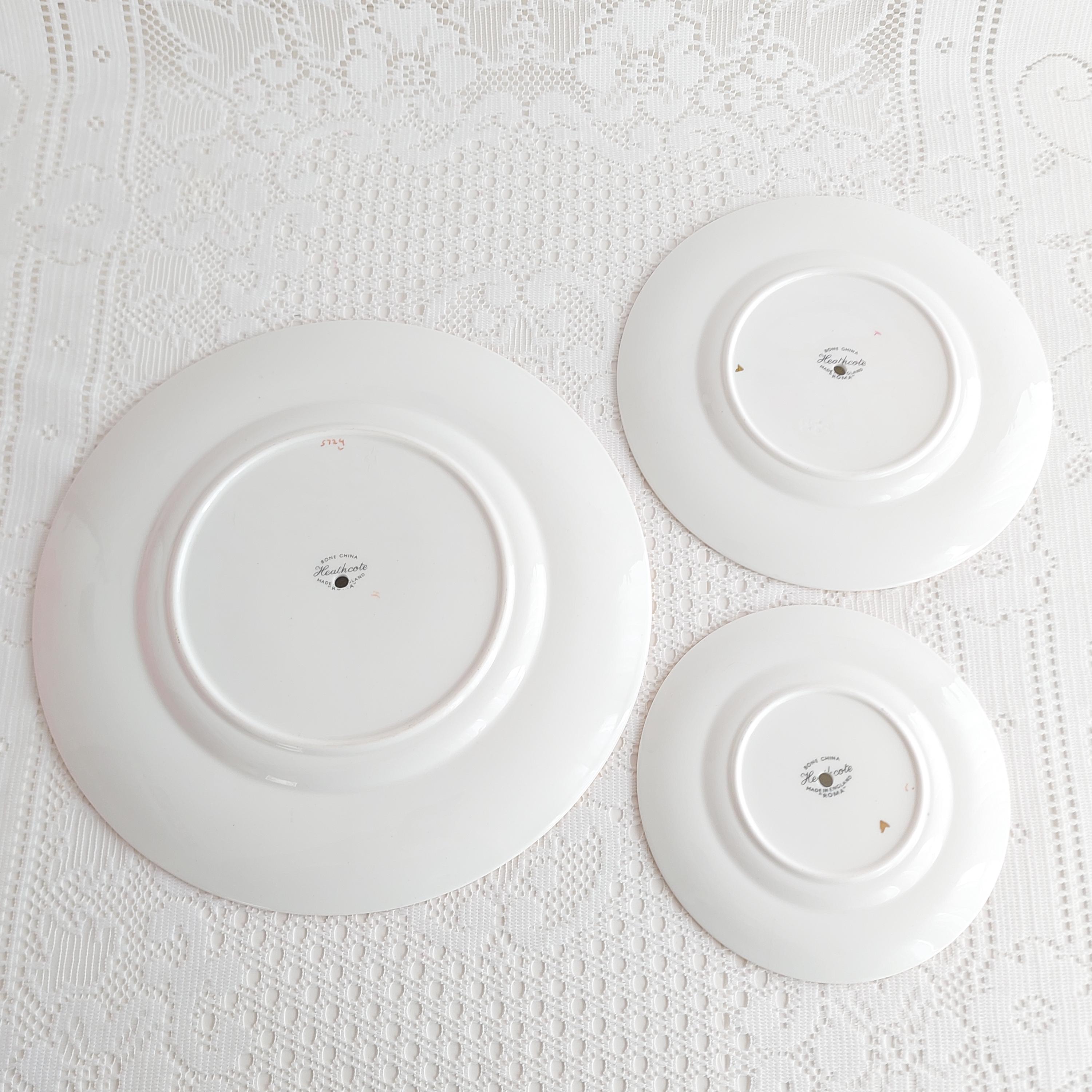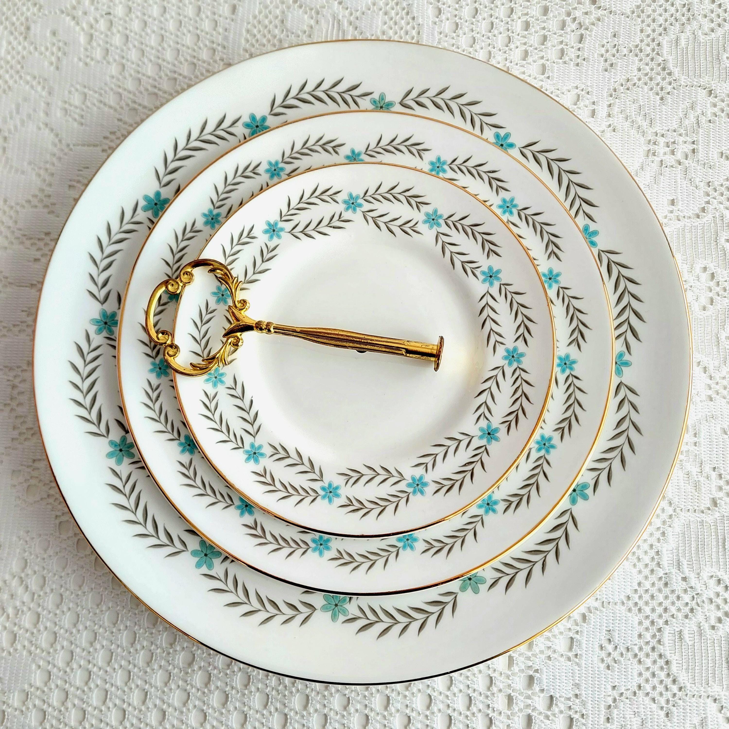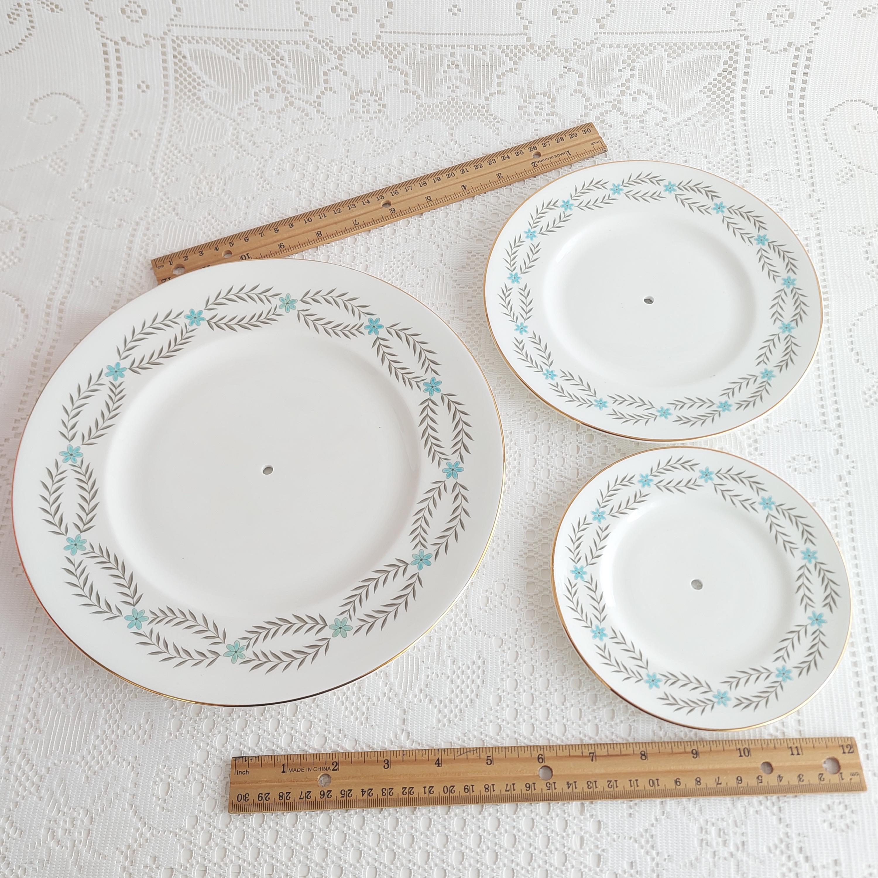 Each stand features genuine bone china plates made in England stacked as 6.25" top, 8" middle, and 10.5" bottom—selected for their charm and history. Sturdy new hardware in your choice of black, white, silver, or gold tone makes this serving piece both functional and customizable to your style.