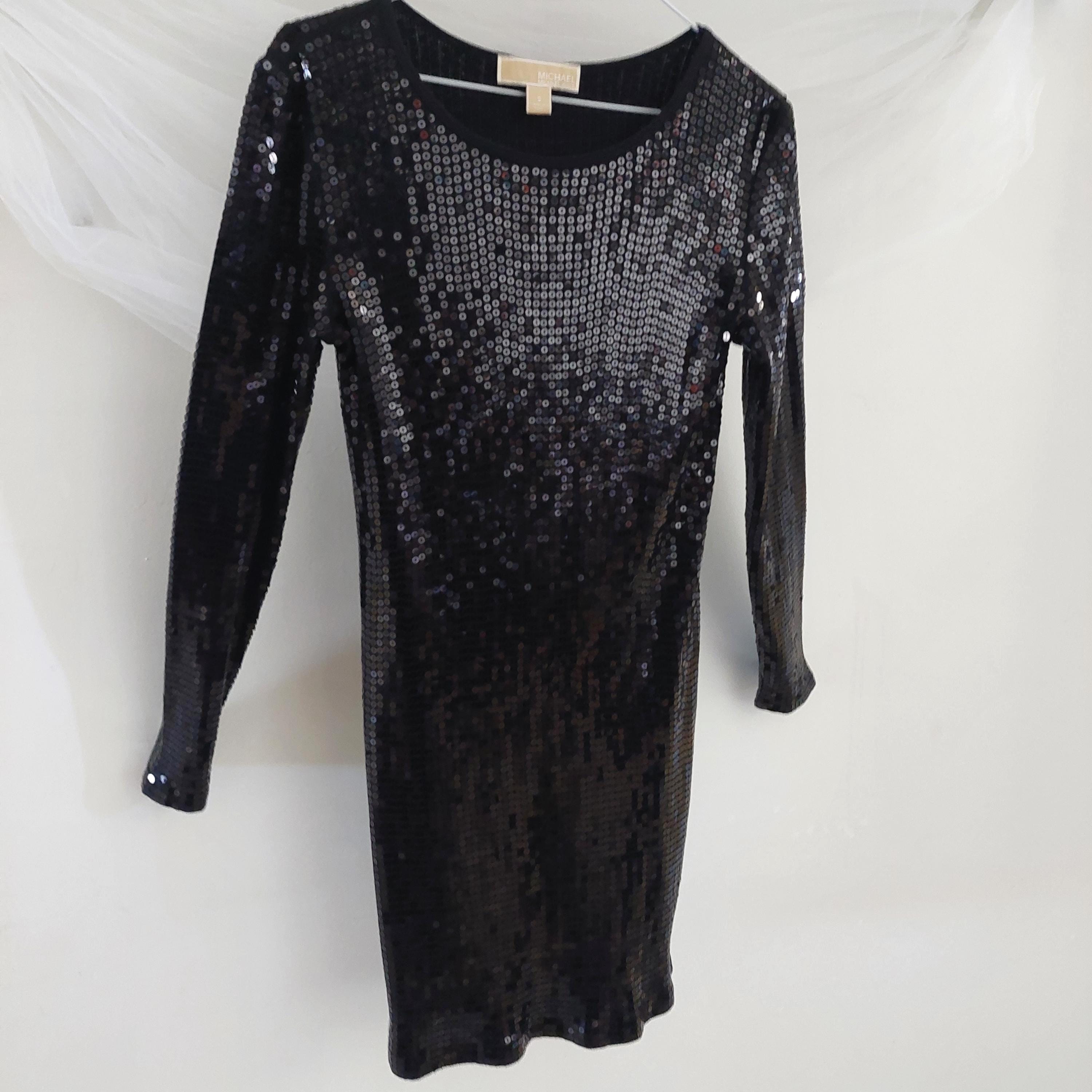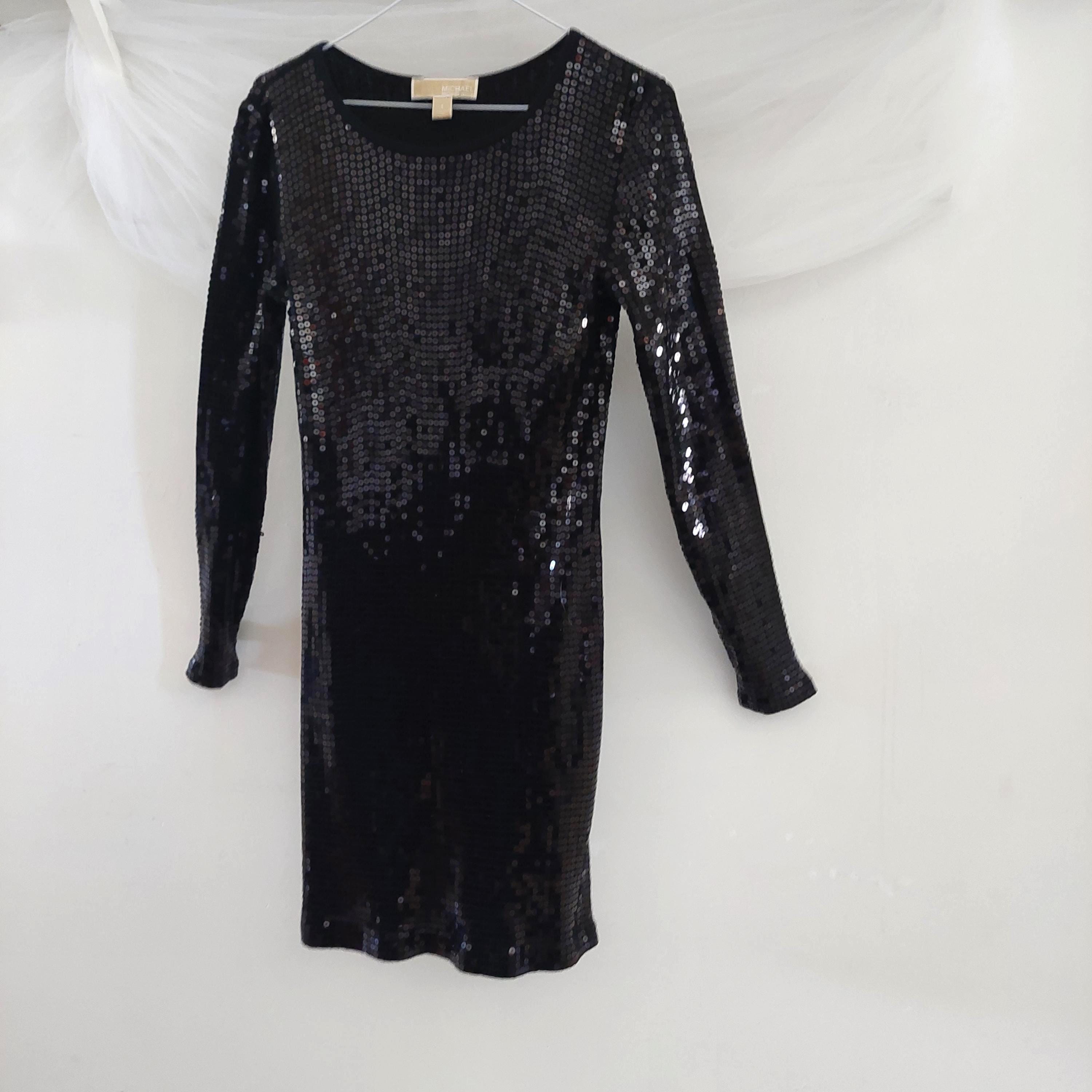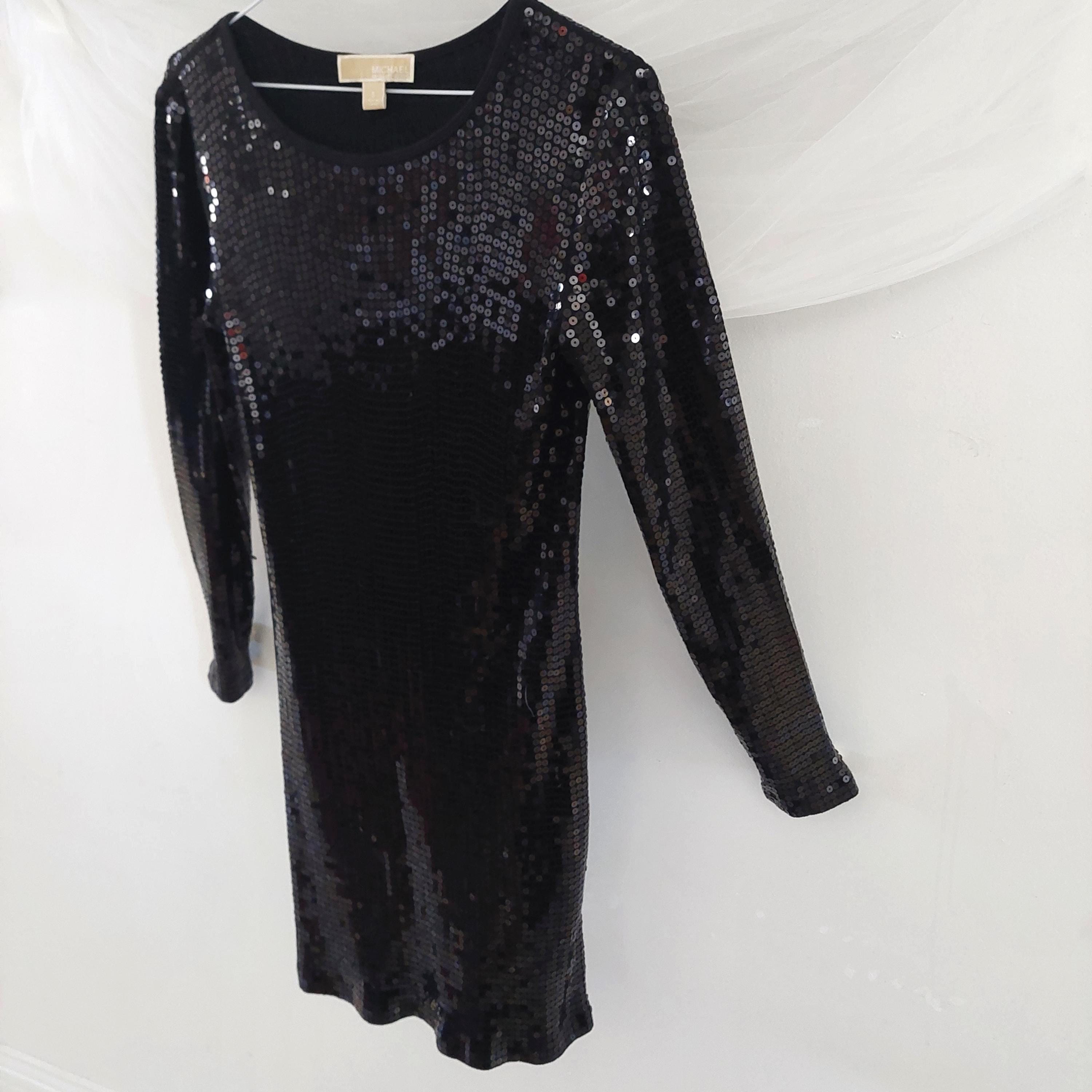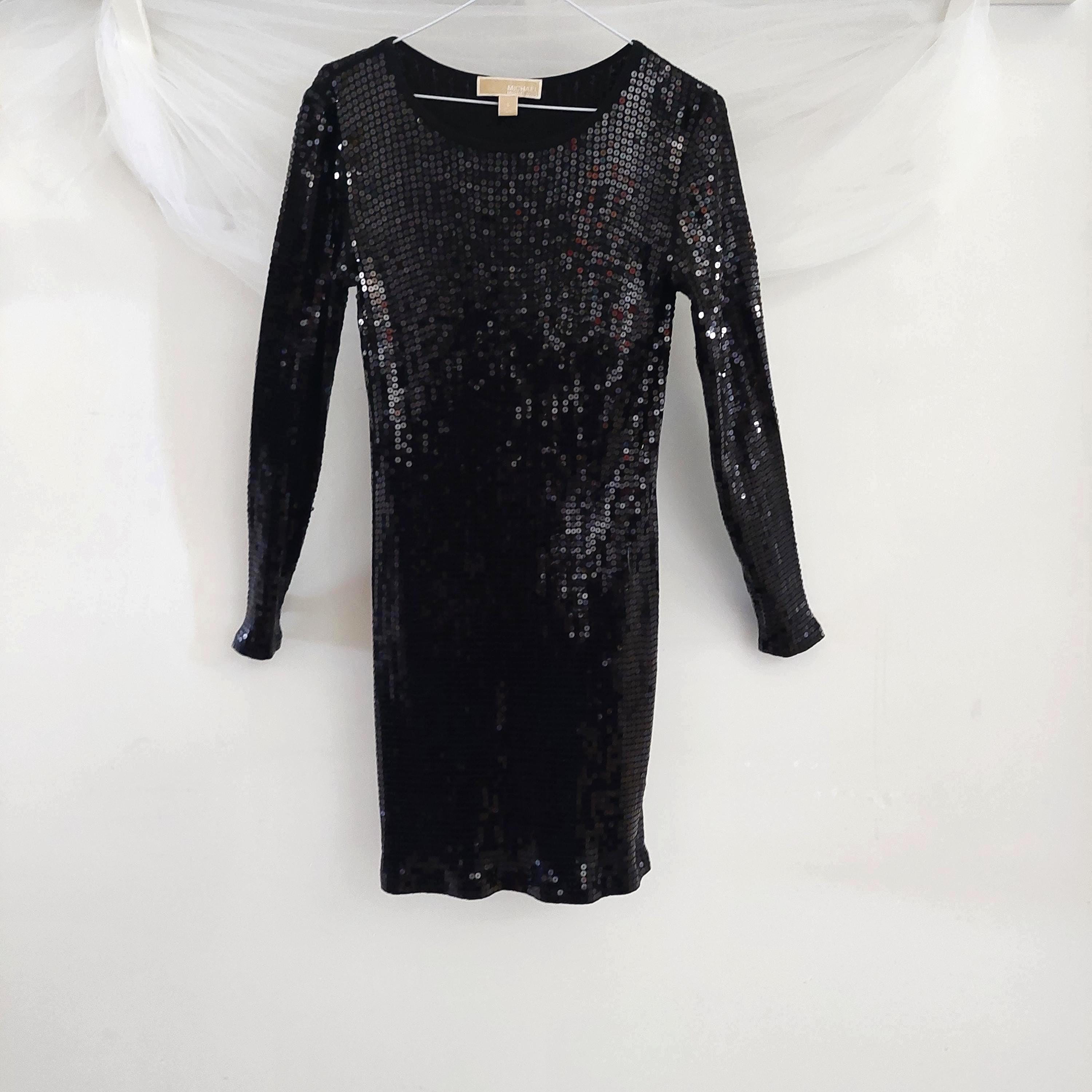 Dazzle at your next event in this stunning Michael Kors black sequin mini dress.