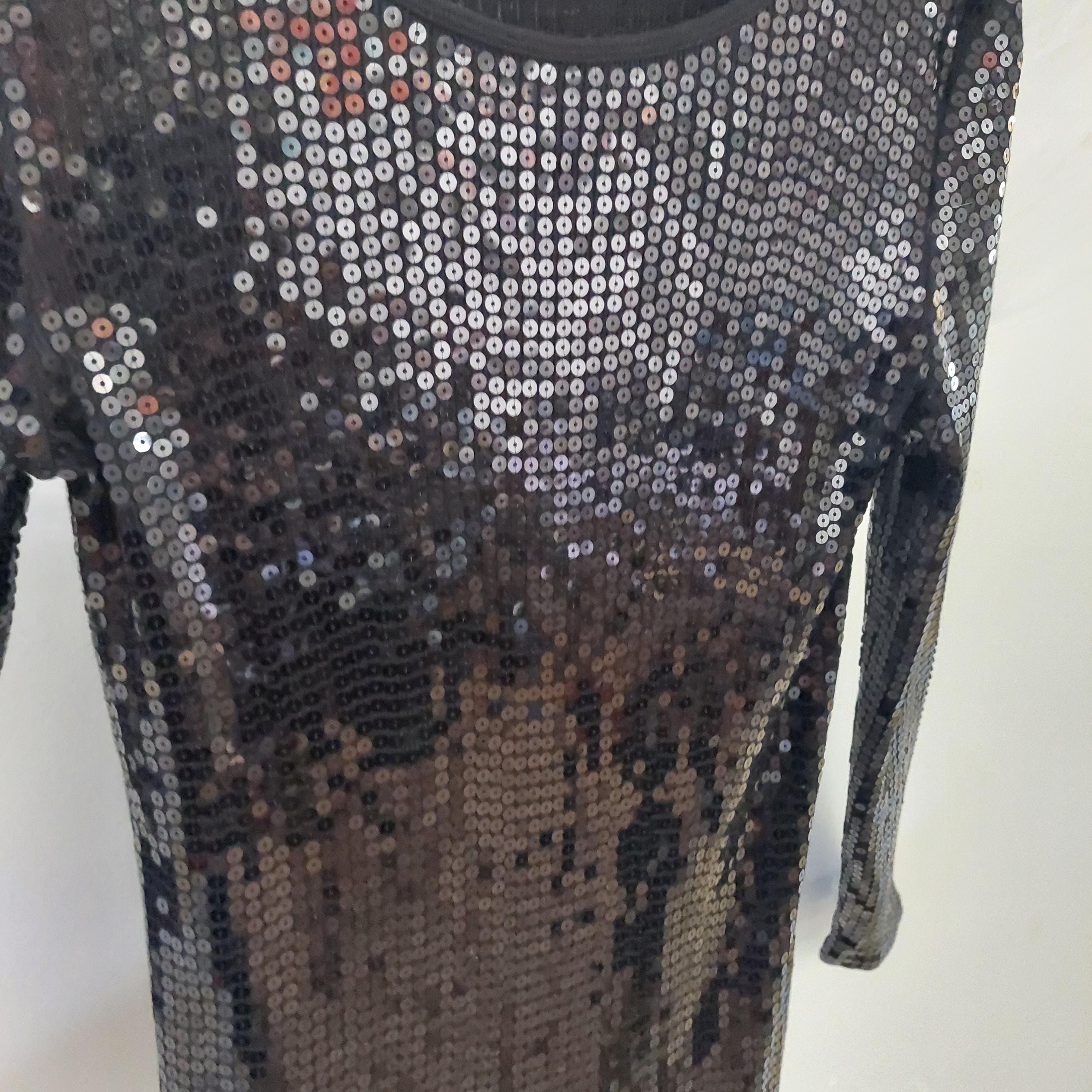 Excellent pre-owned condition. All sequins appear intact, and the interior lining is clean and soft against the skin. No visible flaws or snags.