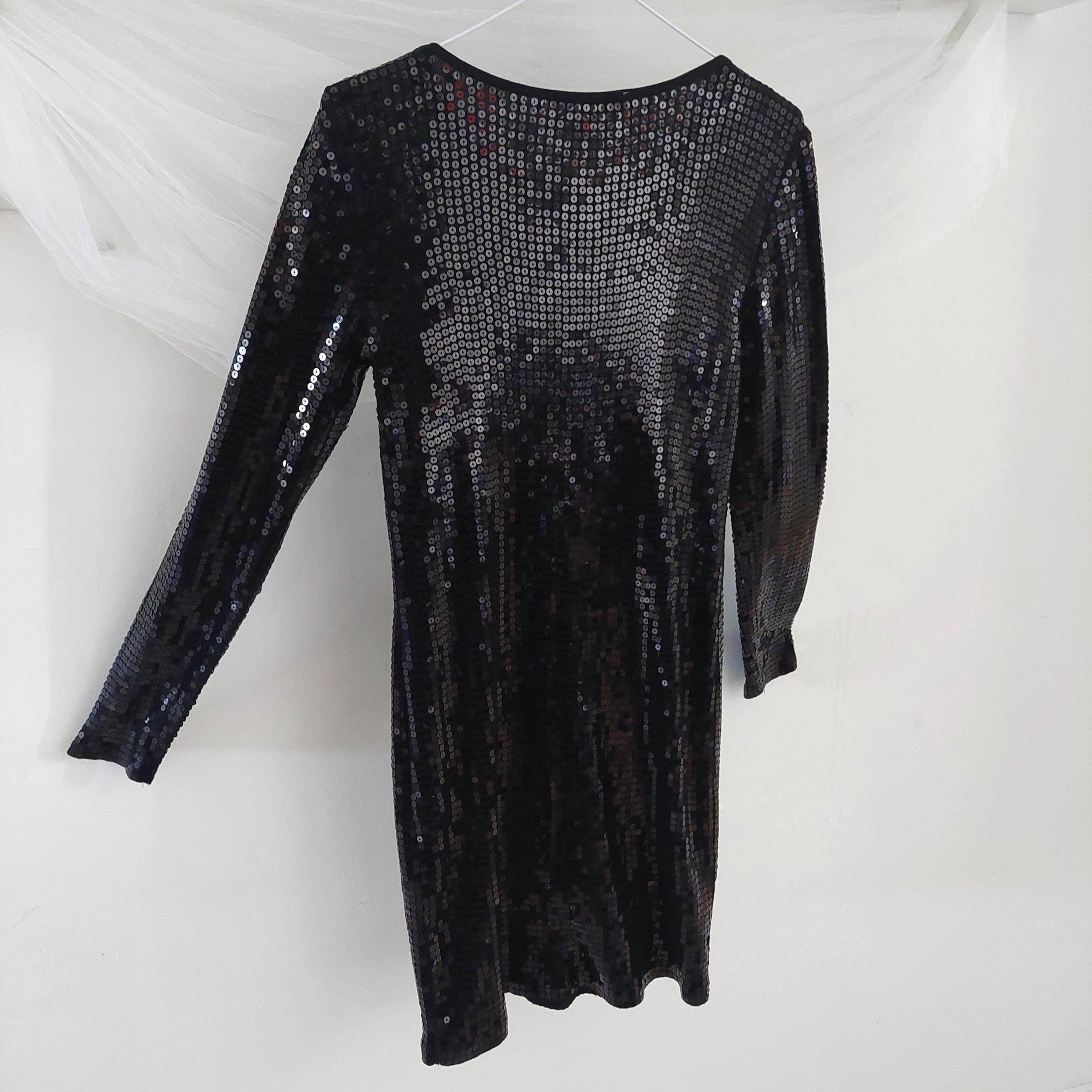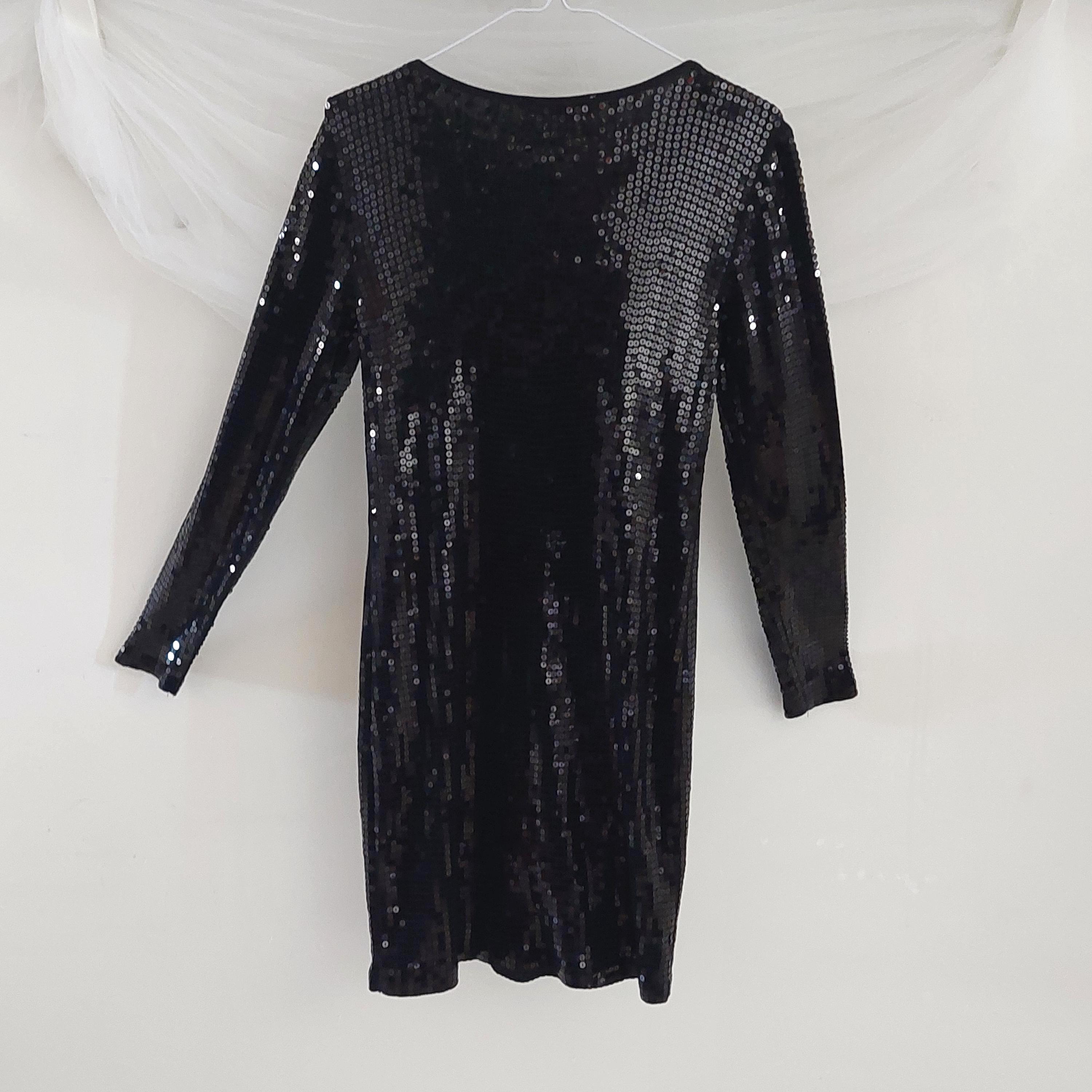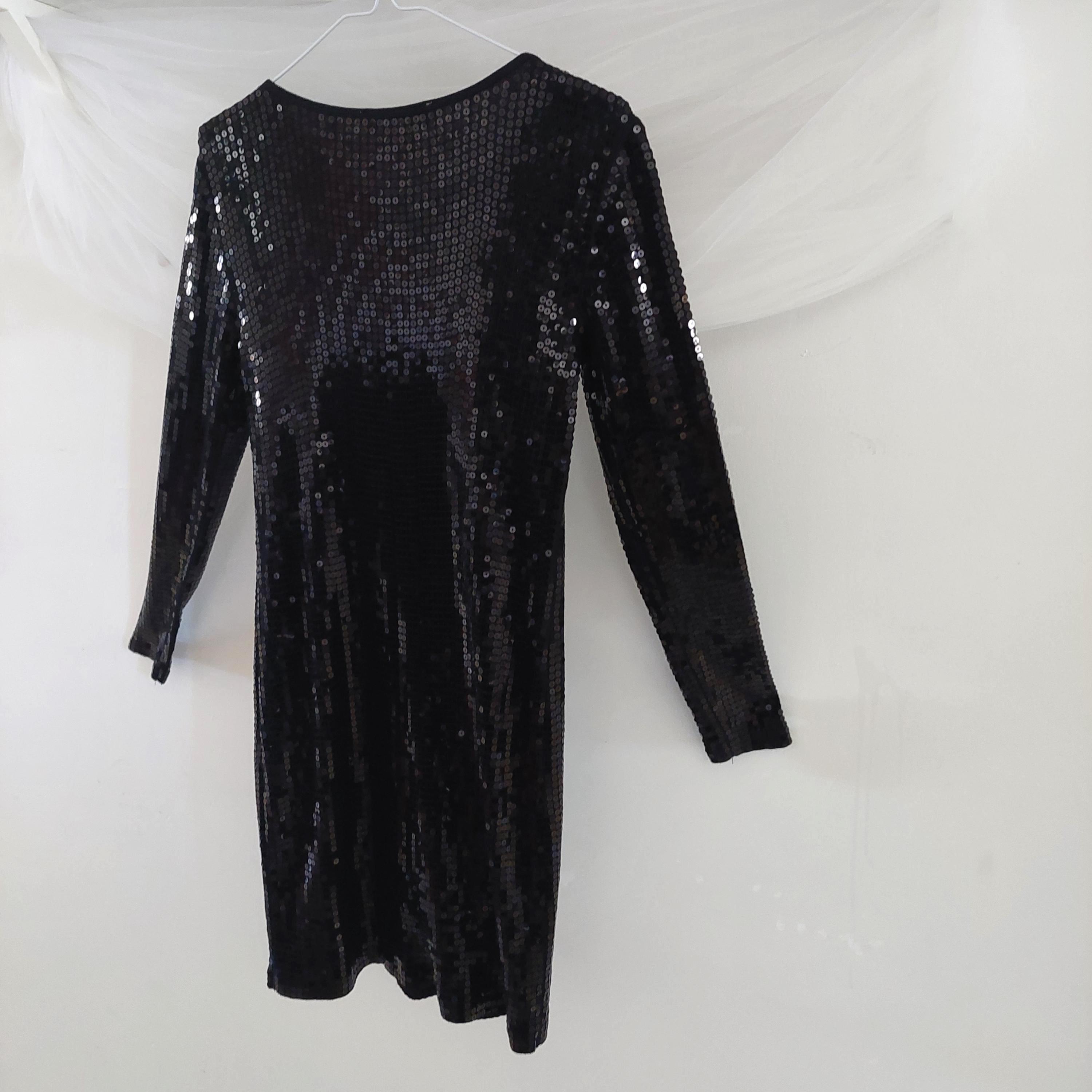 Designed with a sleek sheath silhouette and elegant long sleeves, this dress offers the perfect balance of sophistication and high-octane glamour. The all-over black sequins catch the light beautifully, making it the ultimate choice for cocktail parties, holiday events, or a memorable New Year's Eve.