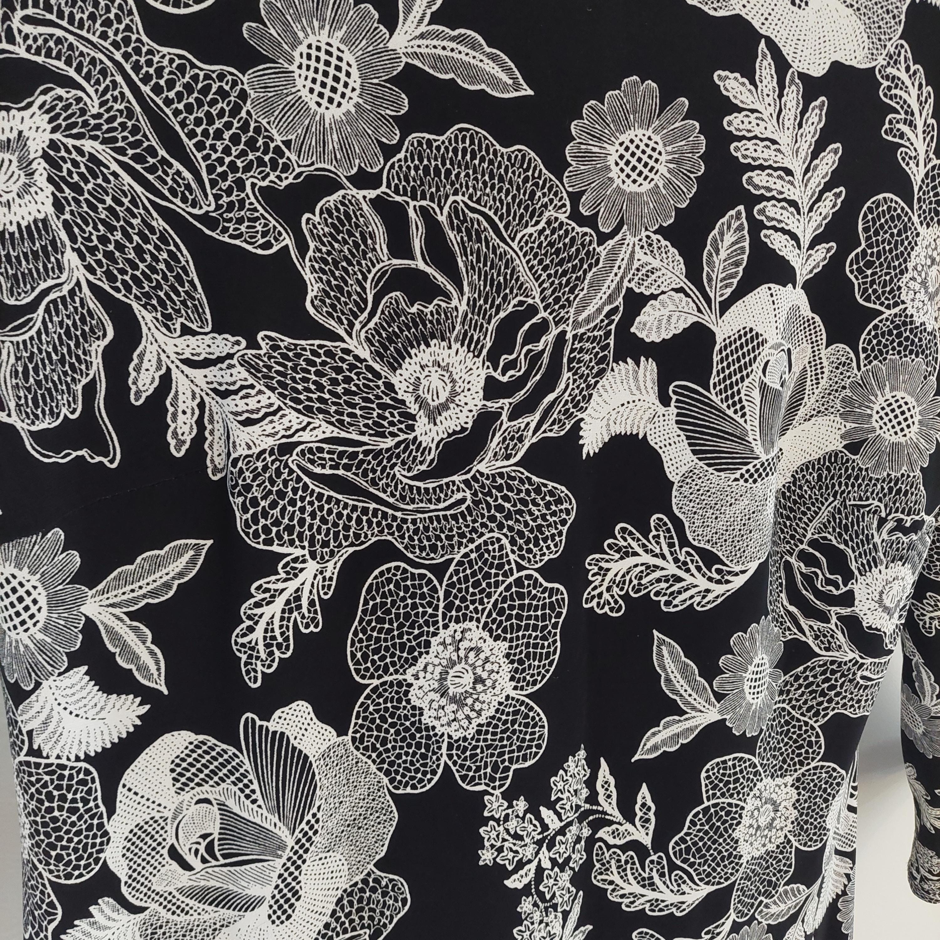 Graphic Print: Mimics appearance of fine lace of embroidery