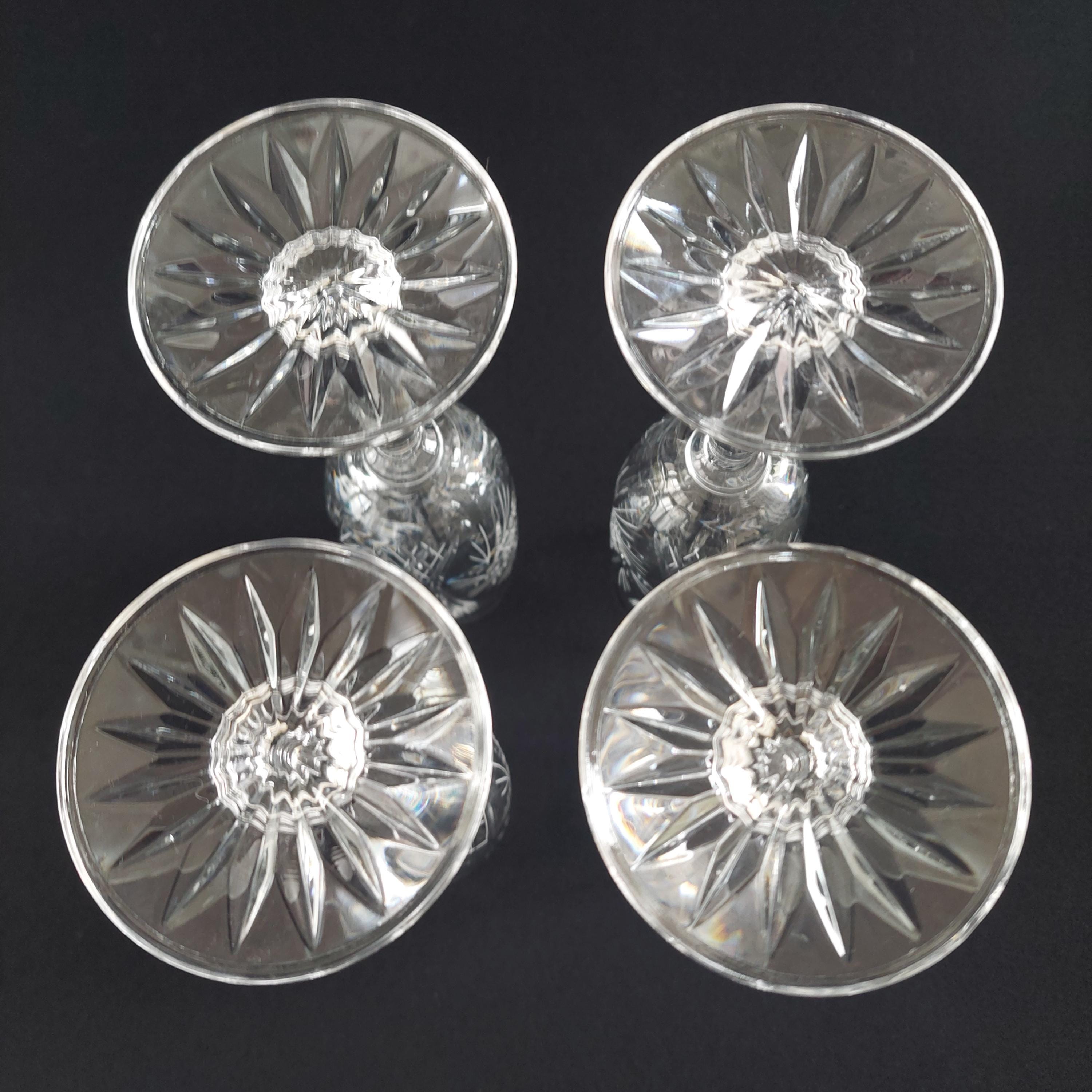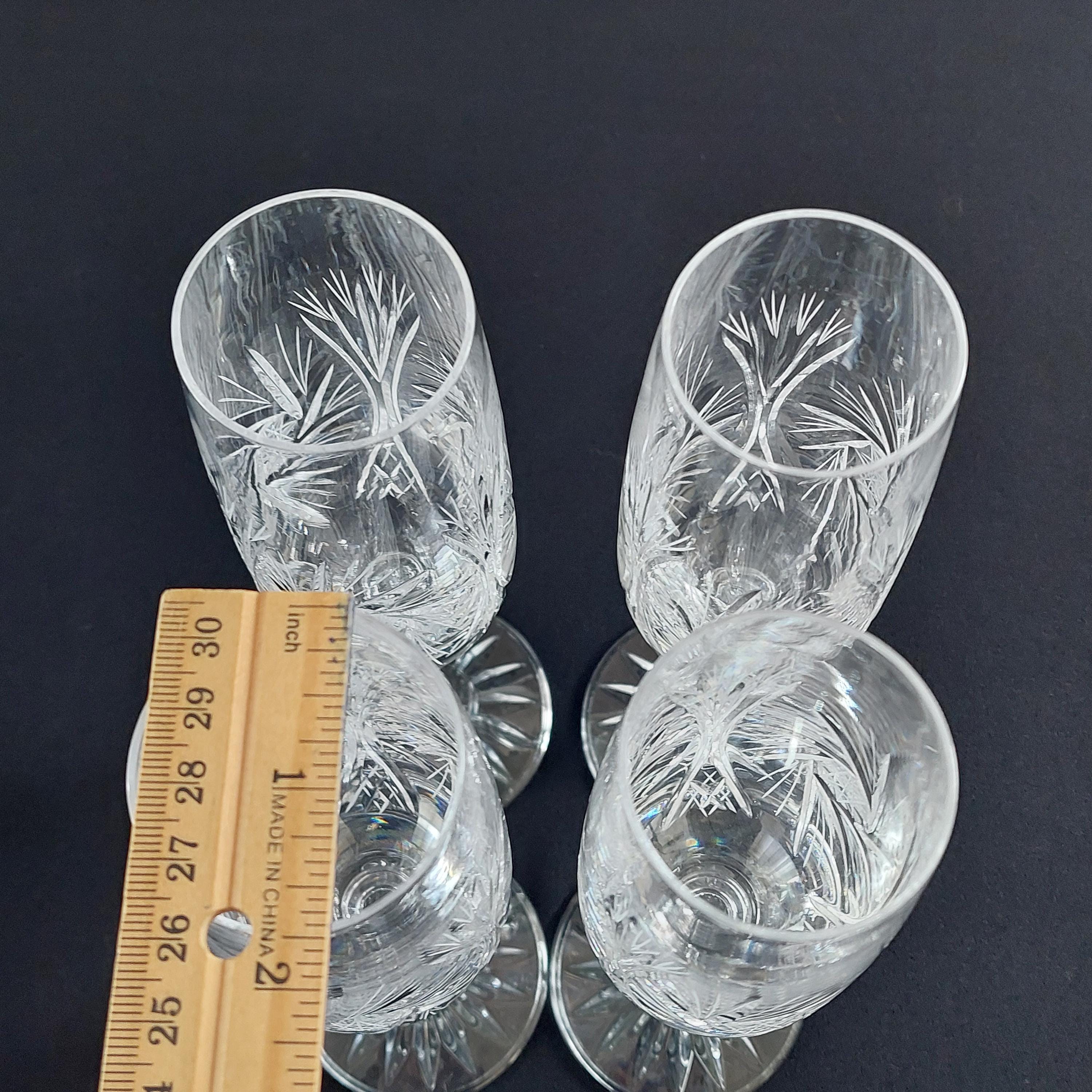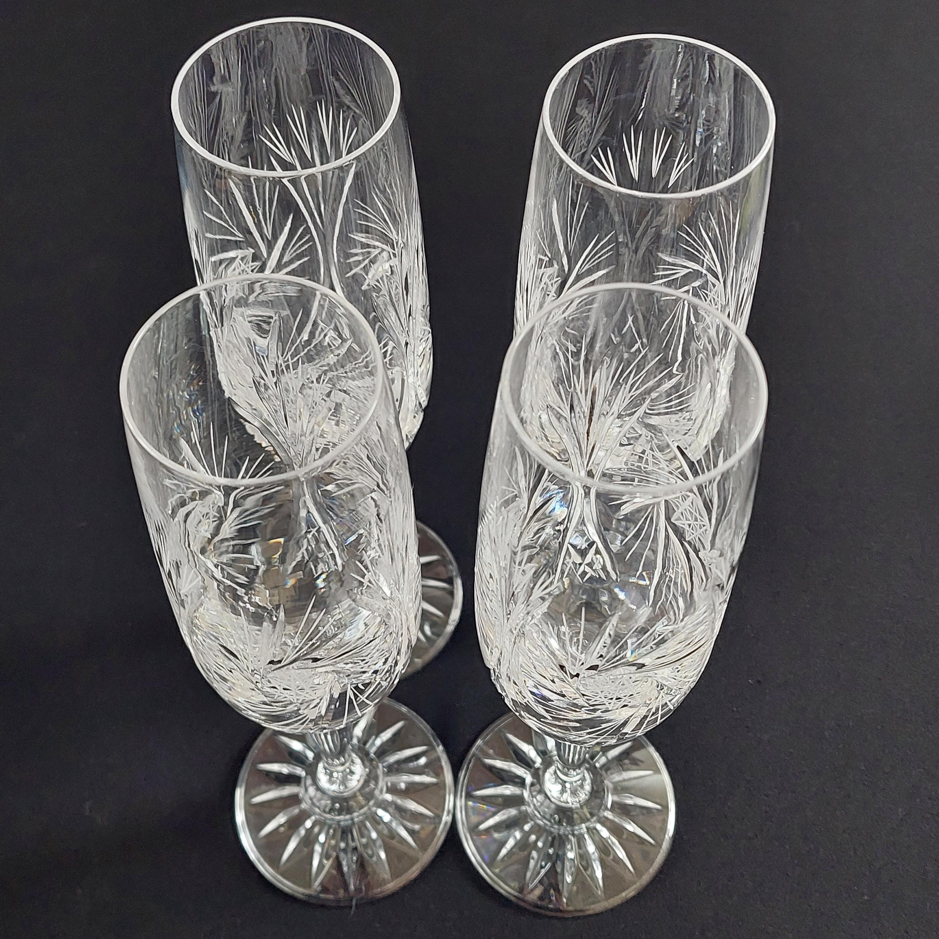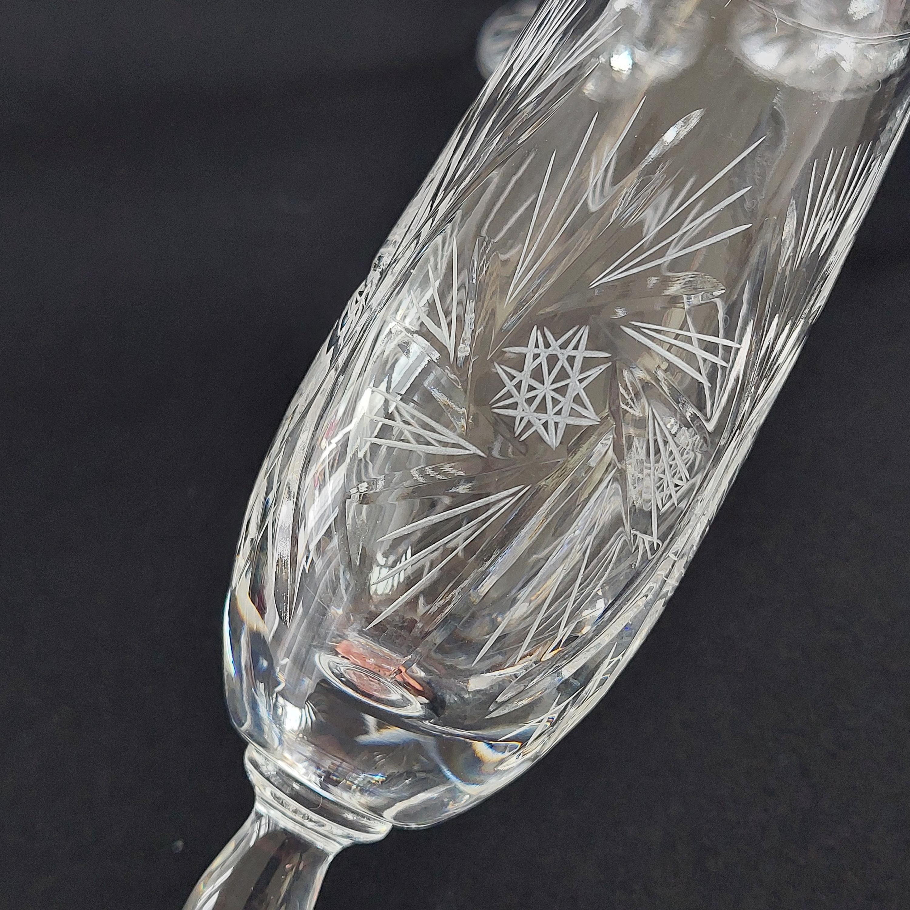 Vintage pinwheel crystal champagne flutes. Classic design is characterized by a rotating star-like motif, often referred to as a "pinwheel" or "starburst," Flutes make a lovely 'ping'