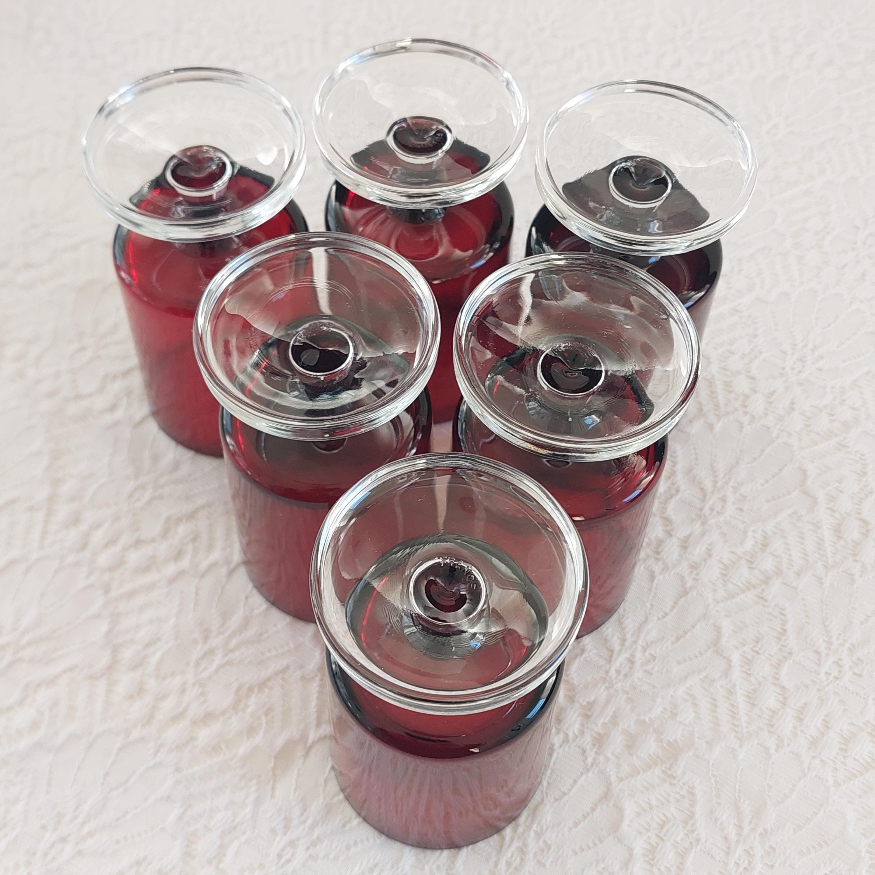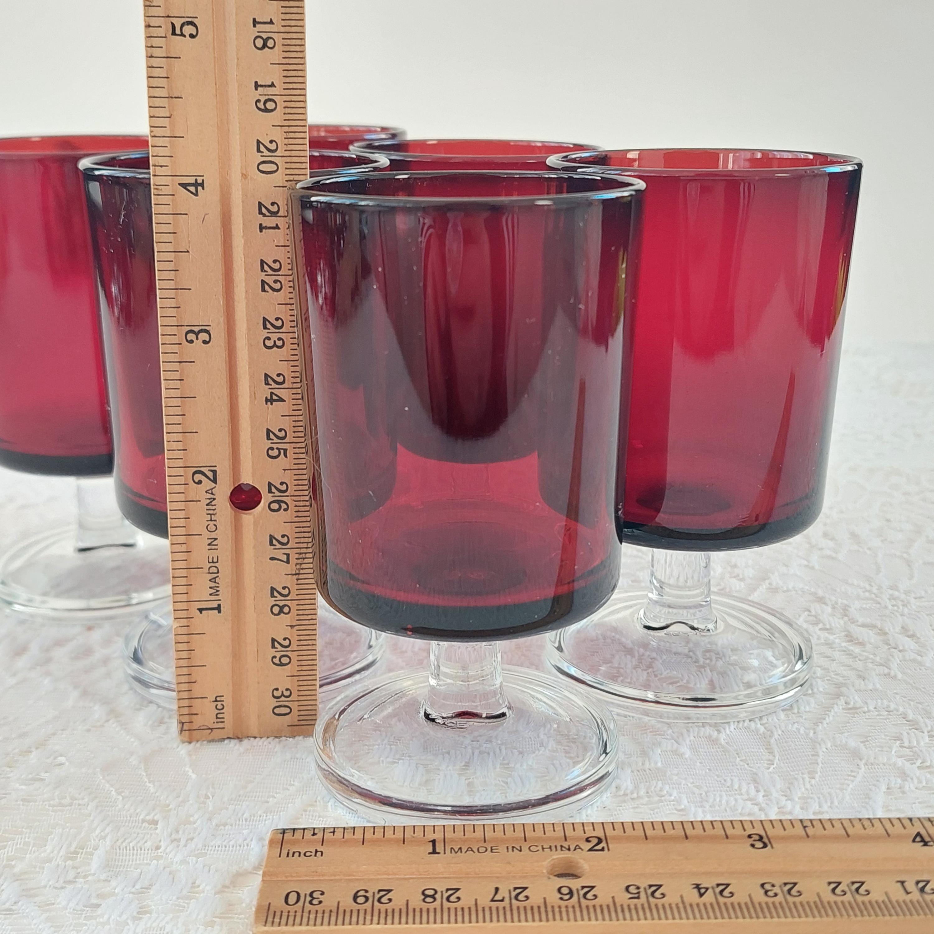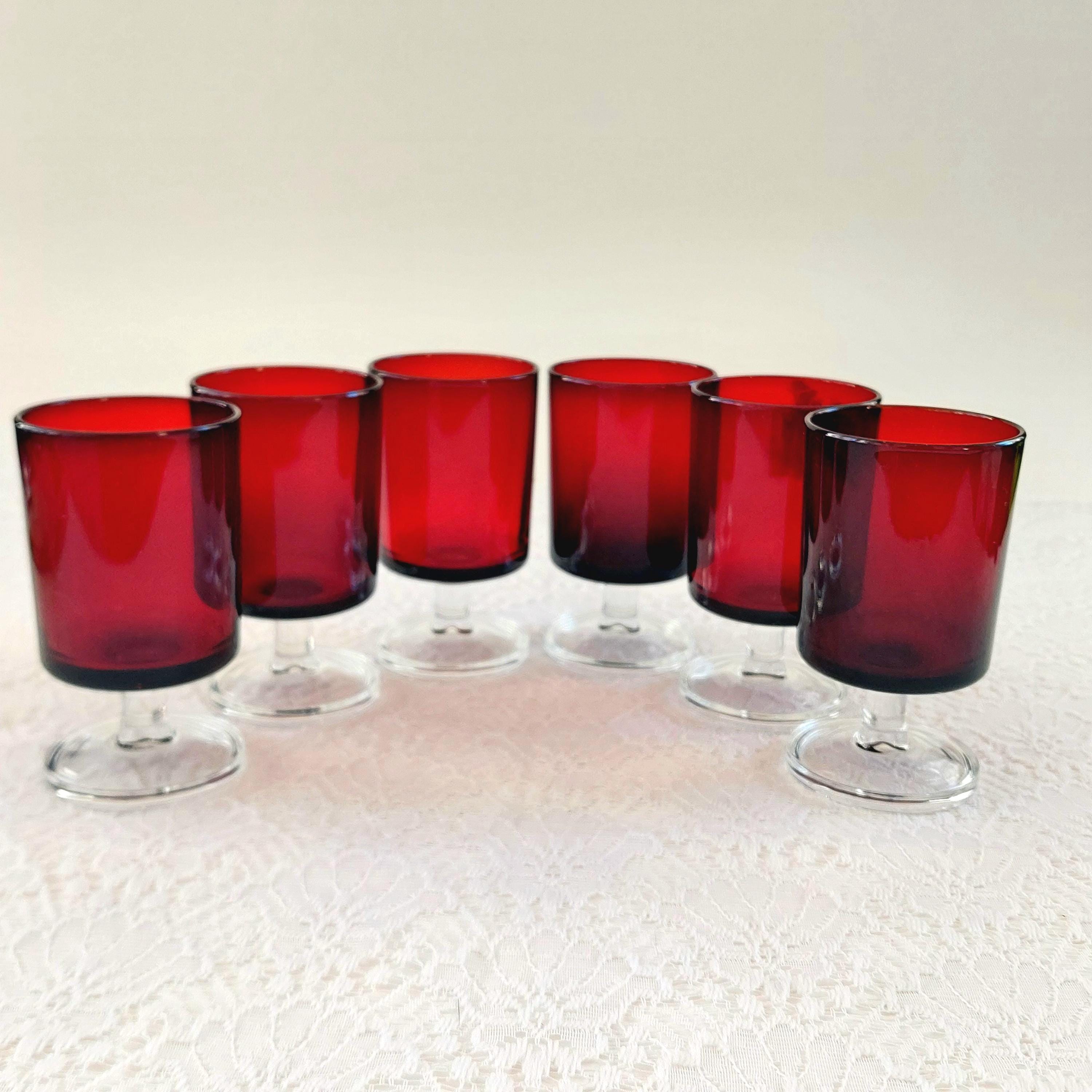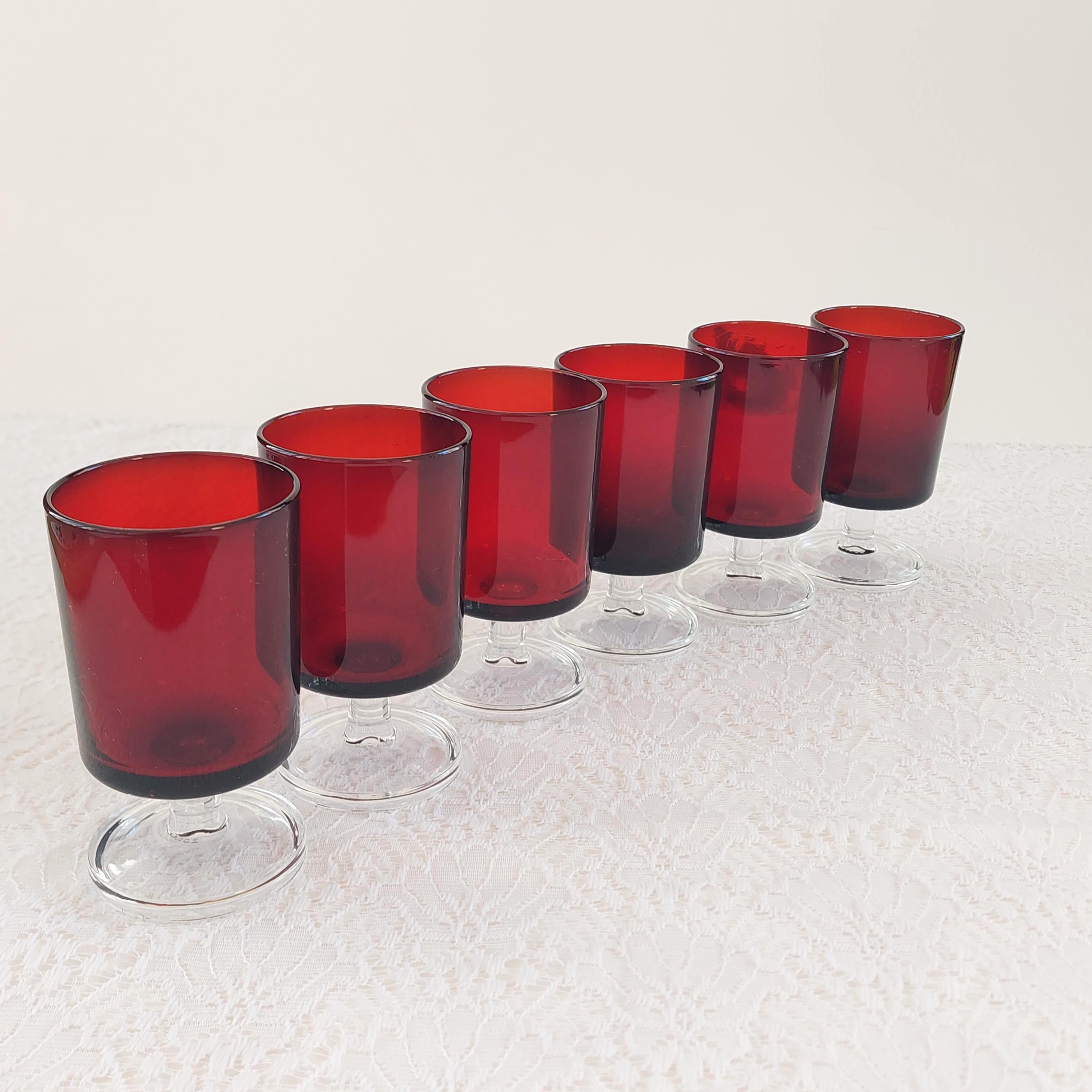 Luminarc France 4oz ruby red wine or water glass set, in the Cavalier pattern. Impressed on bottom 'France'