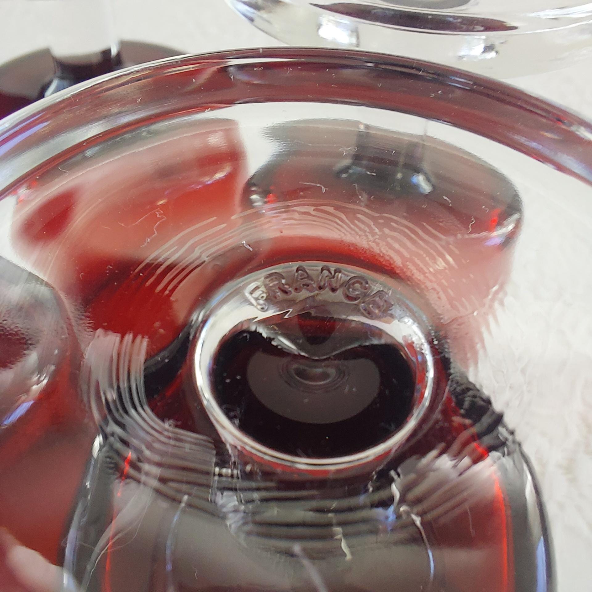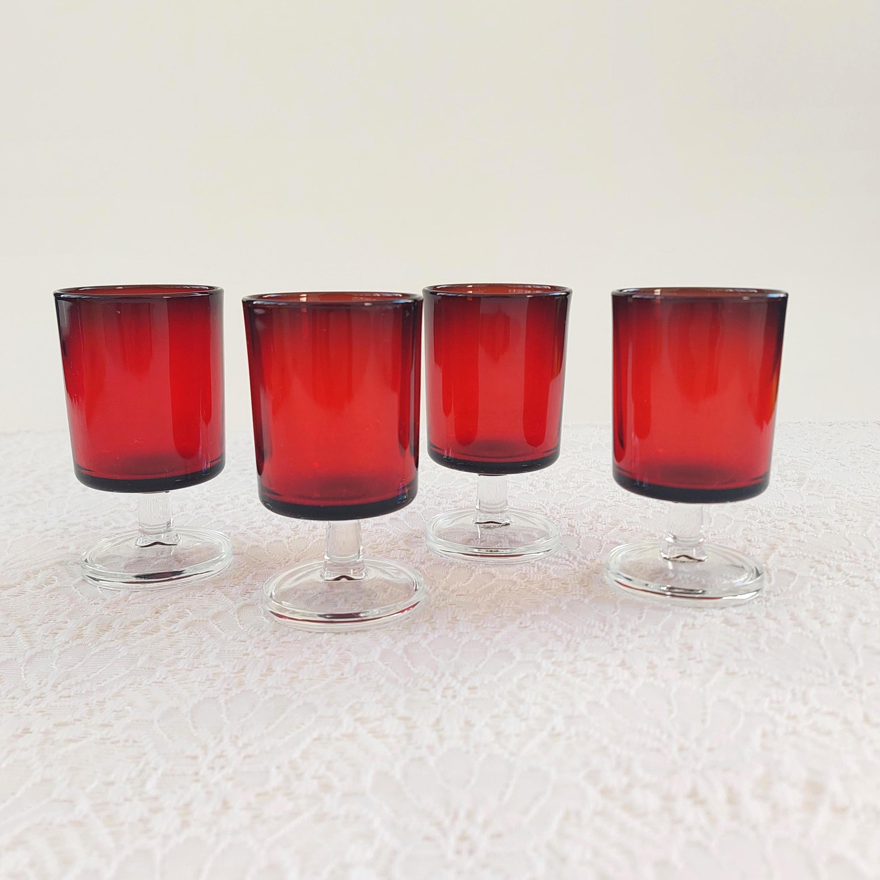 Luminarc France ruby red wine or water glass set, in the Cavalier pattern. Impressed on bottom 'France'