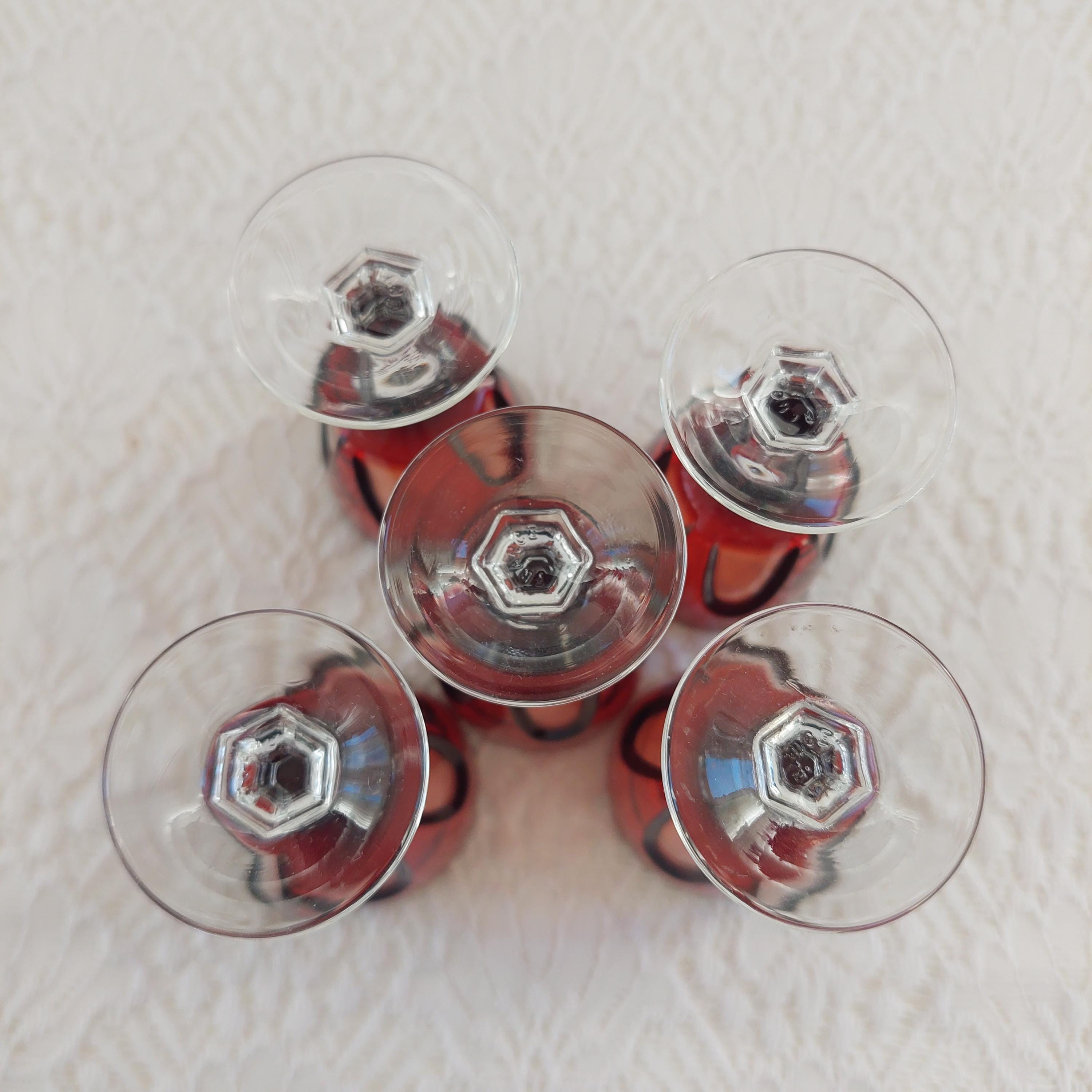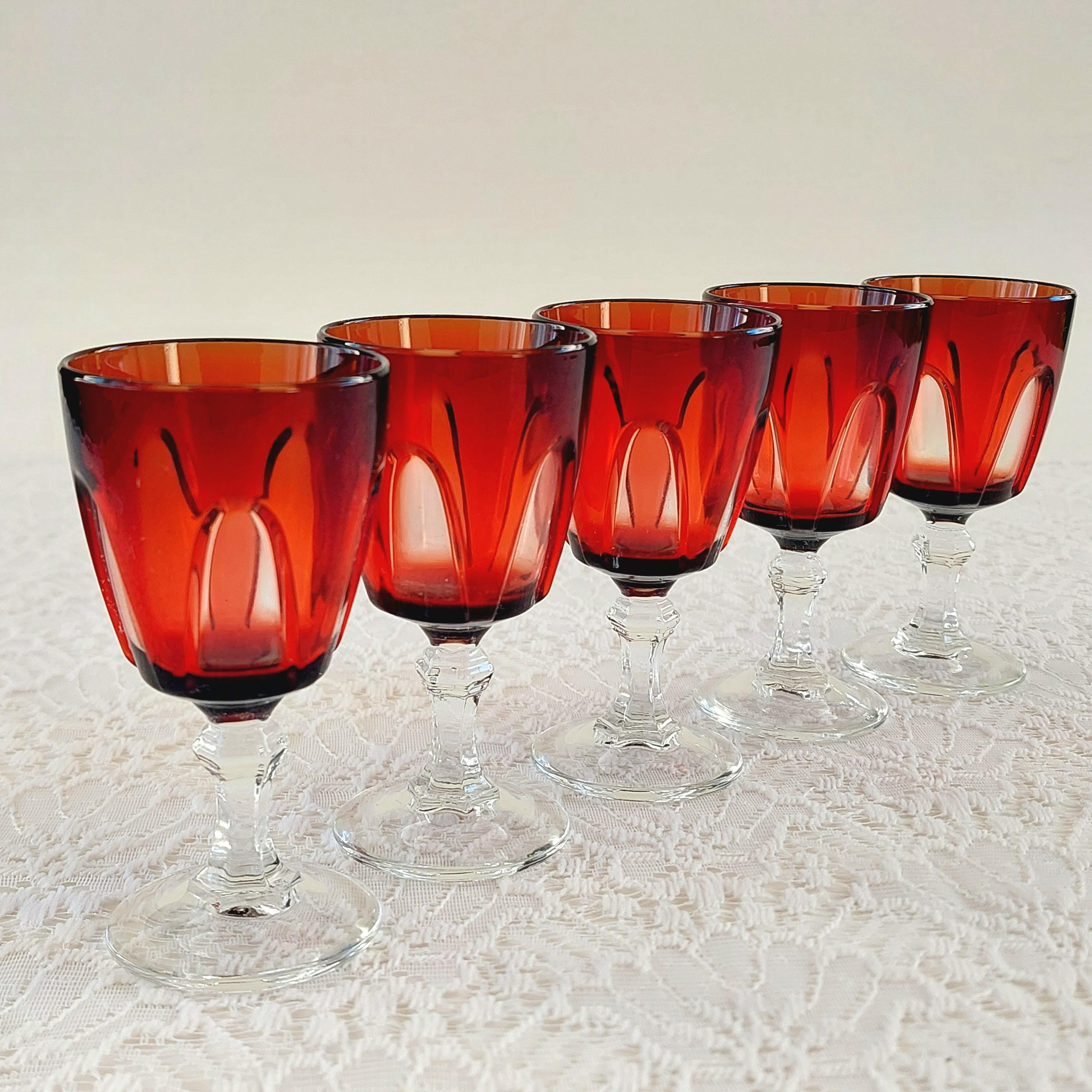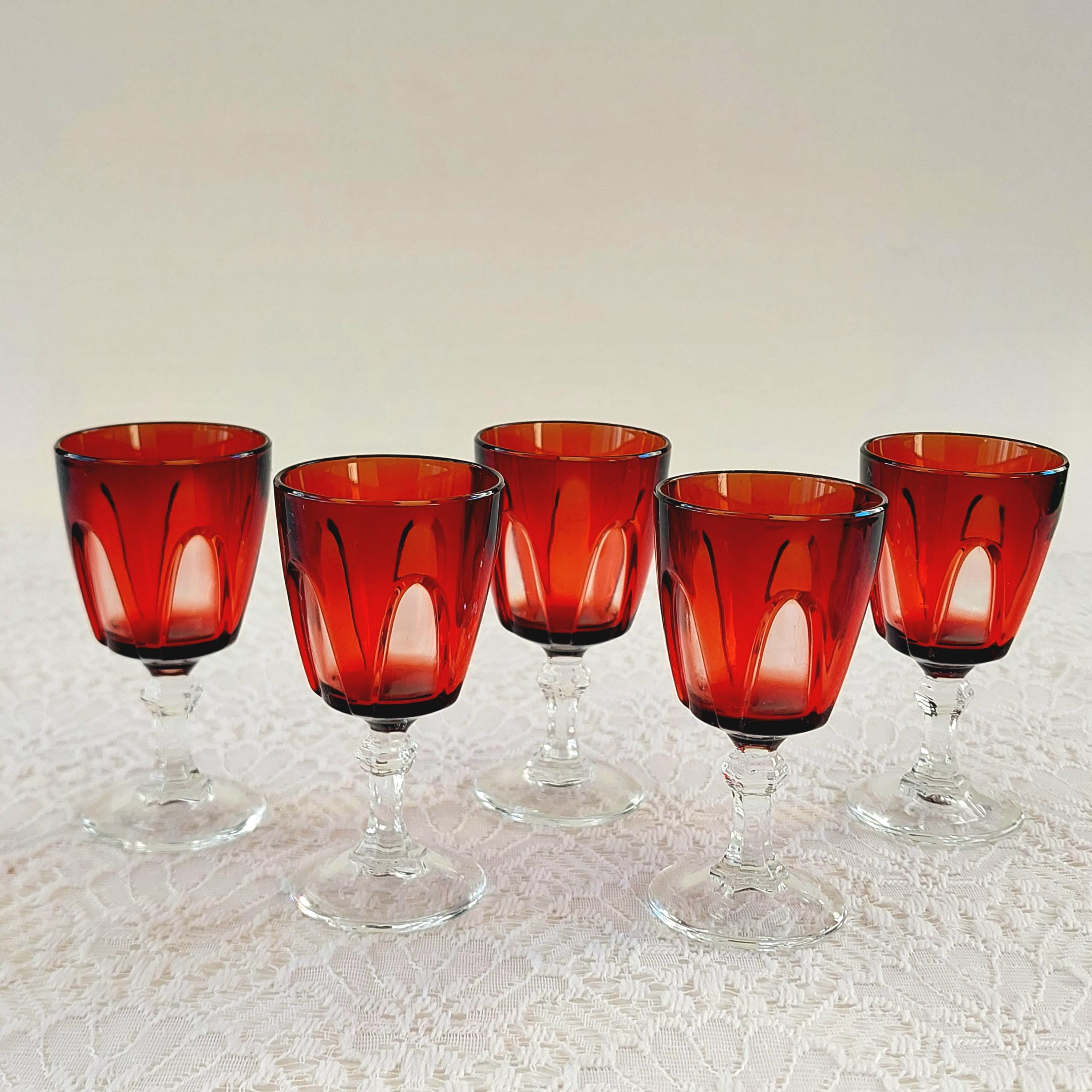 Vintage Cristal d'Arques Gothic ruby red liqueur glass set.