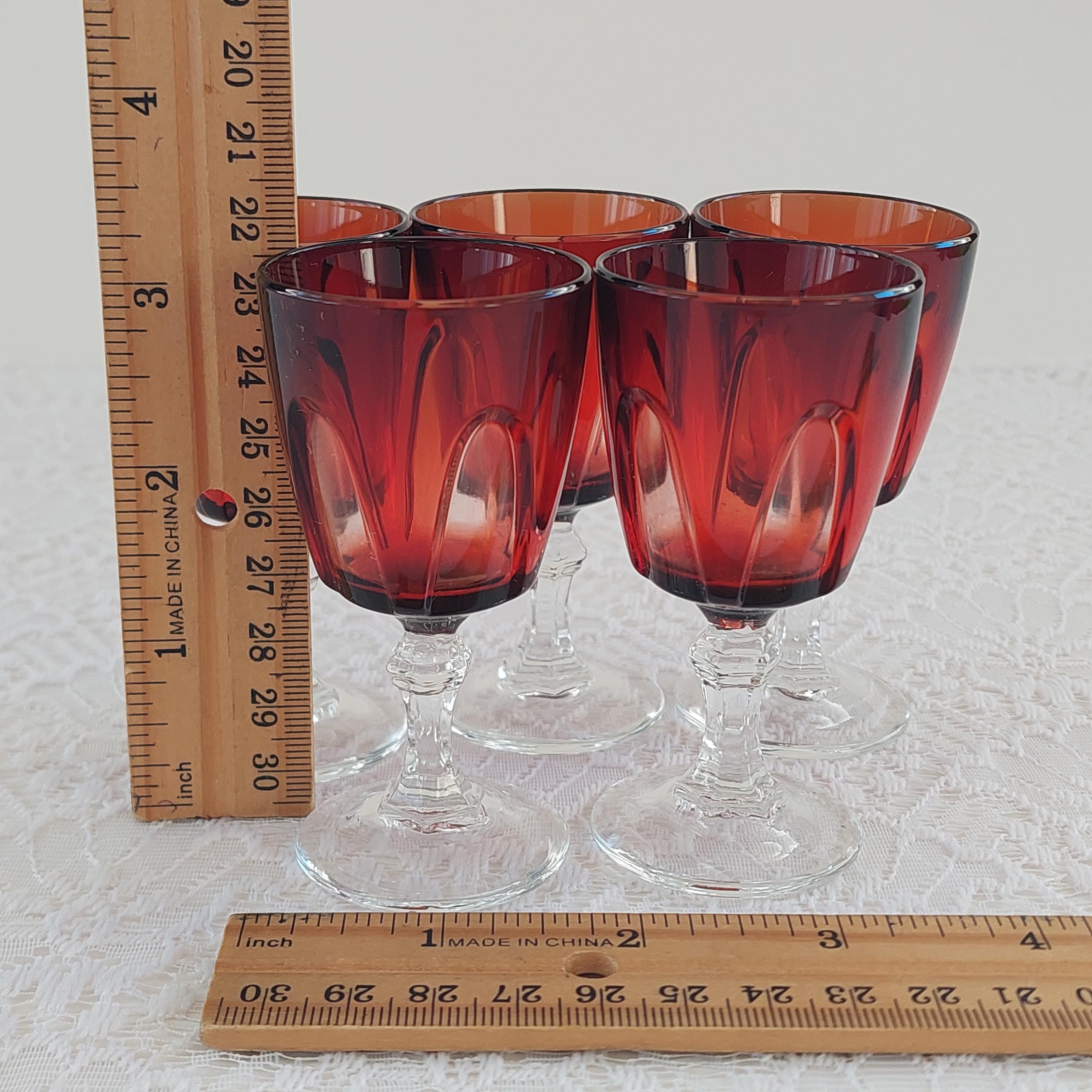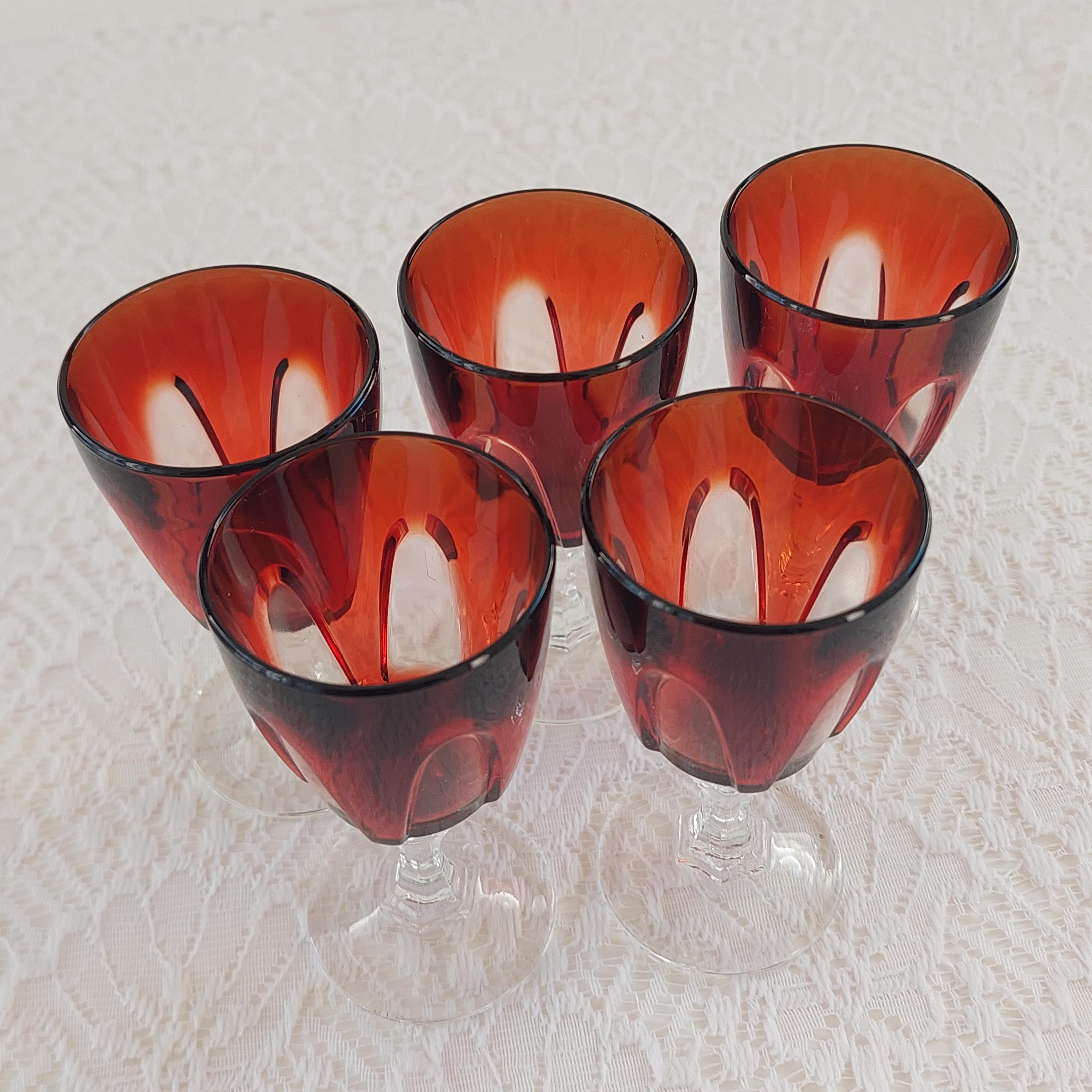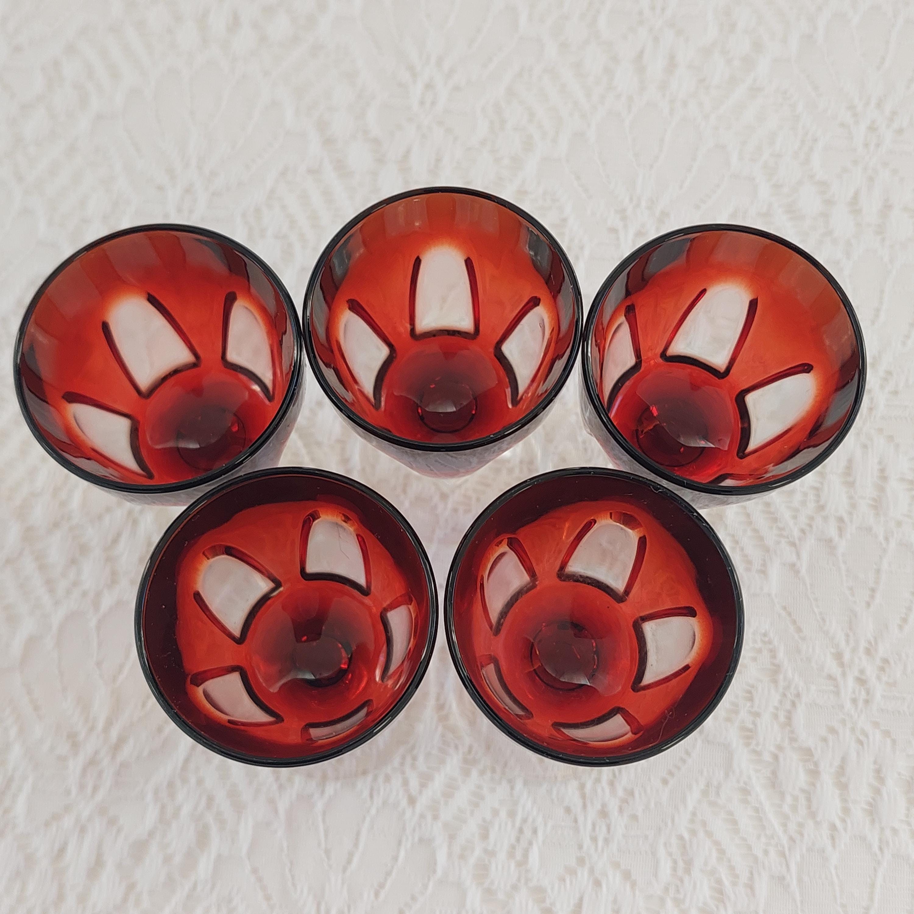 Vintage Cristal d'Arques Gothic ruby red liqueur glass set.