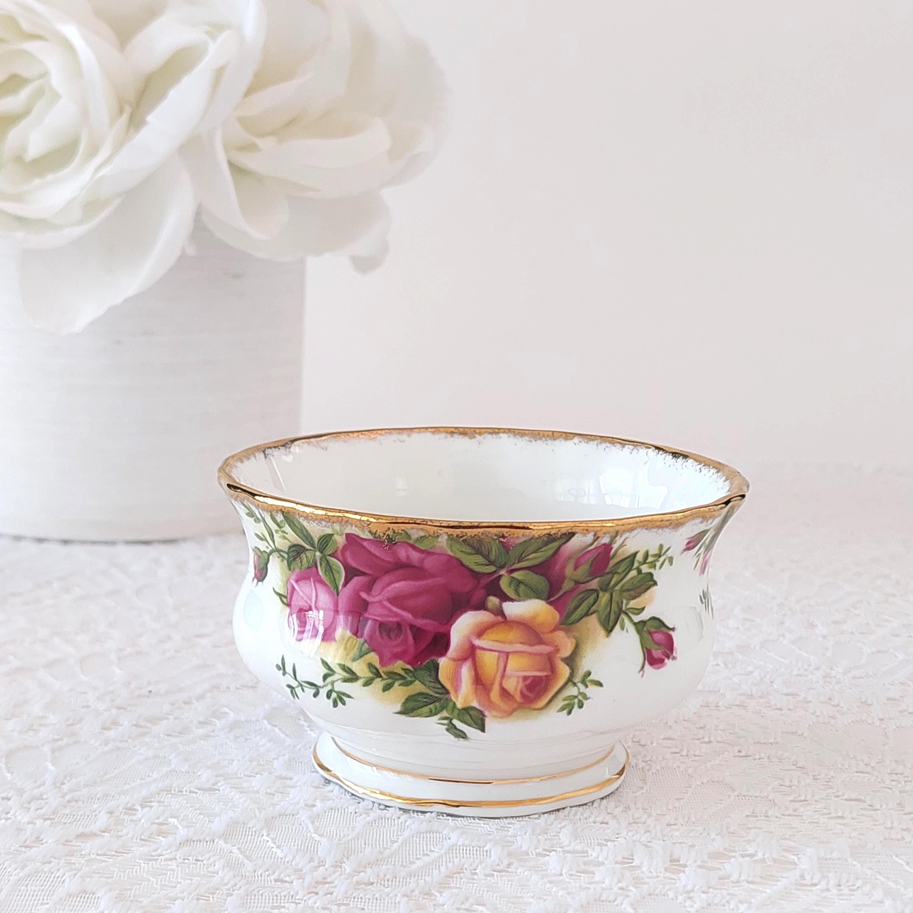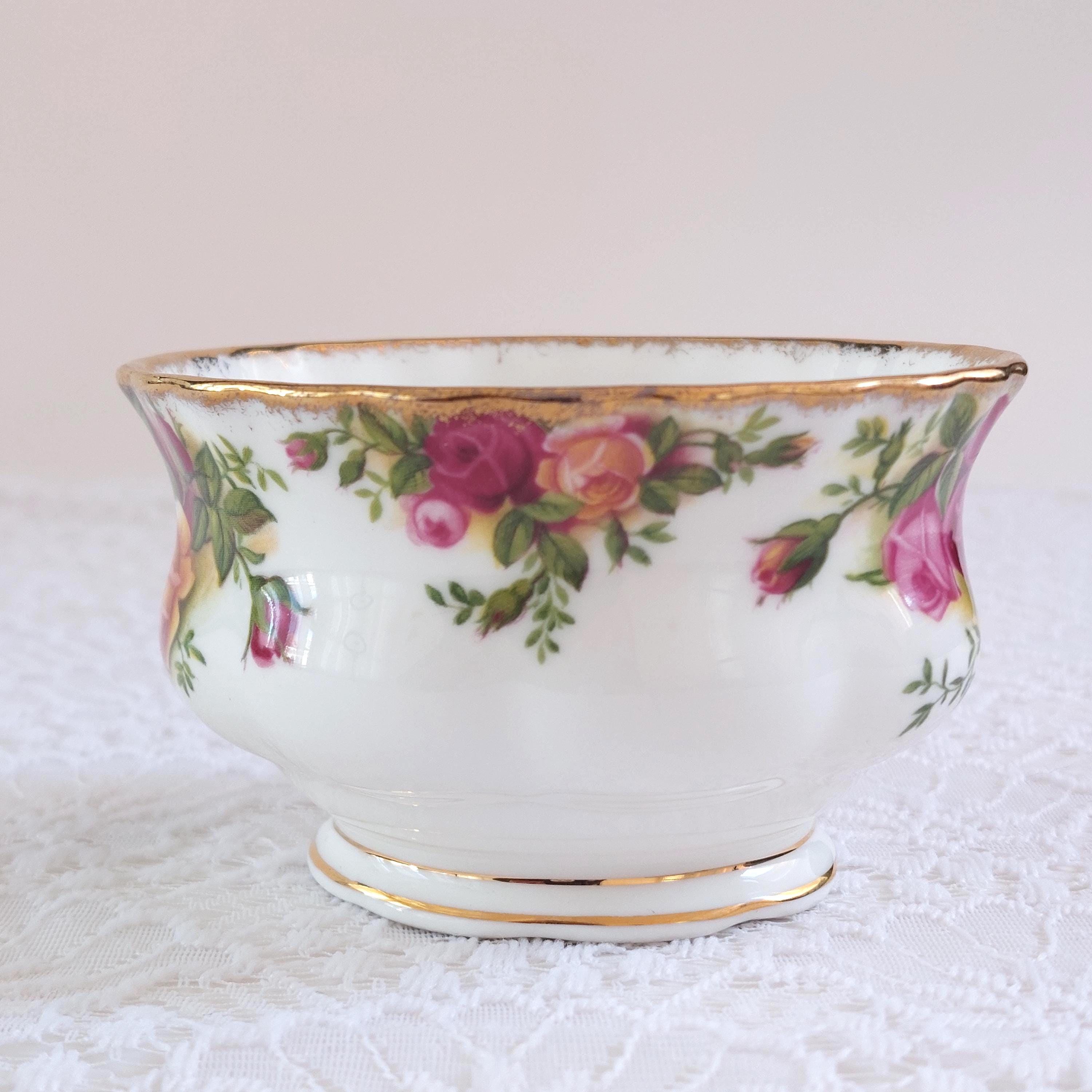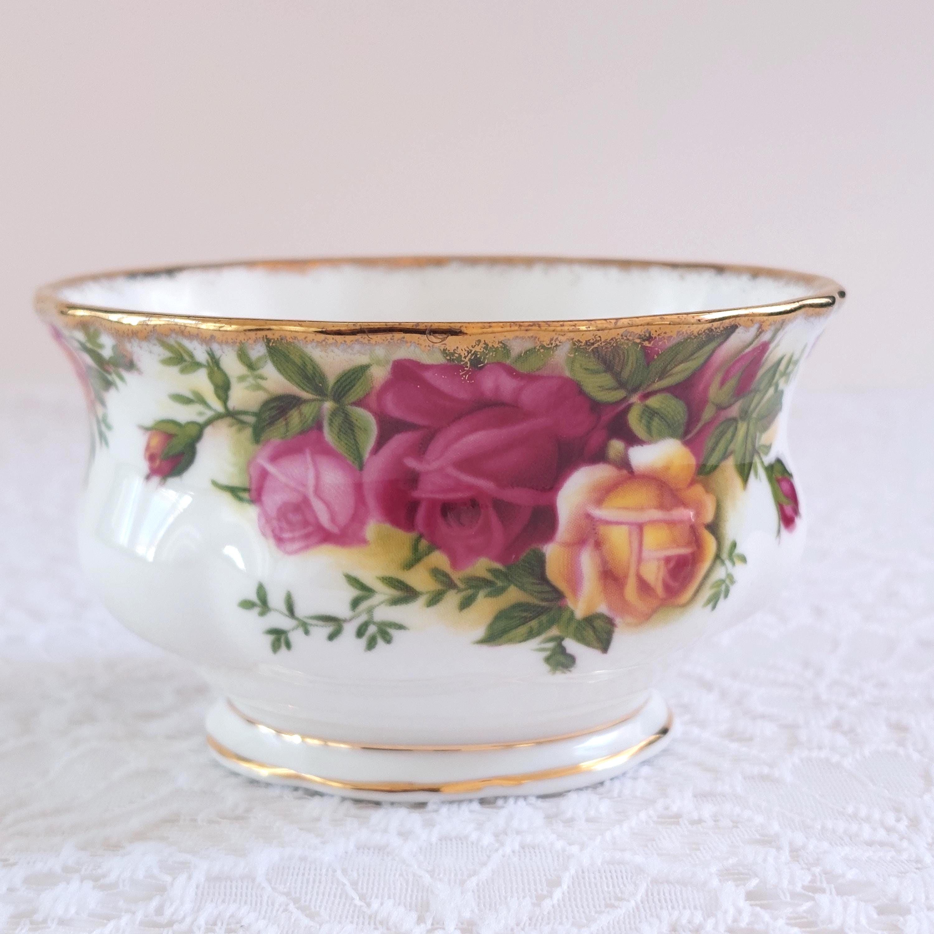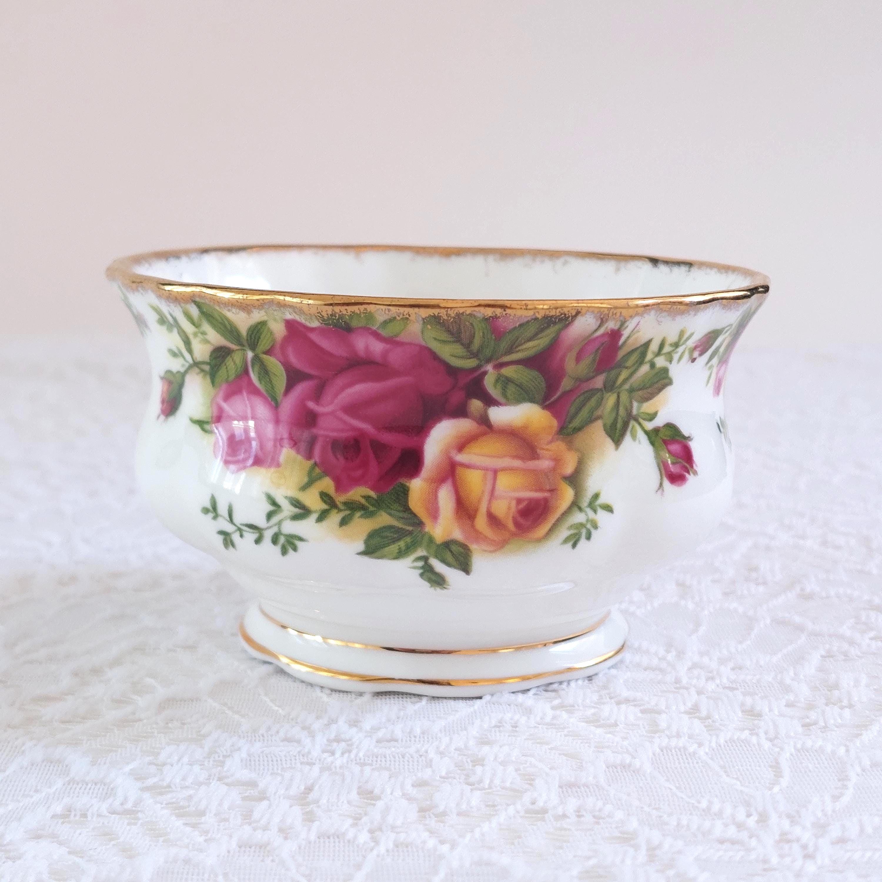 Vintage 1962 Royal Albert Old Country Roses open sugar bowl. Yellow, pink and red roses on bone china mugs. Gold accents & gold trim. Made in England