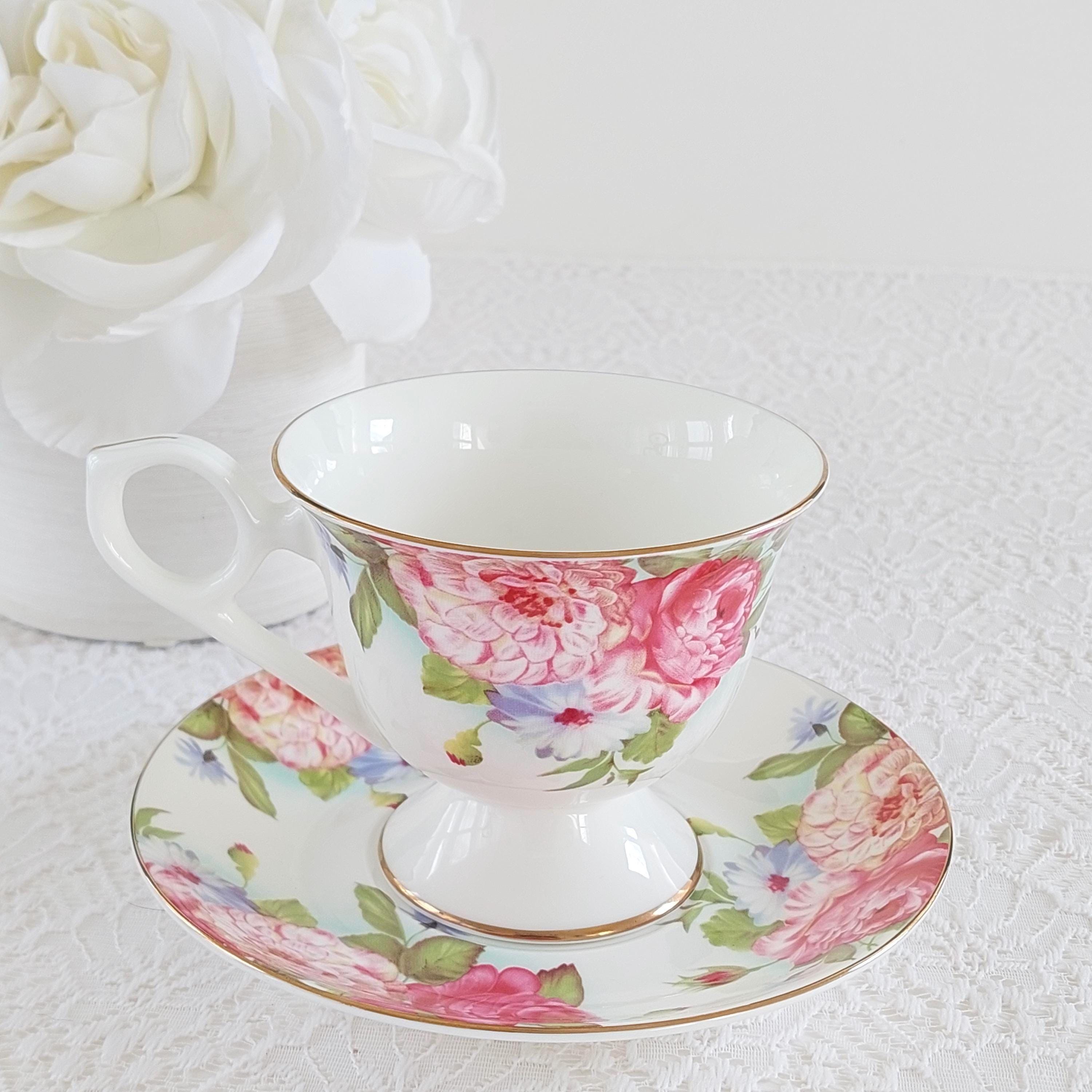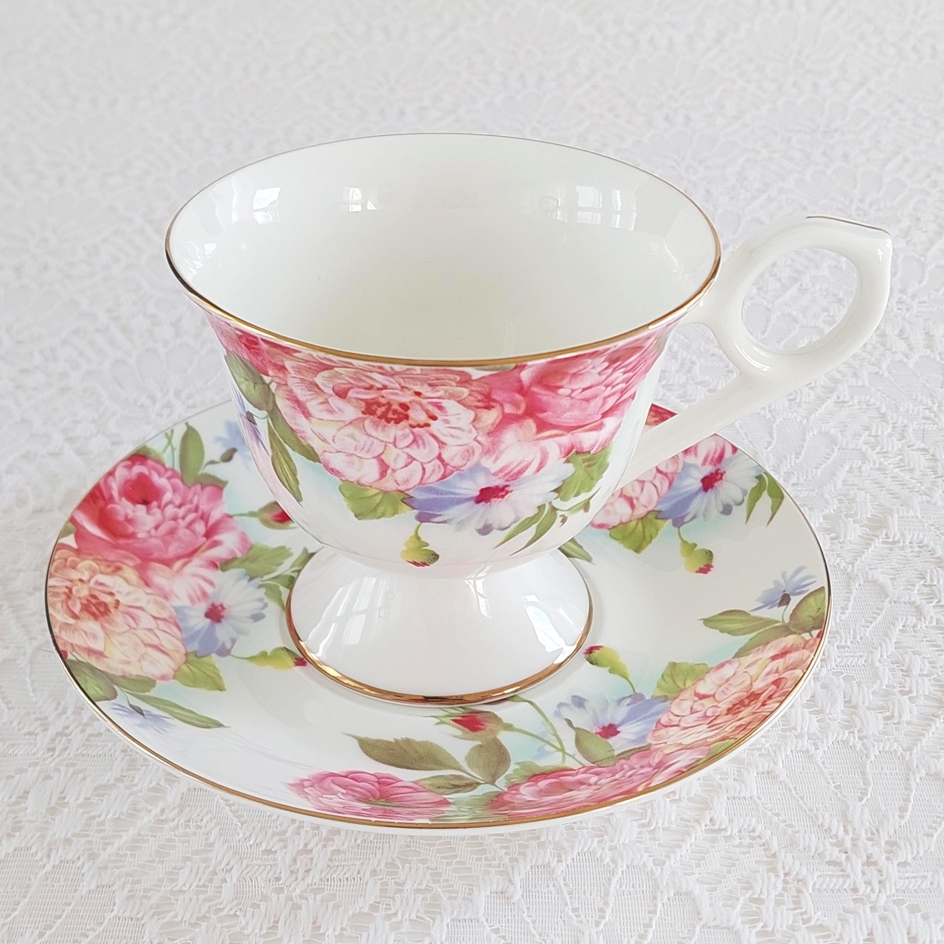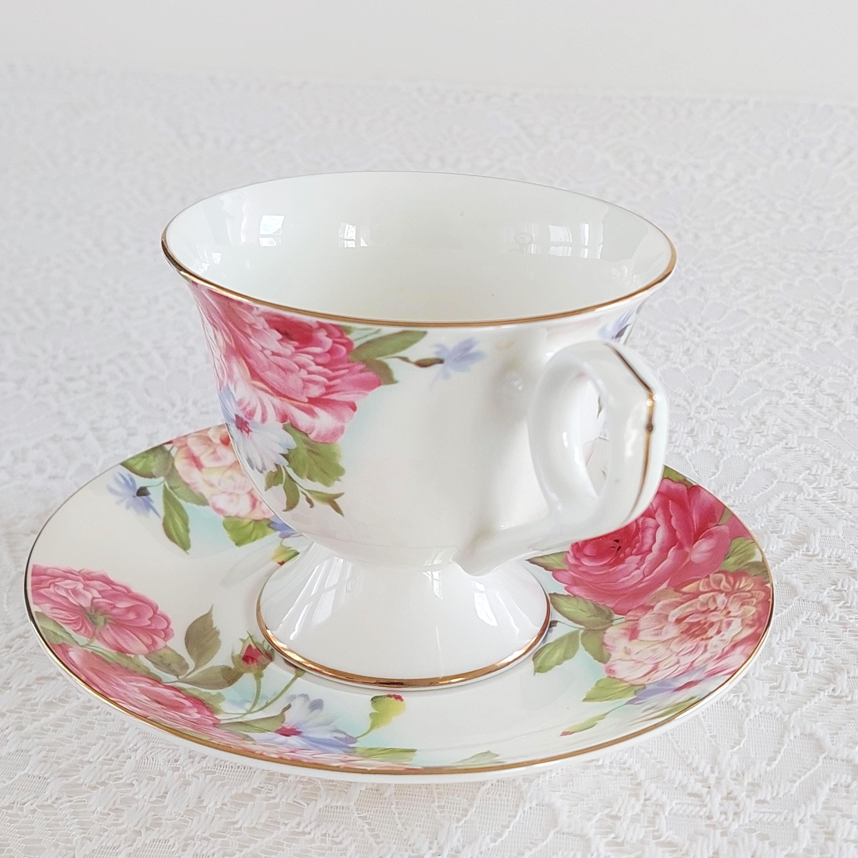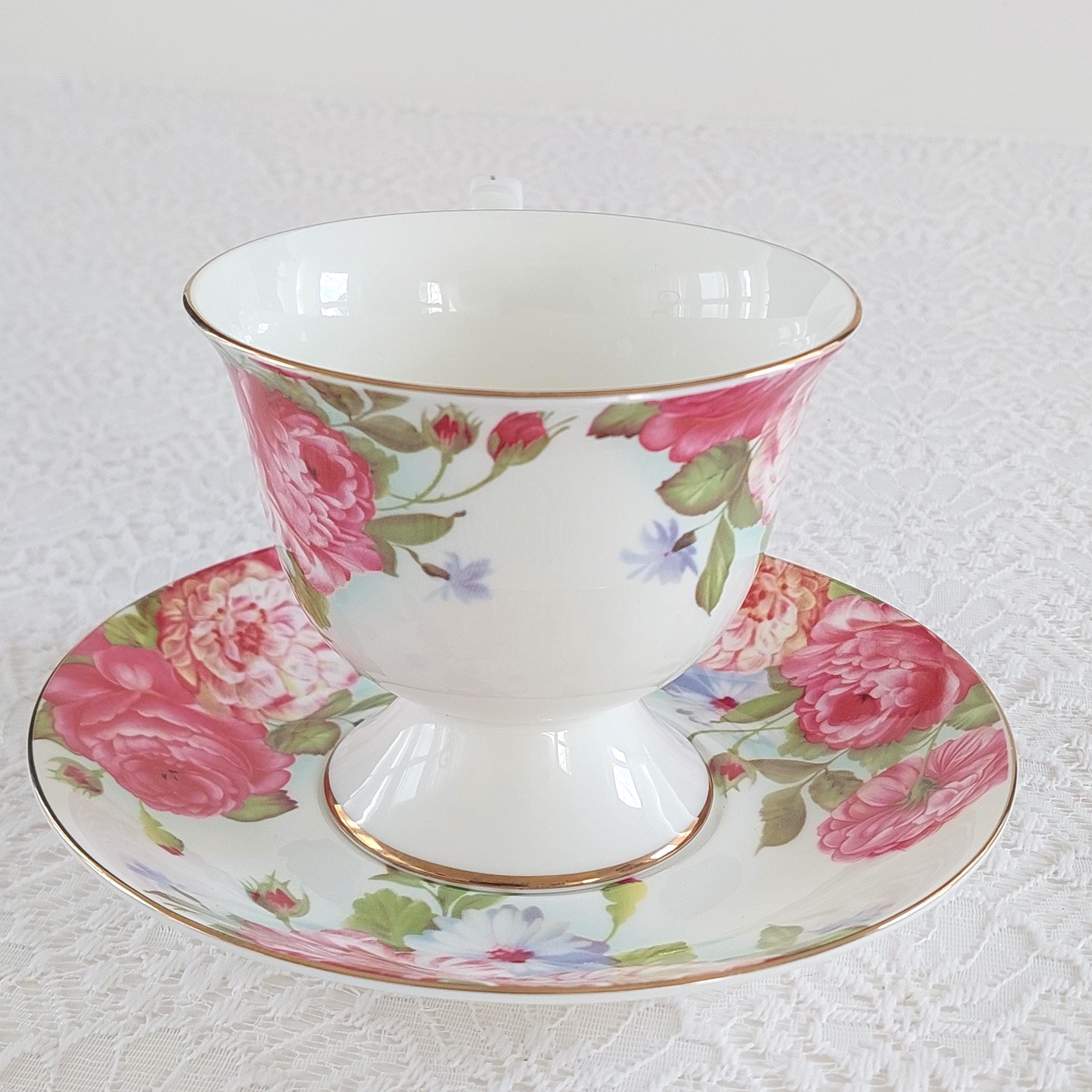 Vintage Sandra's Rose Porcelain Teacup & Saucer Set by Gracie's