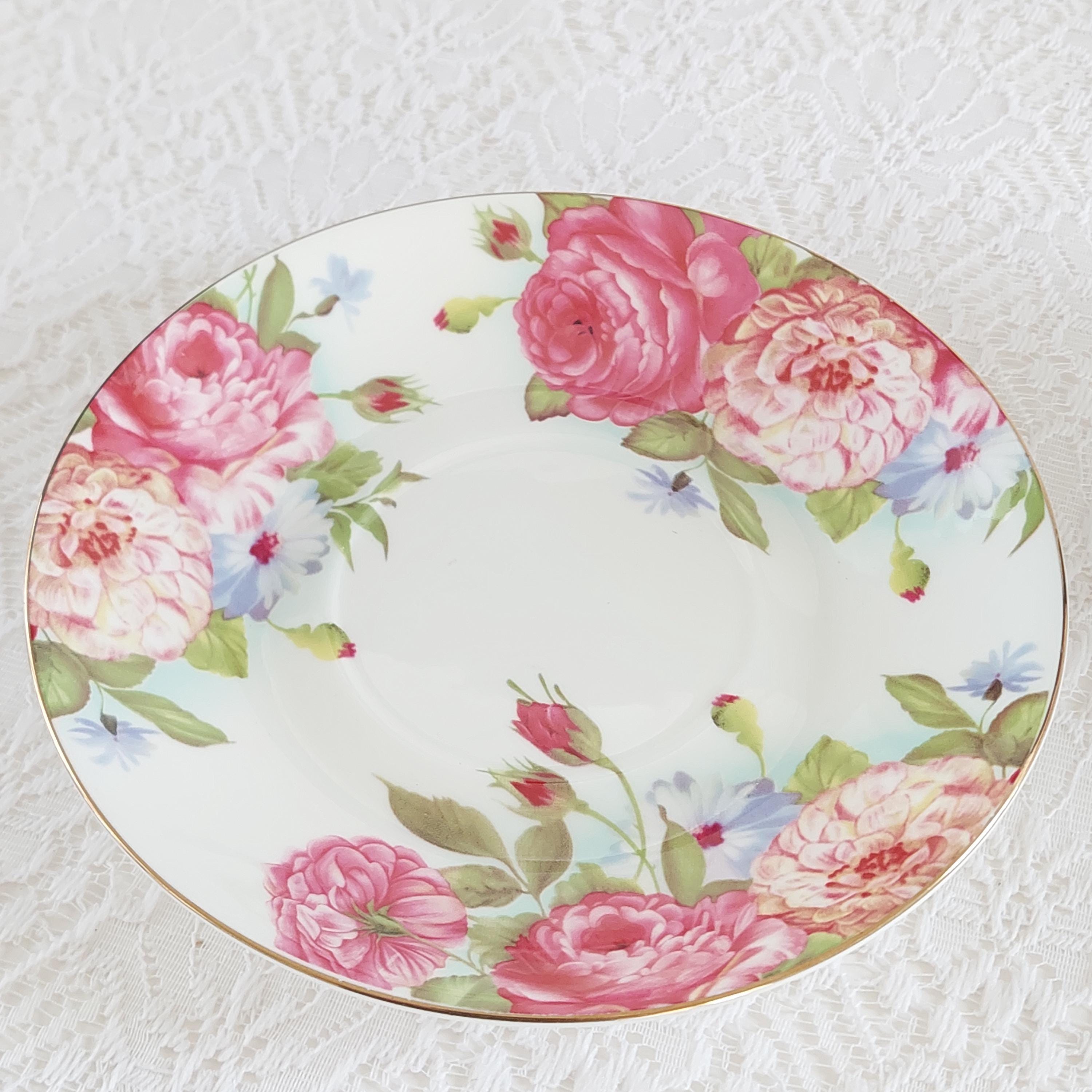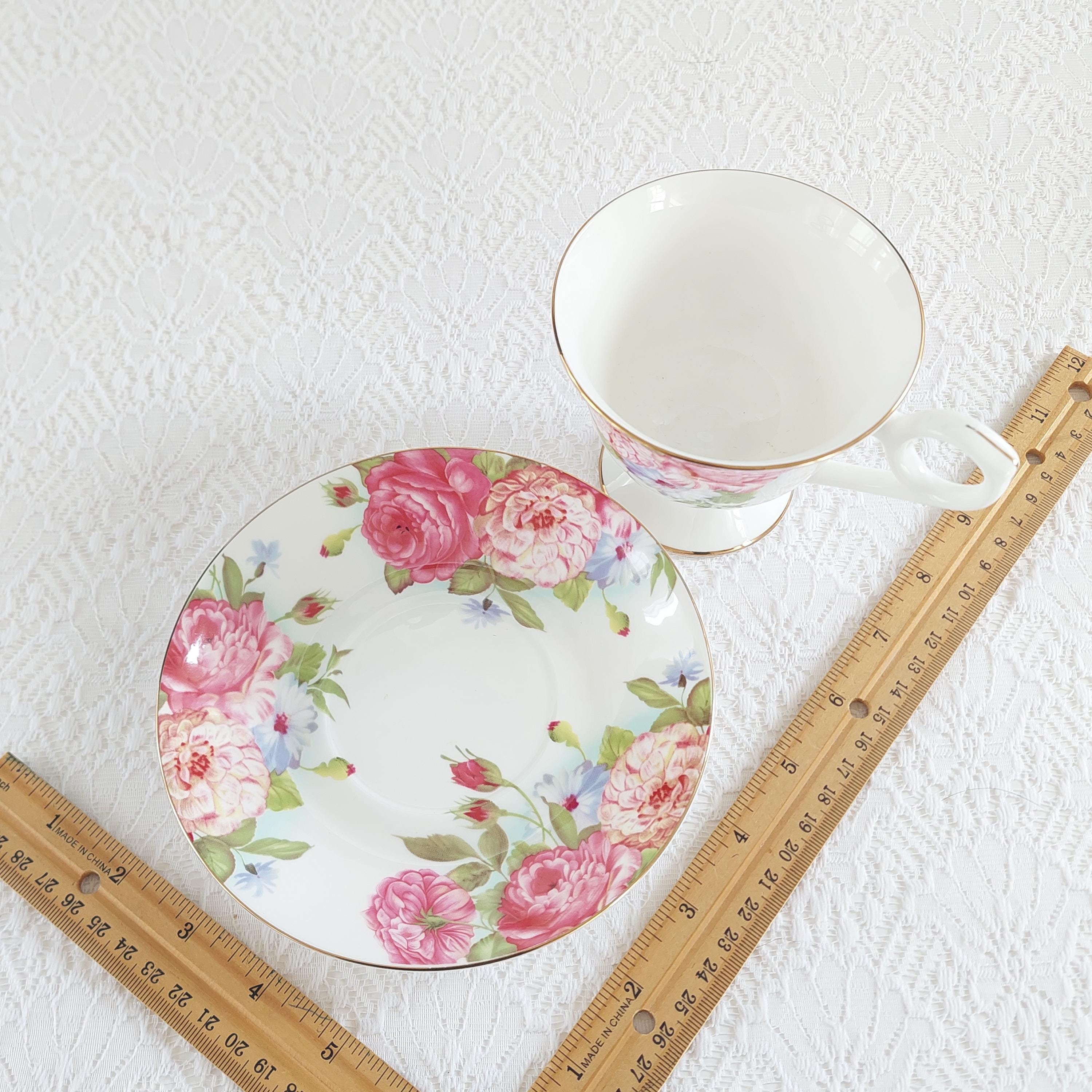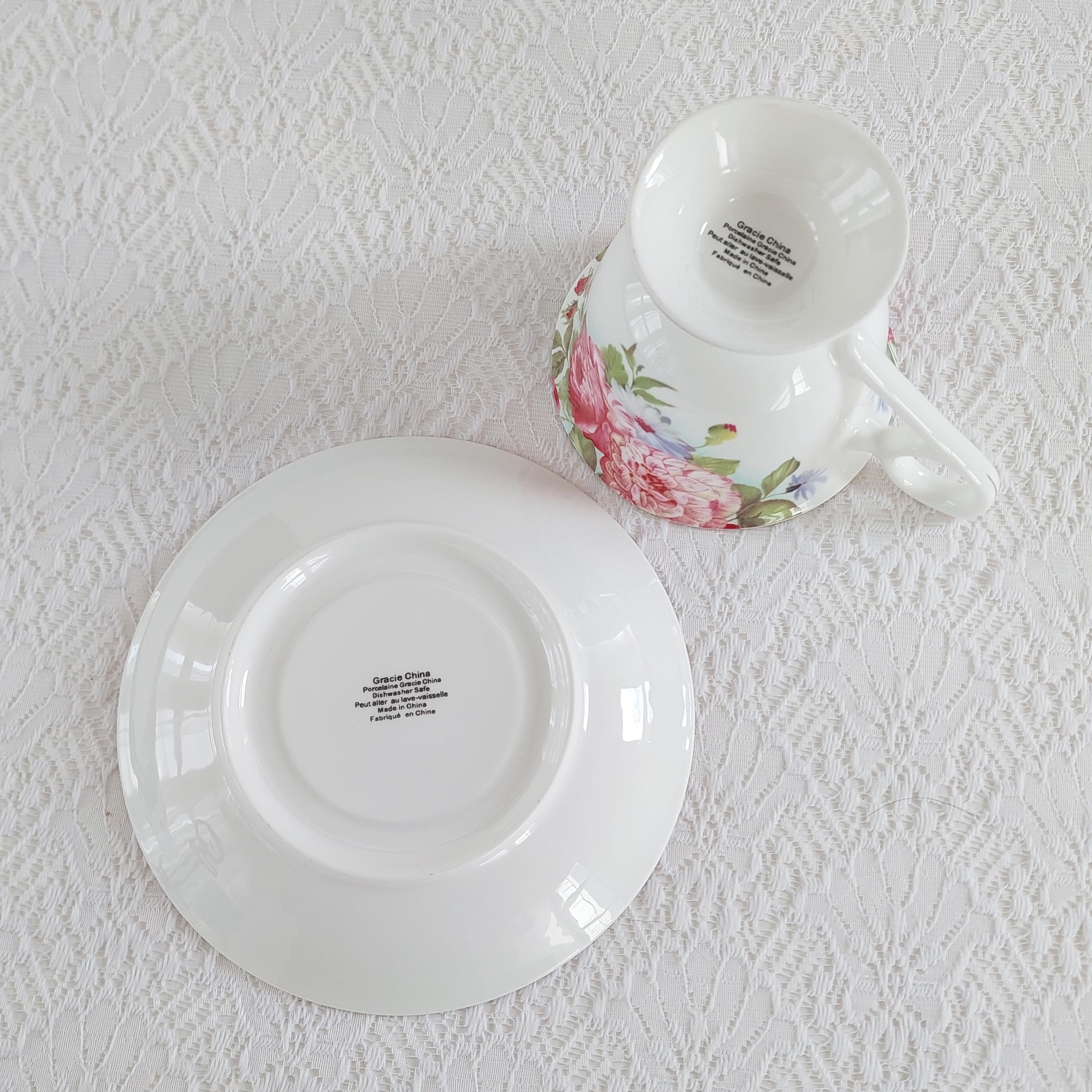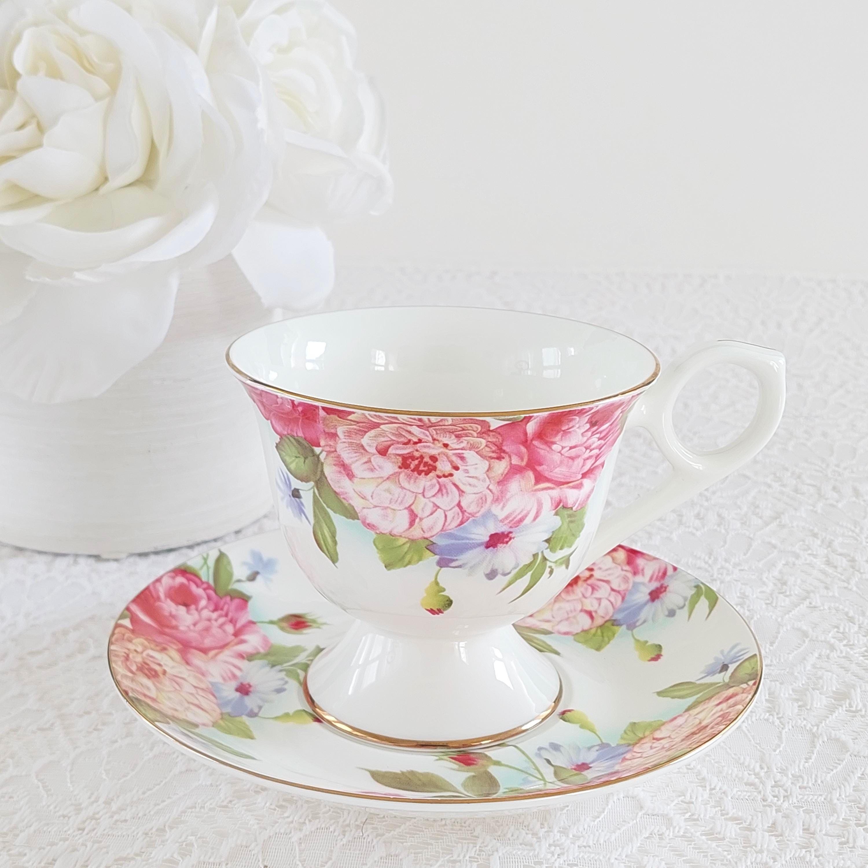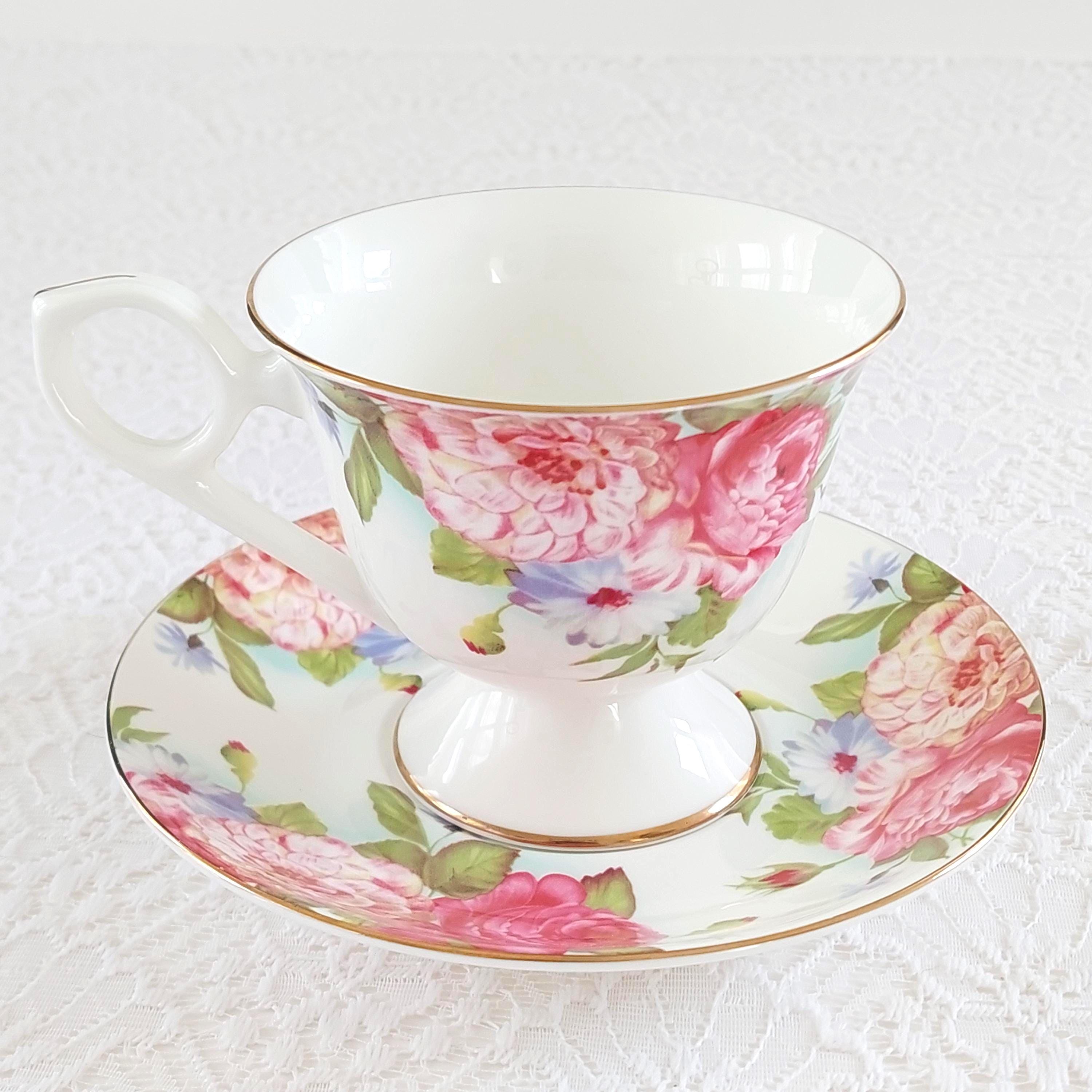 Vintage Sandra's Rose Porcelain Teacup & Saucer Set by Gracie's