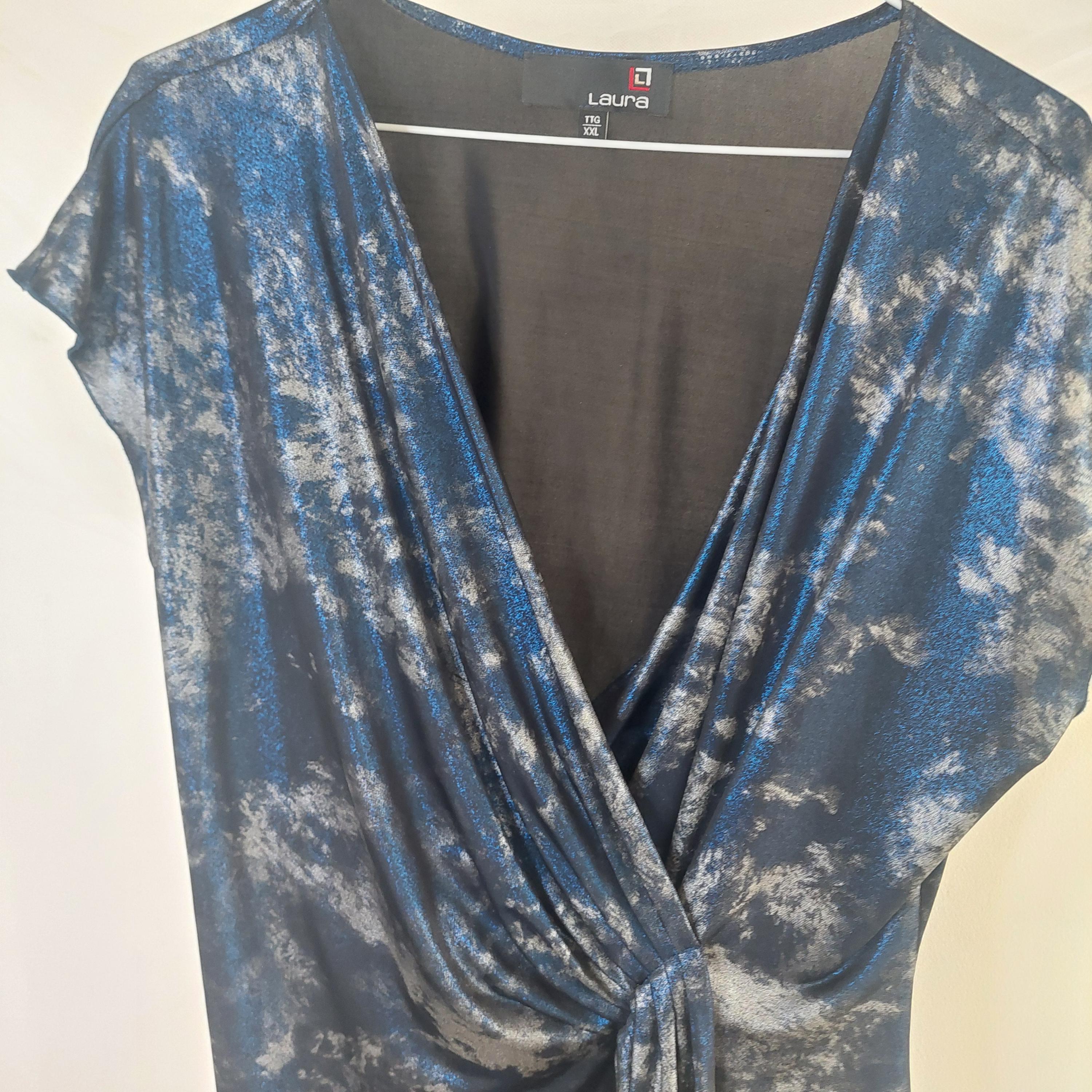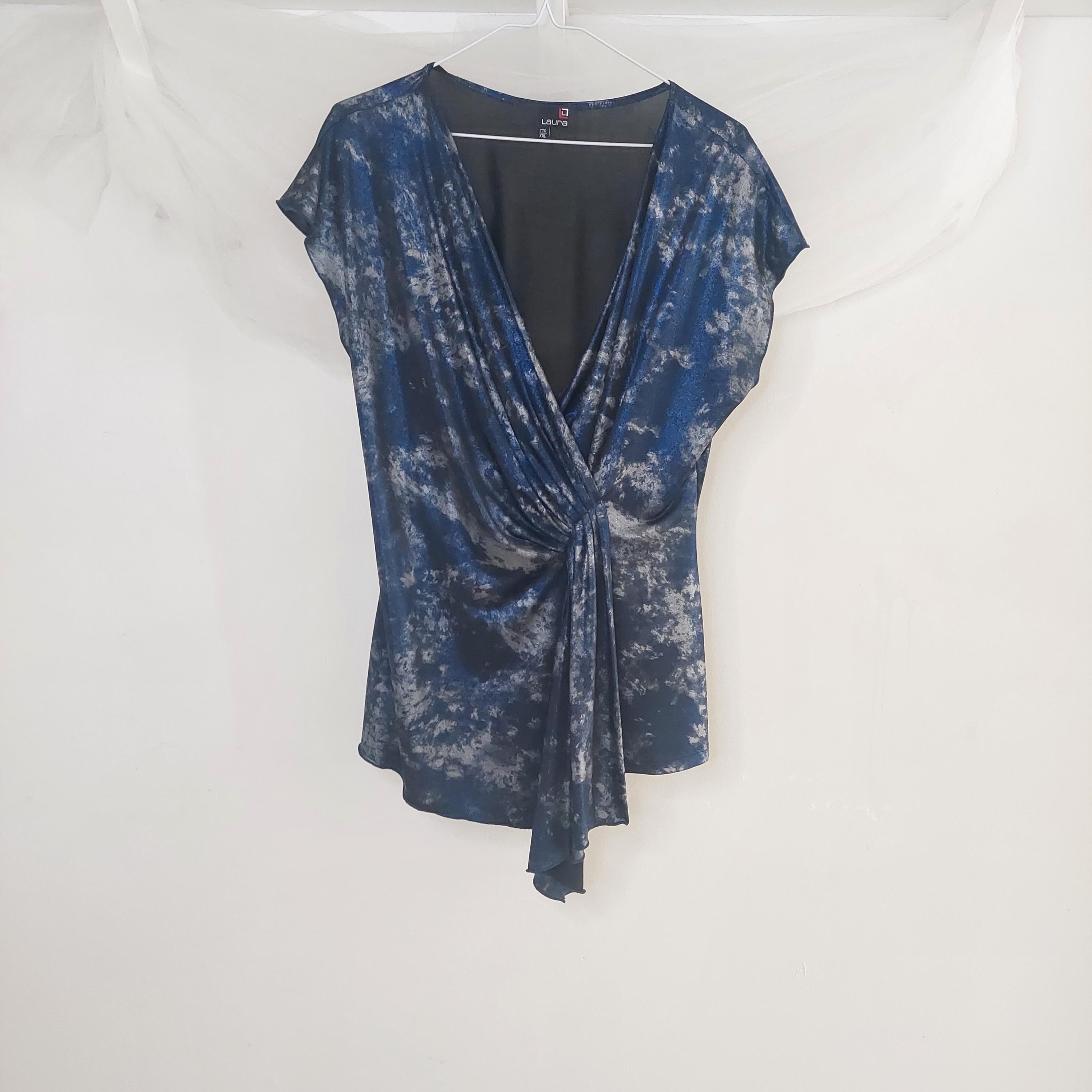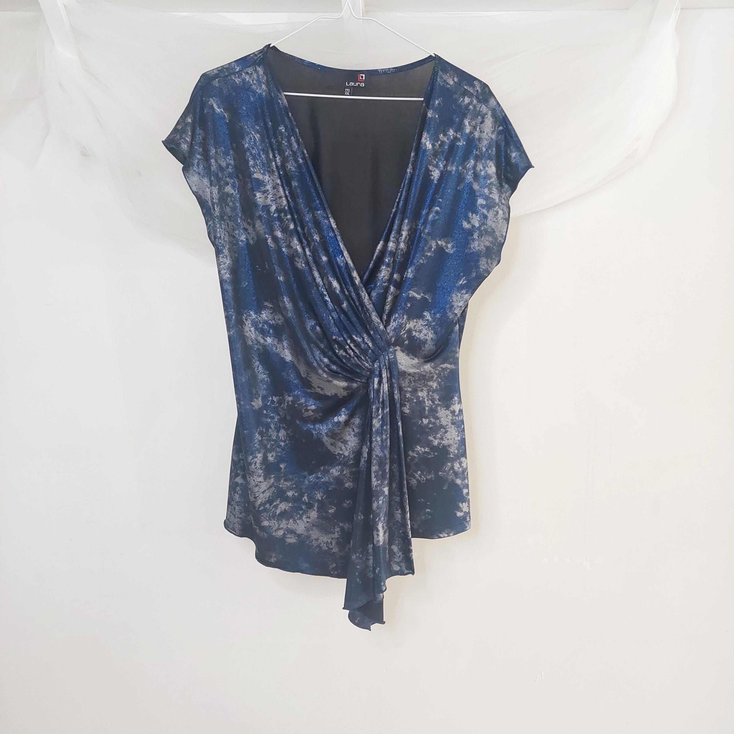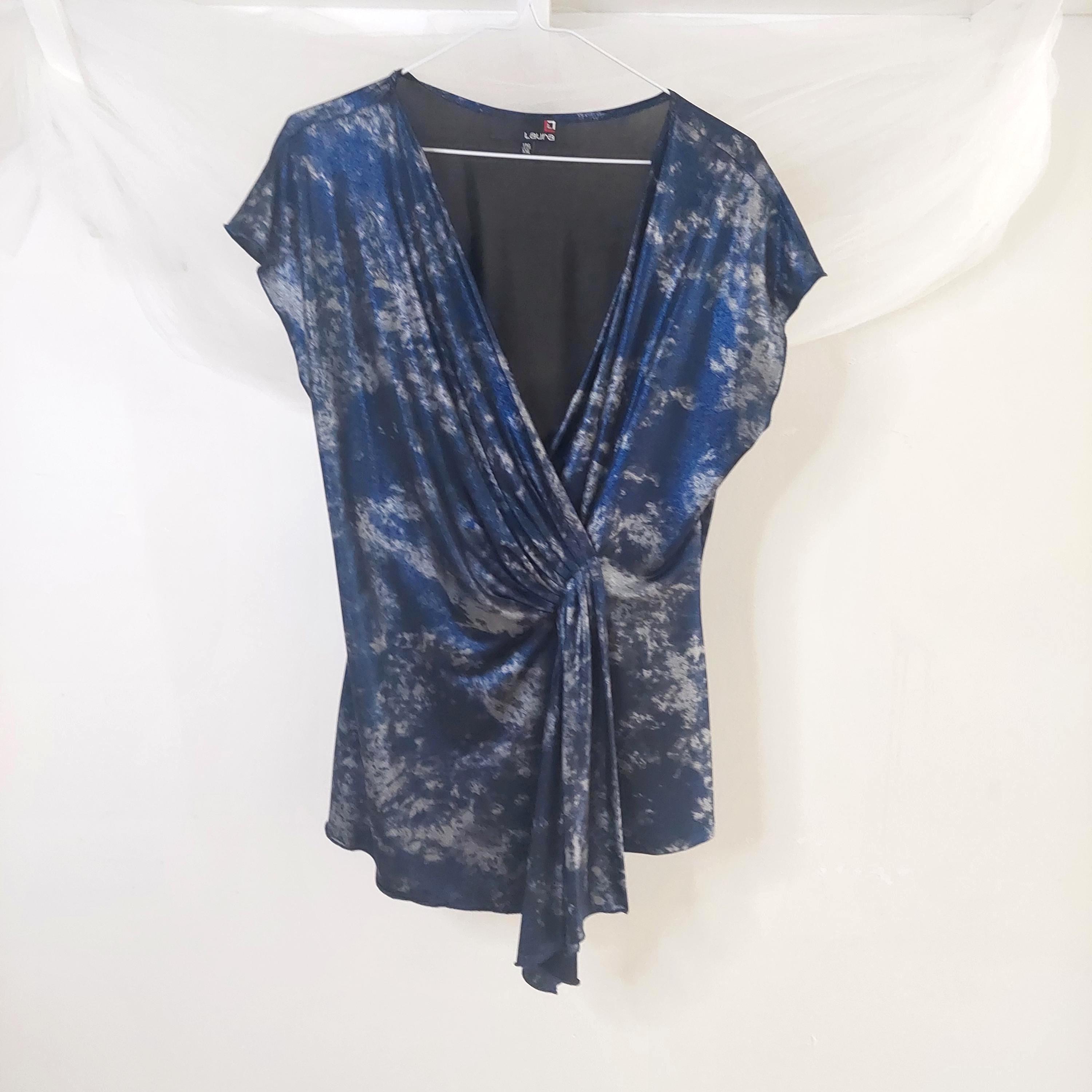 Laura Canada Abstract Twist Front Top - Blue & Grey