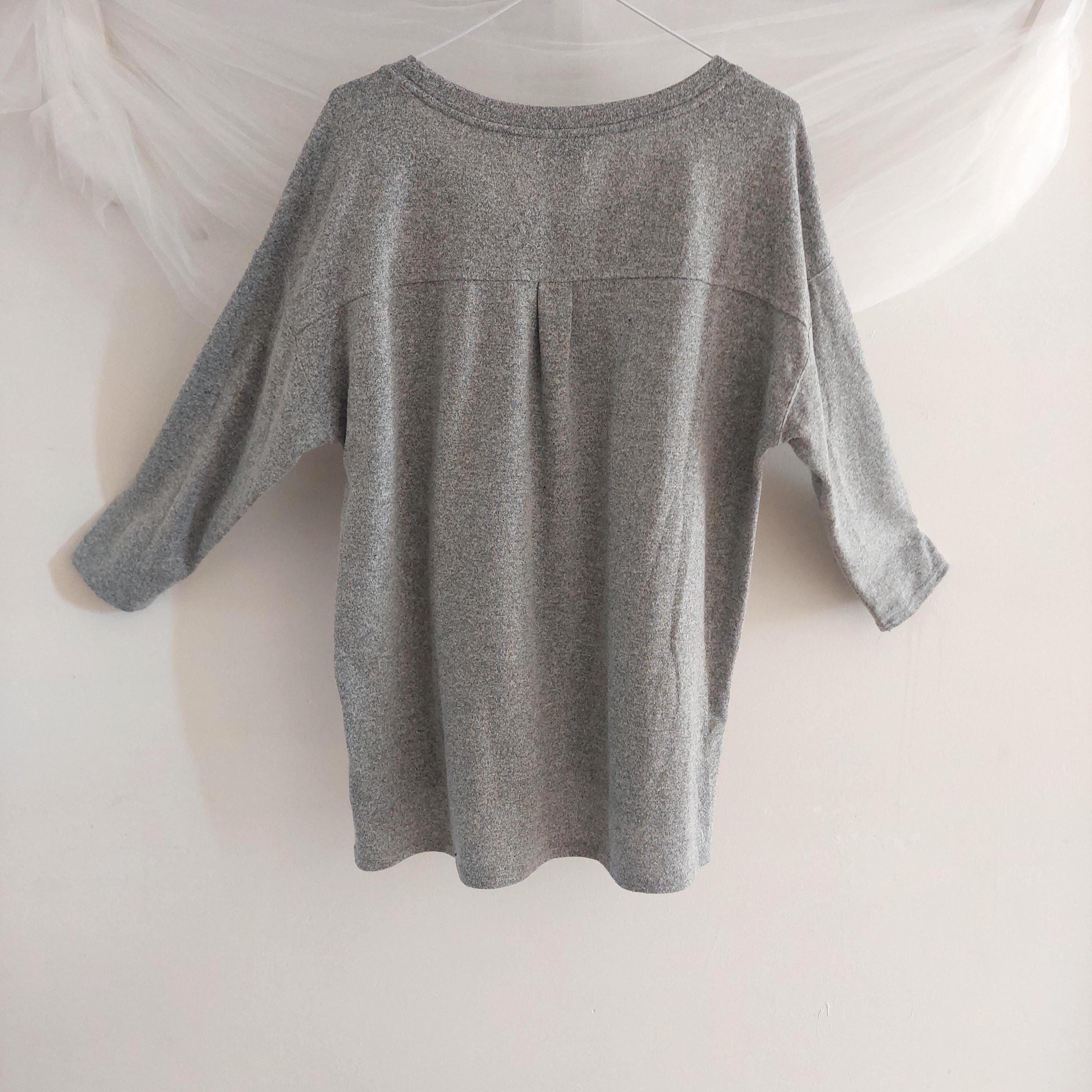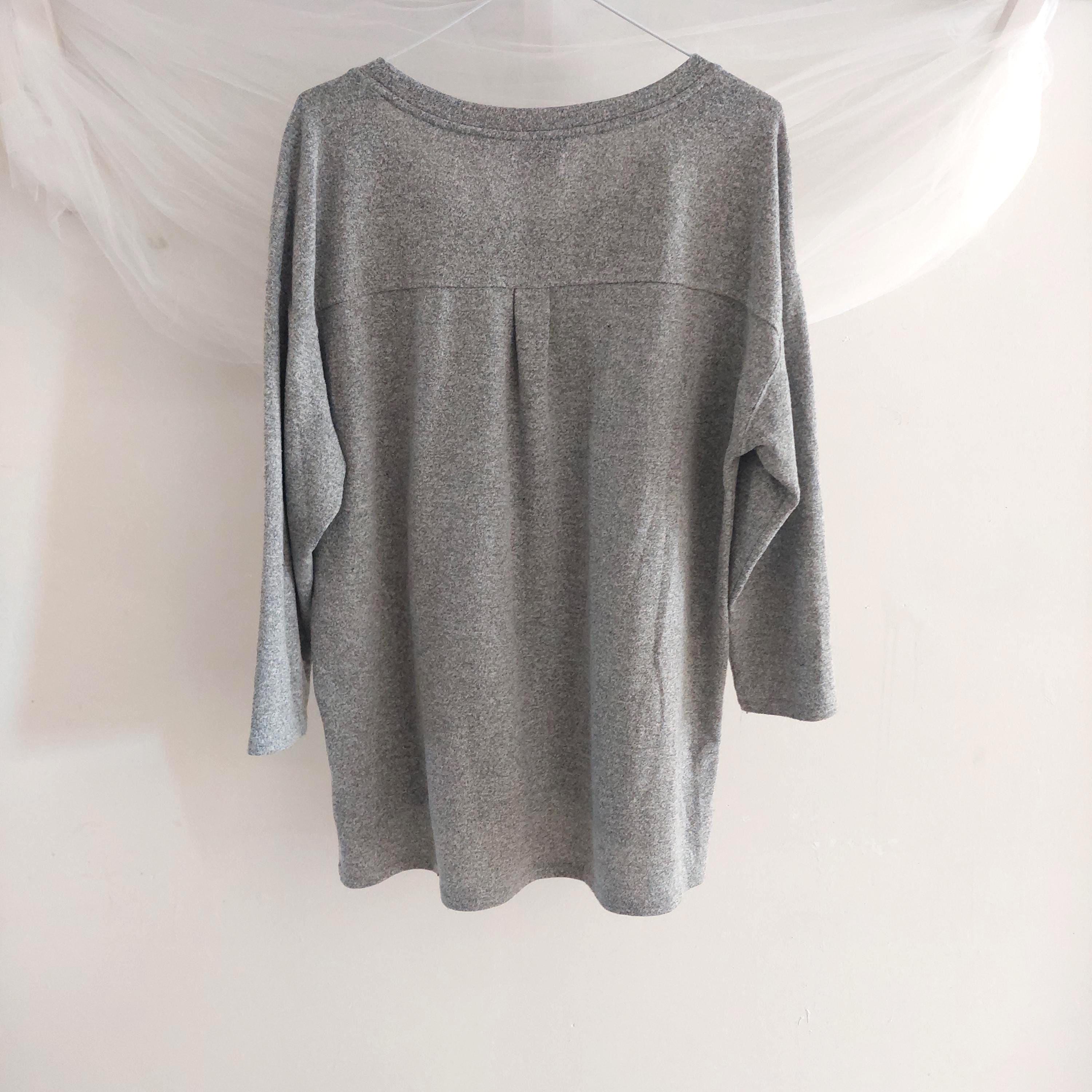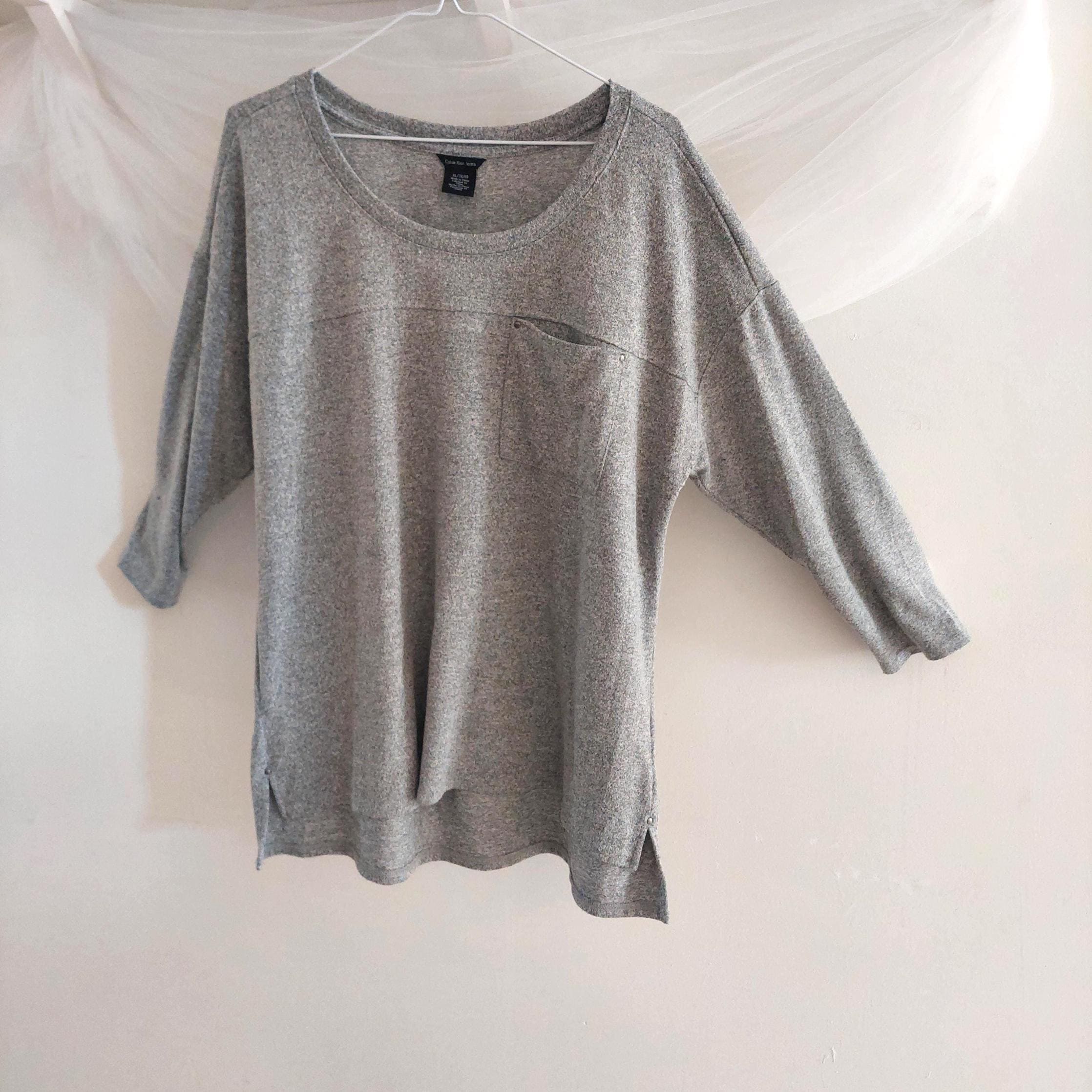 Featuring a relaxed, oversized silhouette and a modern high-low split hem, this long-sleeve top is the ultimate designer basic. The soft heathered knit and functional chest pocket offer a minimalist "Downtown Tee" aesthetic that transitions perfectly from casual office wear to cozy weekend lounging.