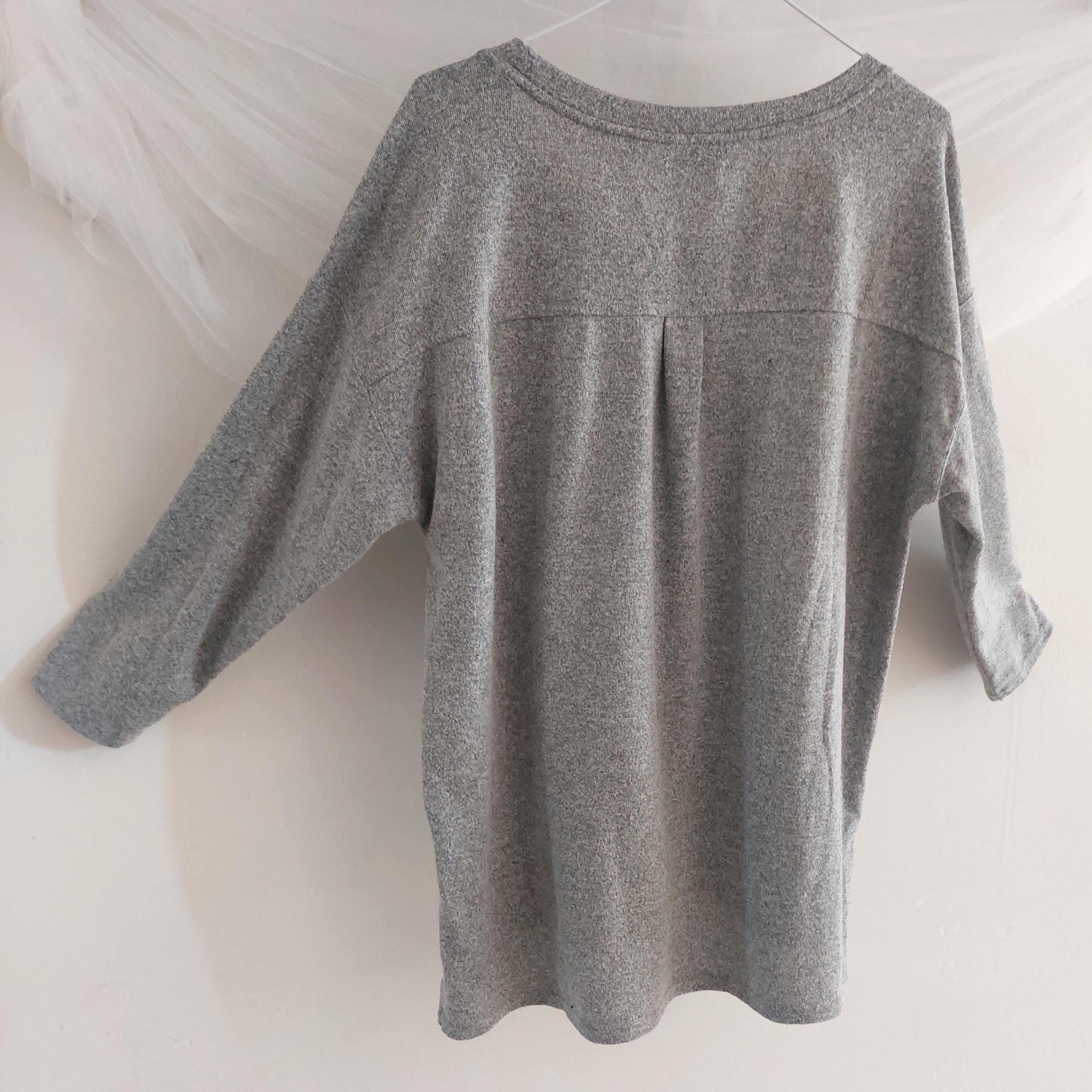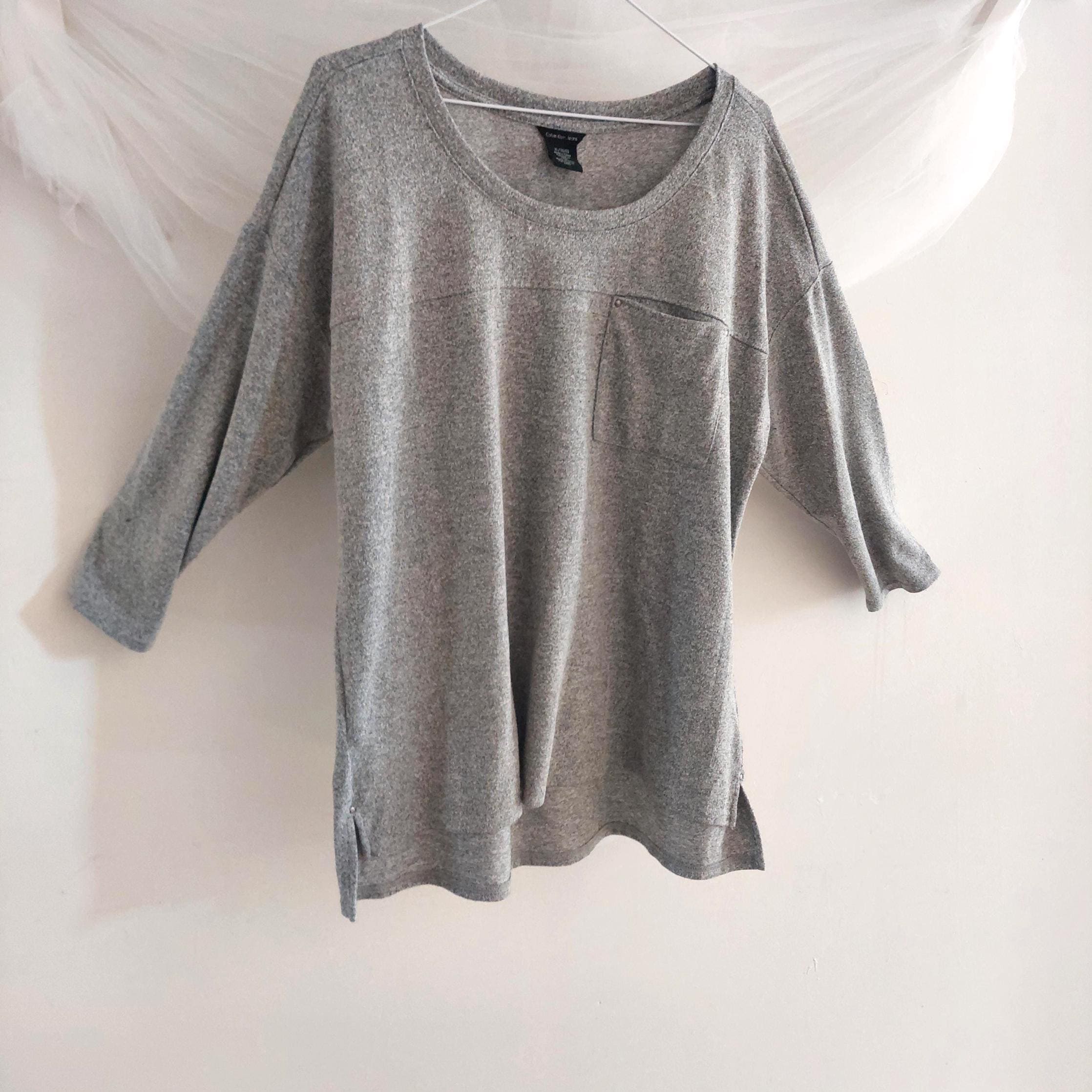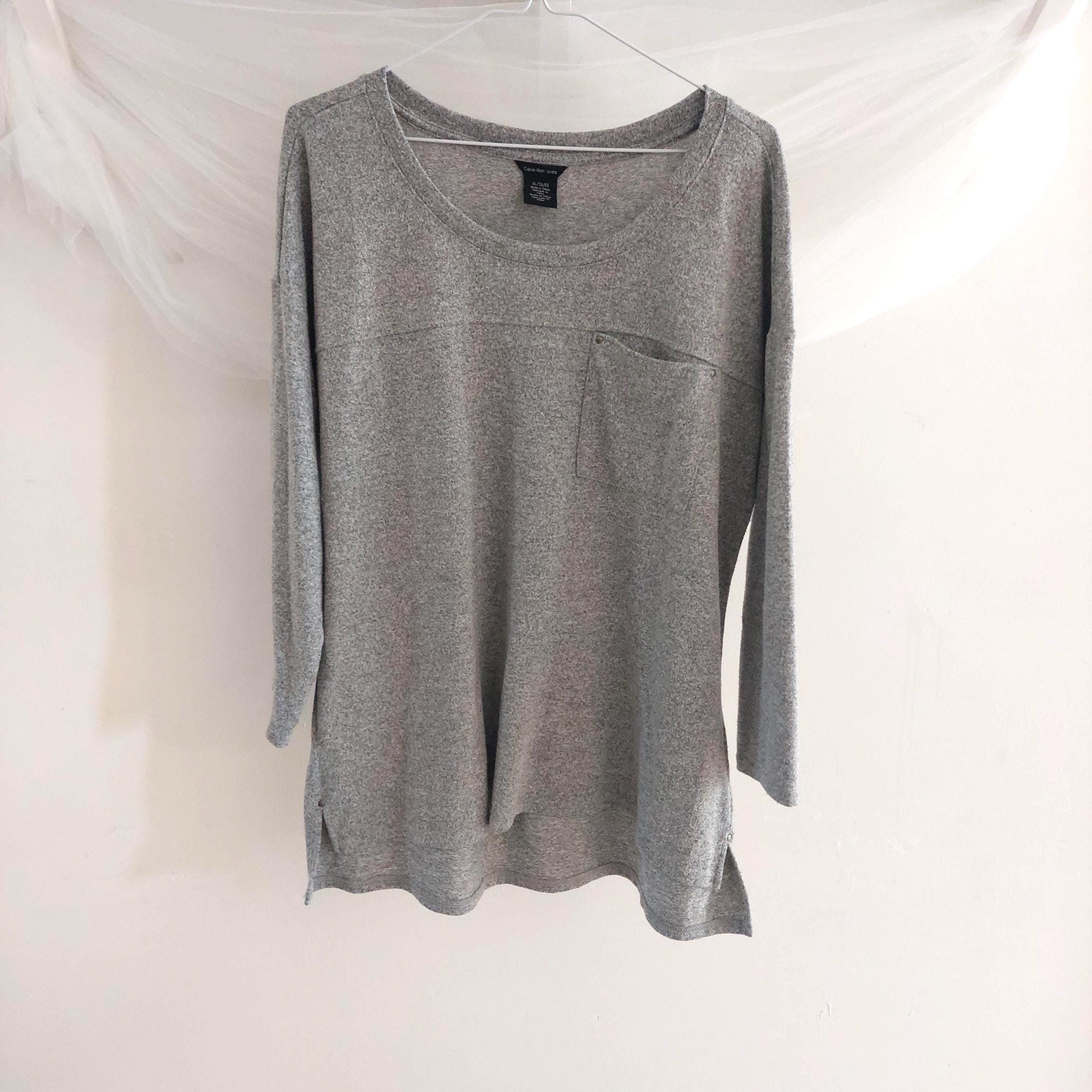Featuring a relaxed, oversized silhouette and a modern high-low split hem, this long-sleeve top is the ultimate designer basic. The soft heathered knit and functional chest pocket offer a minimalist "Downtown Tee" aesthetic that transitions perfectly from casual office wear to cozy weekend lounging.