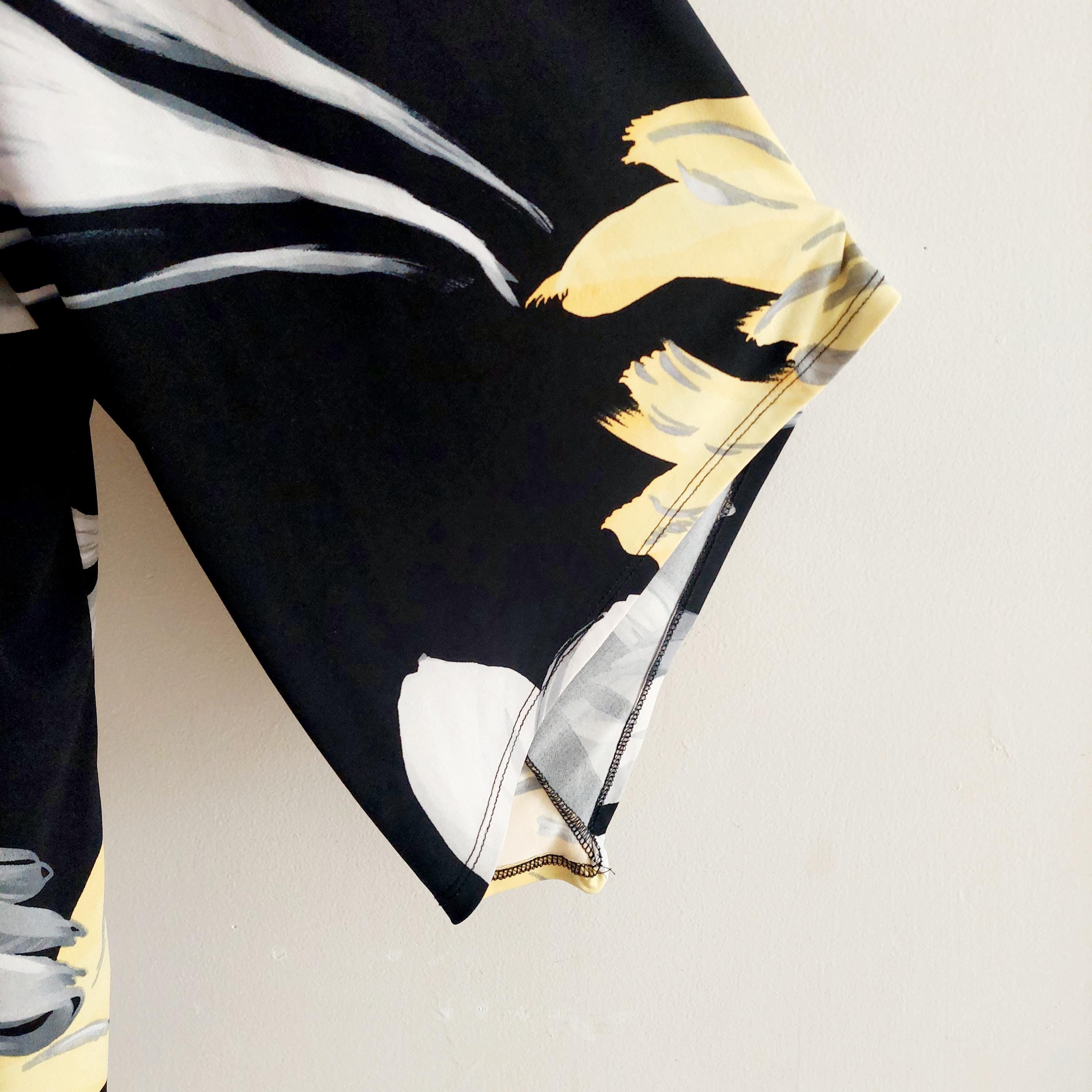 Pattern: Large-scale, high-contrast yellow and white lily print on a classic black base