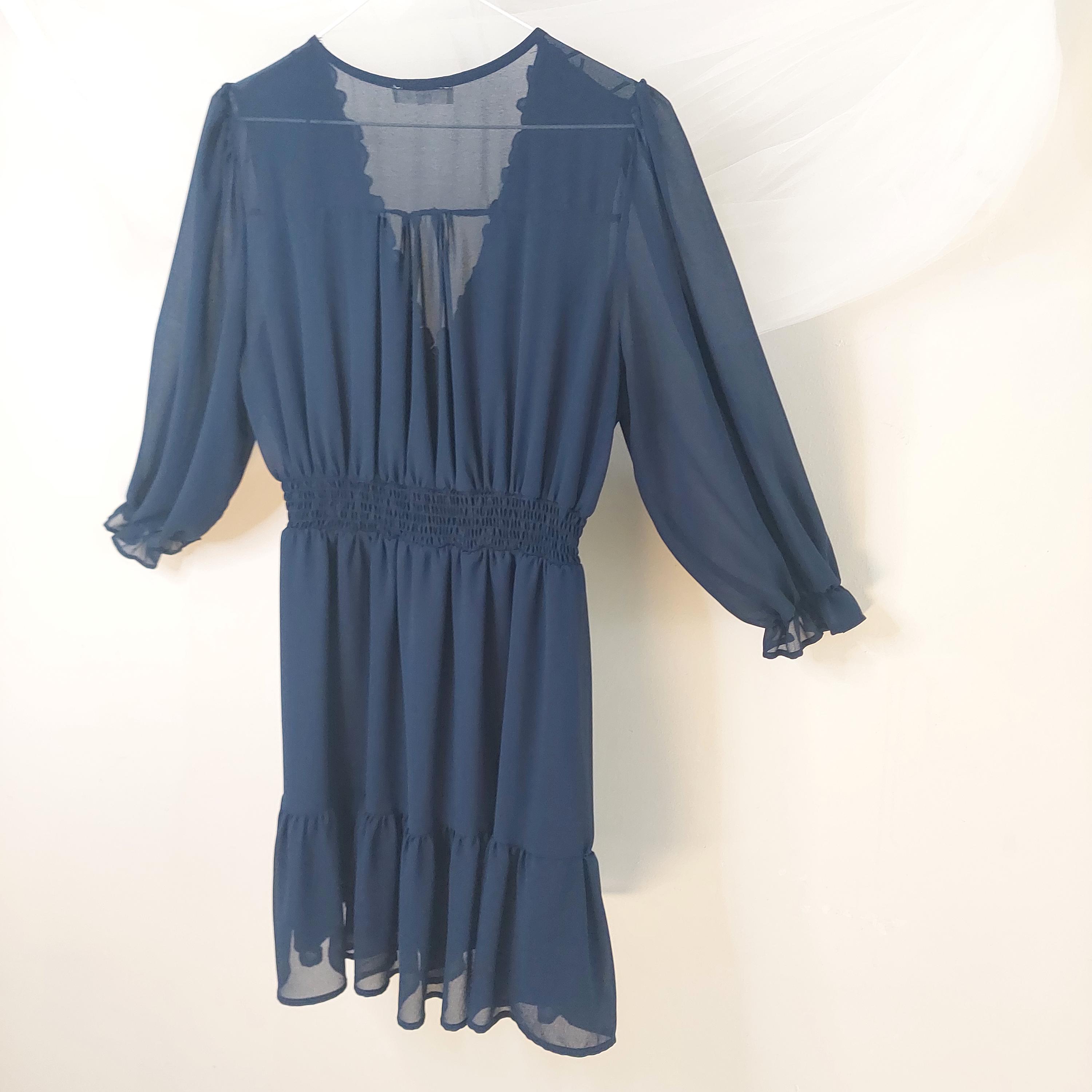 Add a touch of romantic boho charm to your wardrobe with this beautiful Ever B navy blue chiffon dress.