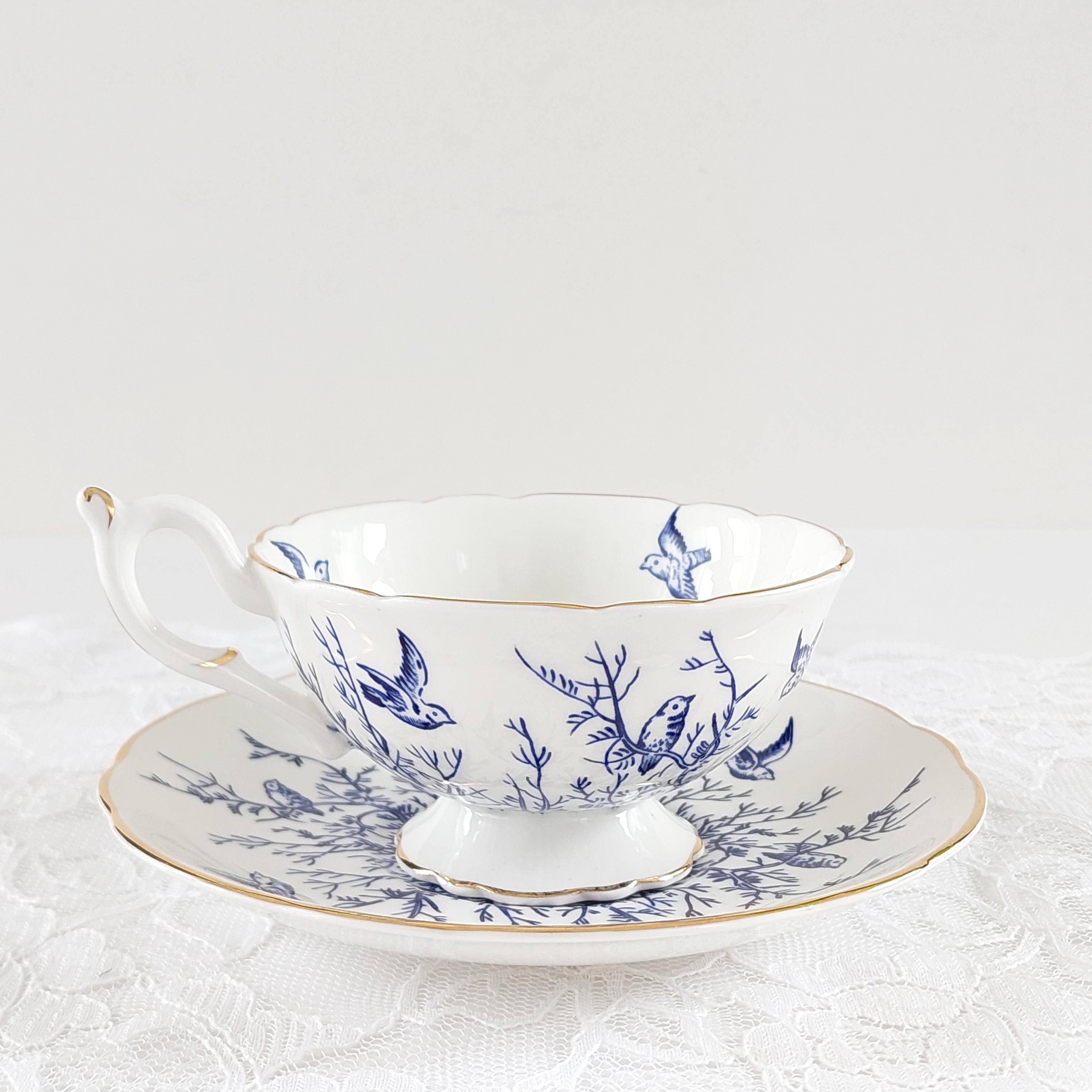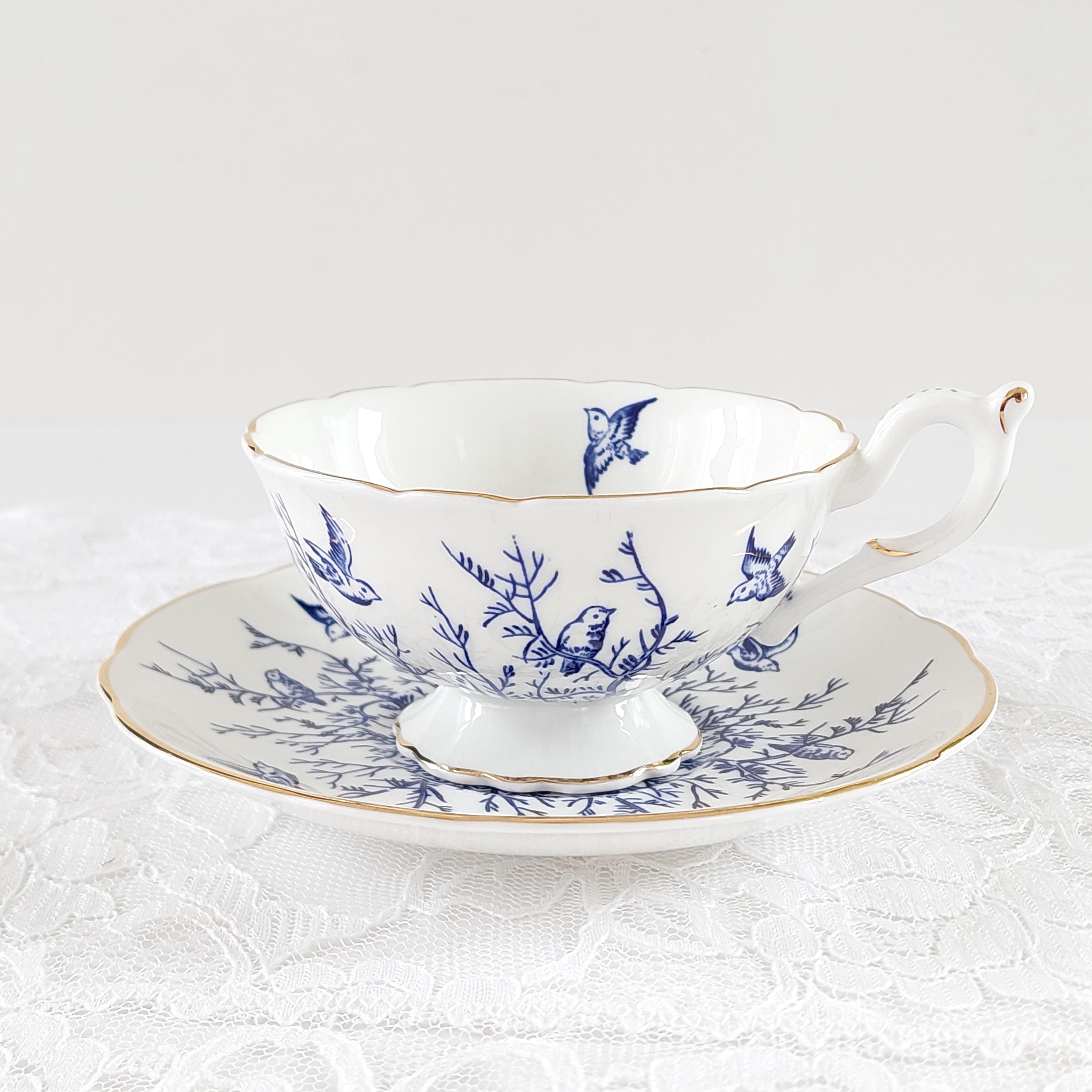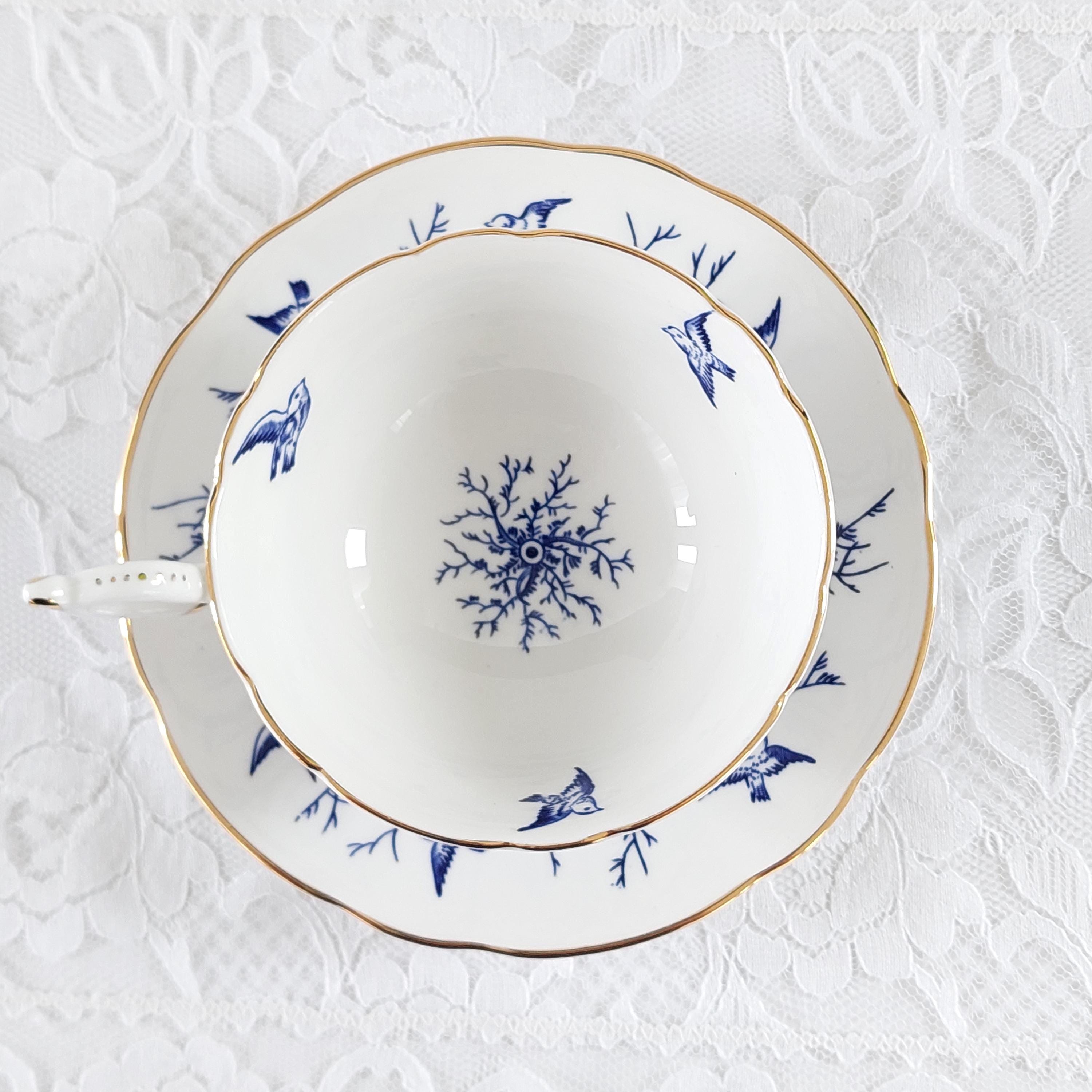 Vintage Coalport Blue Birds and Twigs Teacup and Saucer (Pattern 8365)