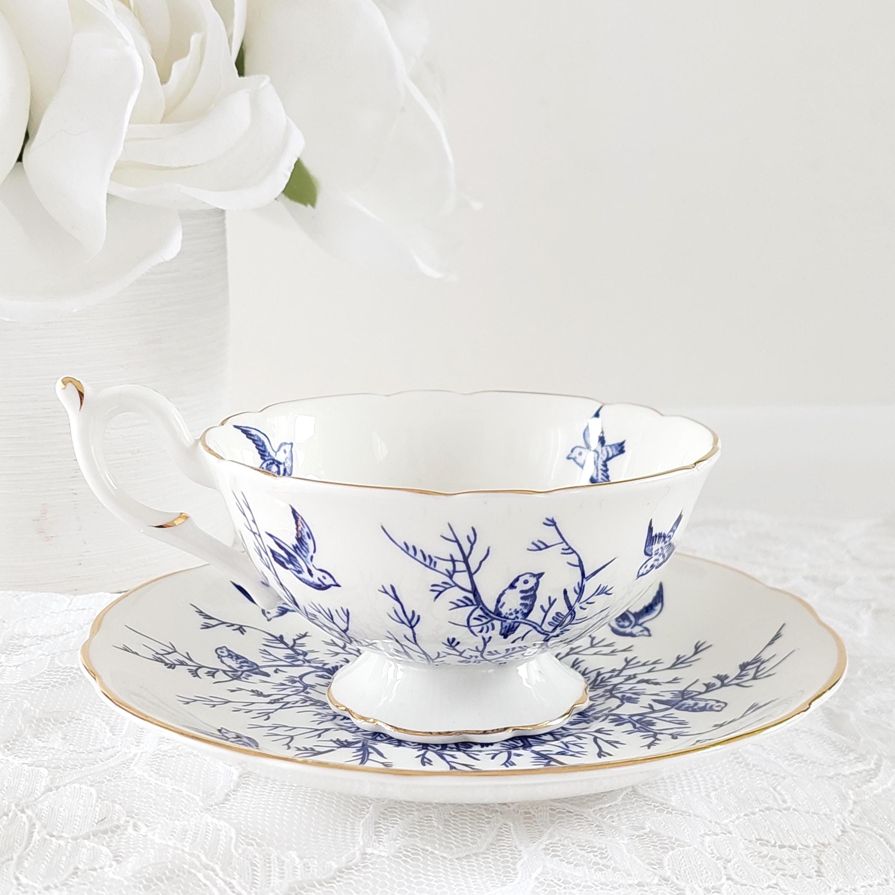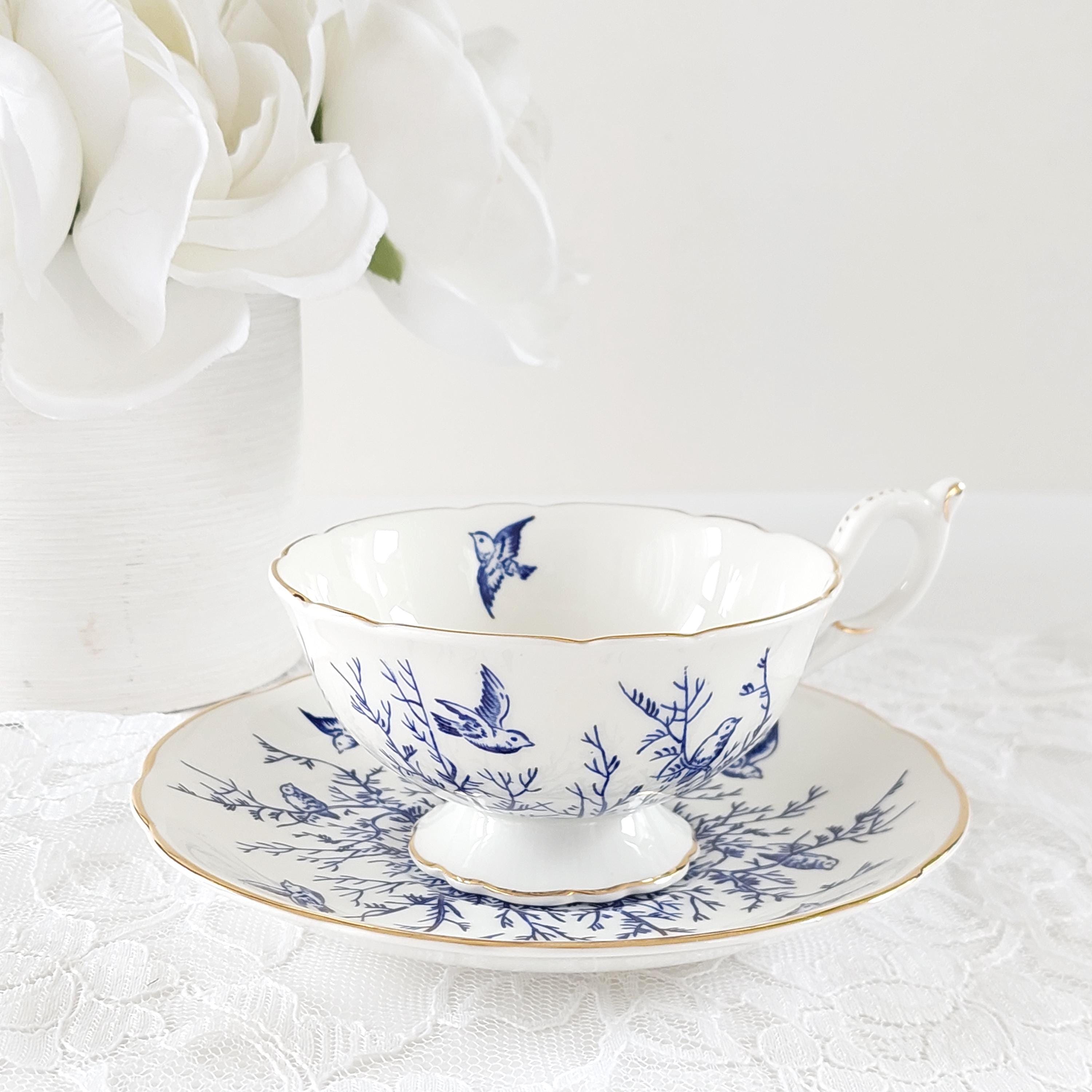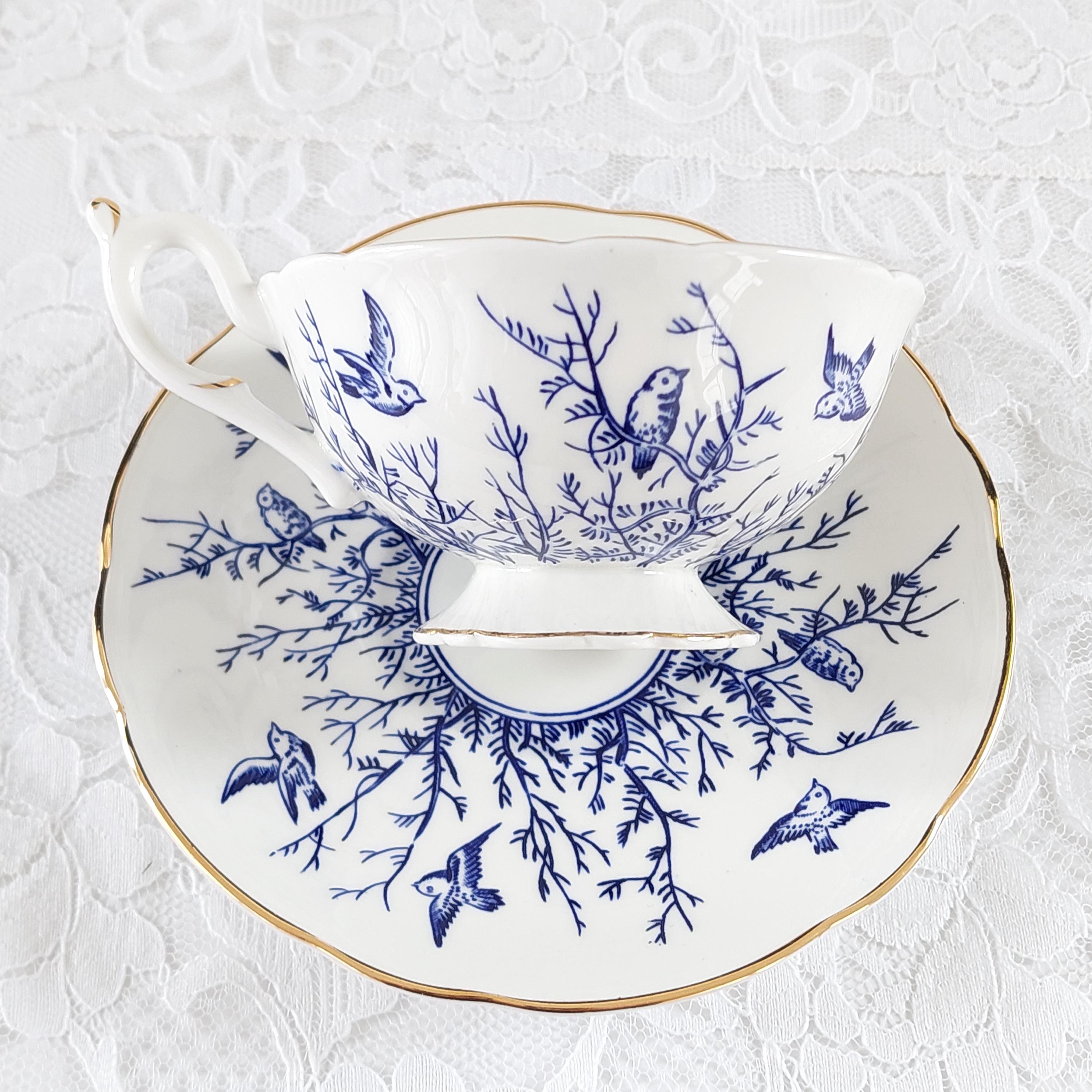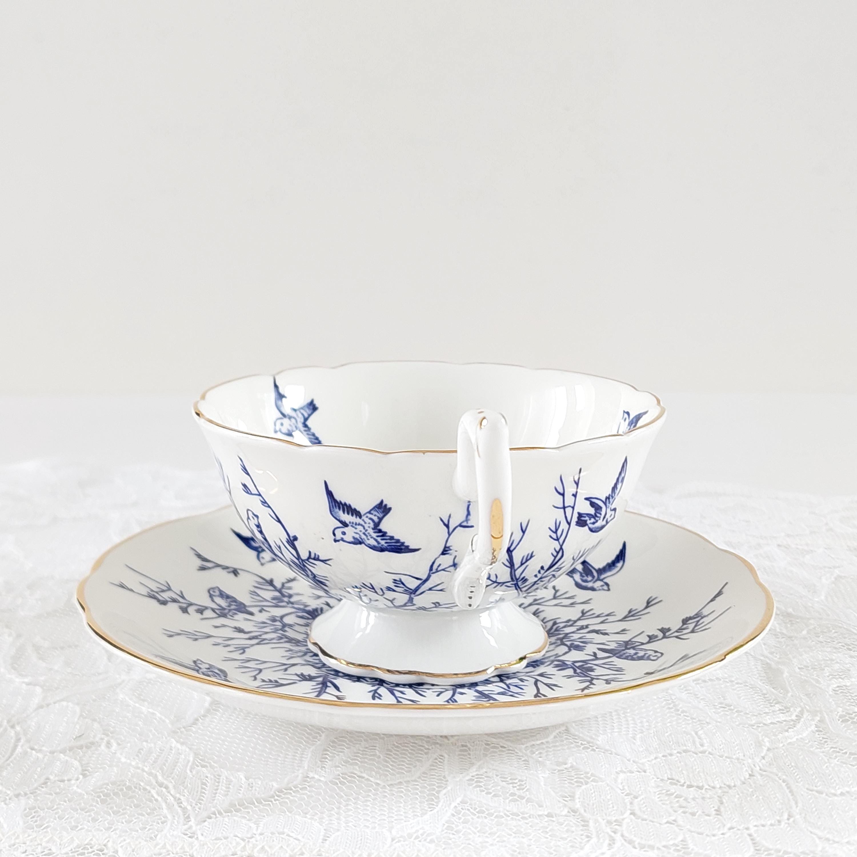 Vintage Coalport Blue Birds and Twigs Teacup and Saucer (Pattern 8365)
