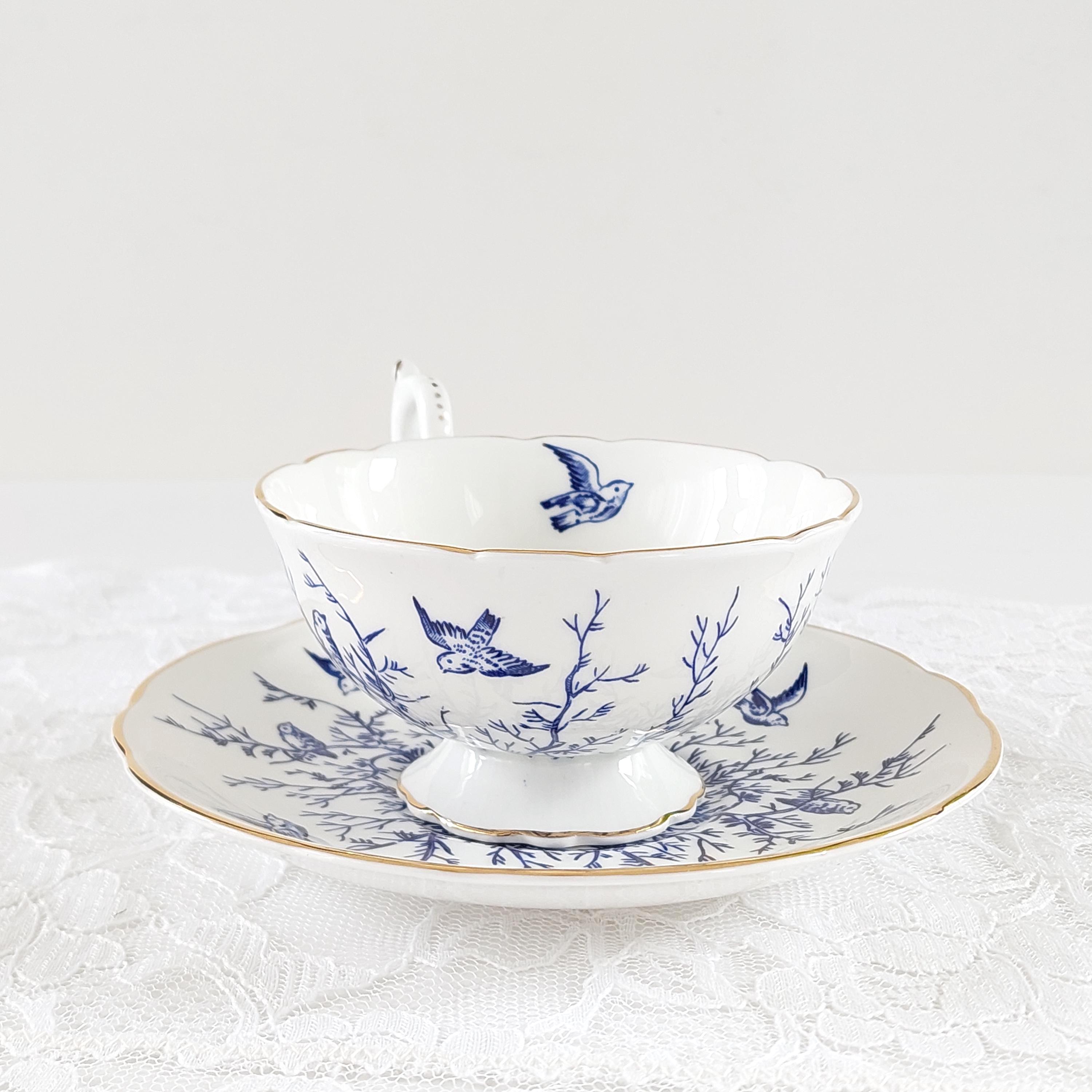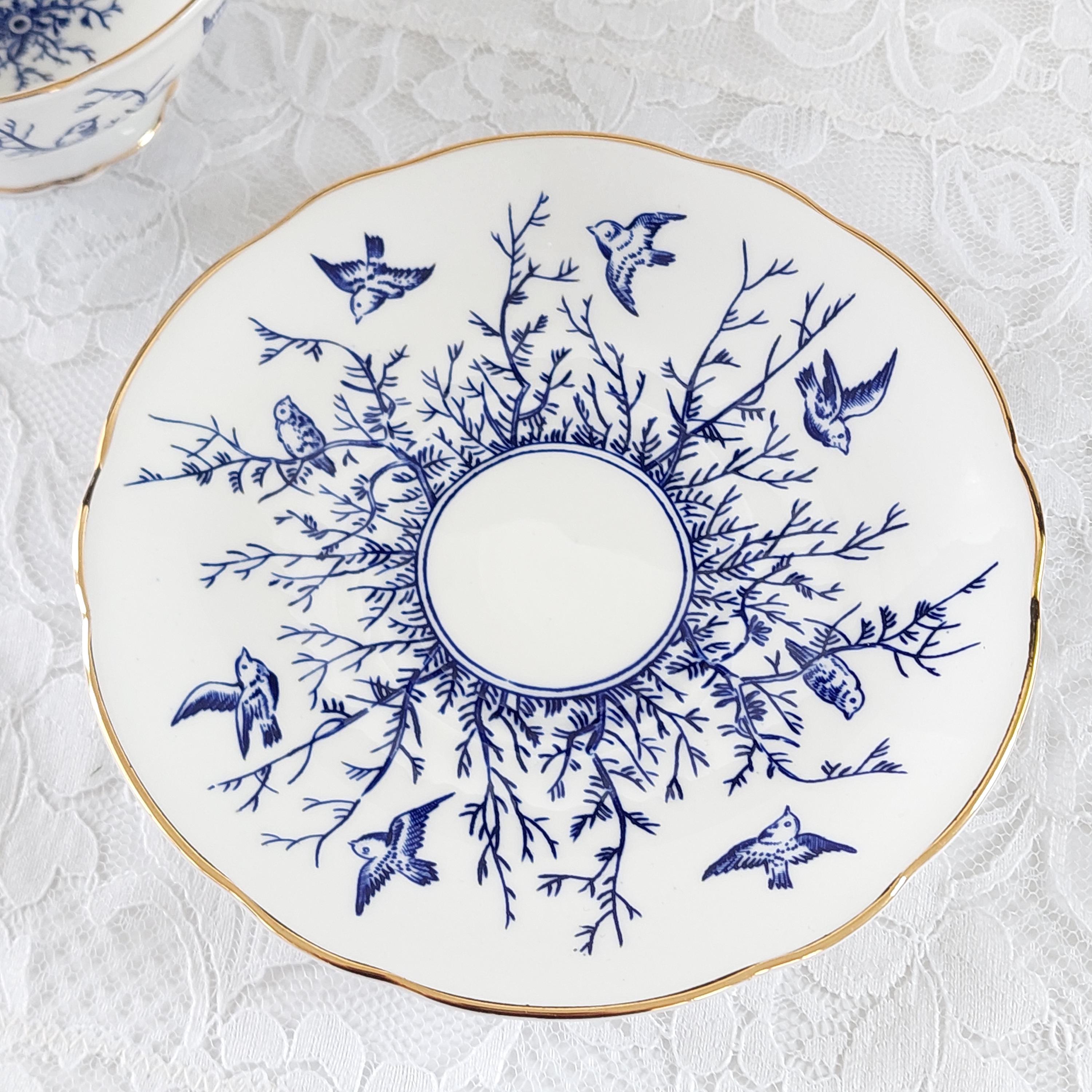 Perfect for blue and white china collectors, afternoon tea enthusiasts, or as a thoughtful bird lover gift. This classic mid-century English porcelain set displays beautifully on a china cabinet or tea tray.