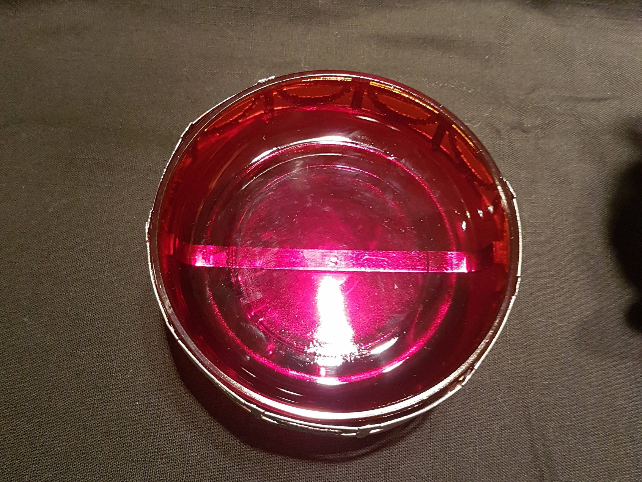 Beautiful ruby red glass in great condition, no chips or cracks in the glass.