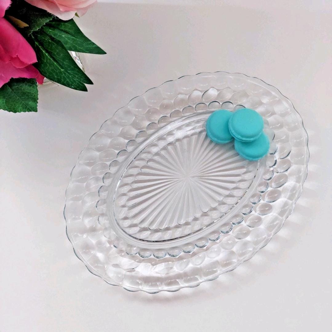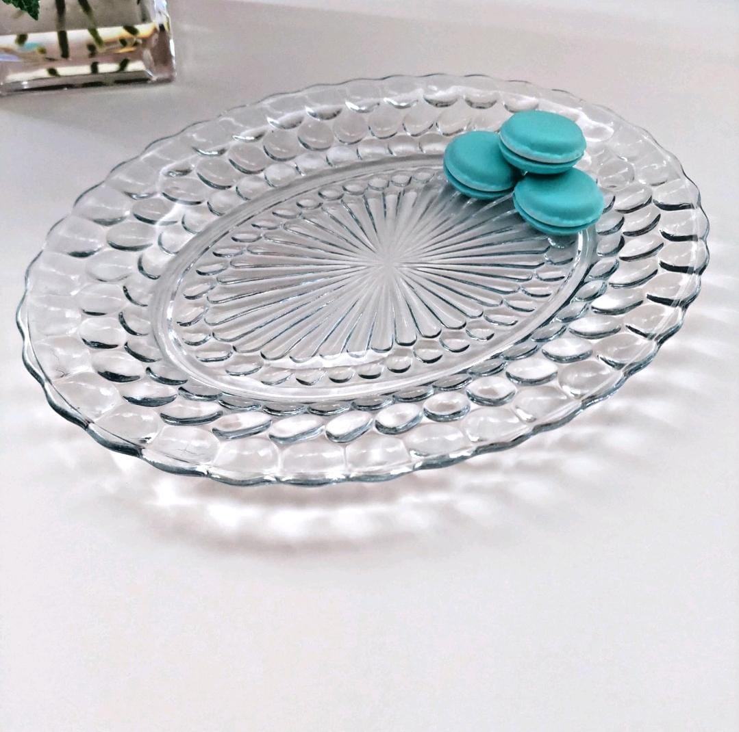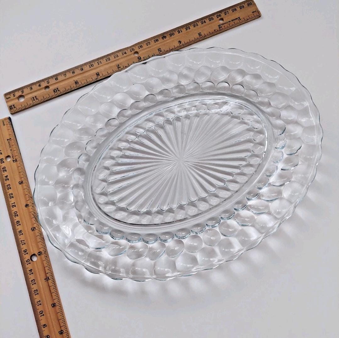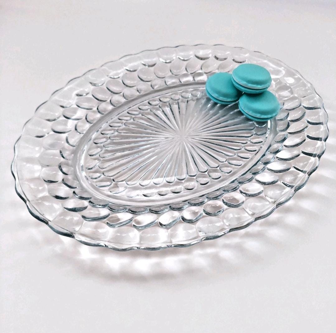 Lovely sapphire blue depression glass platter made by Anchor Hocking in the bubble glass pattern. Circa 1940's