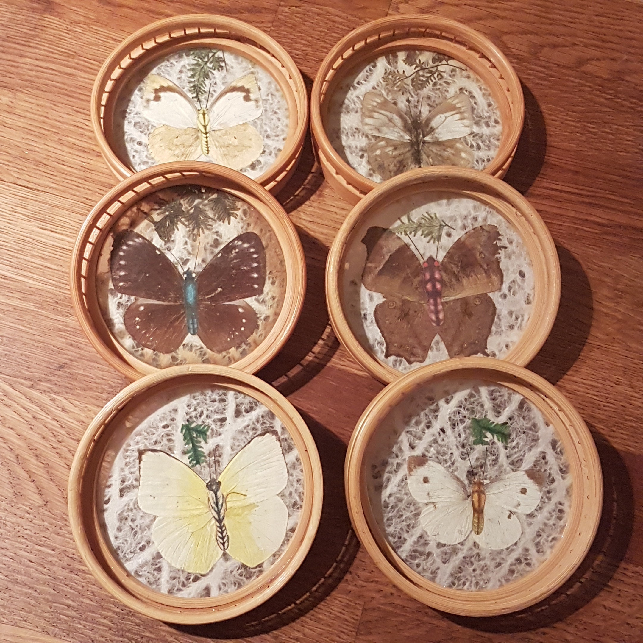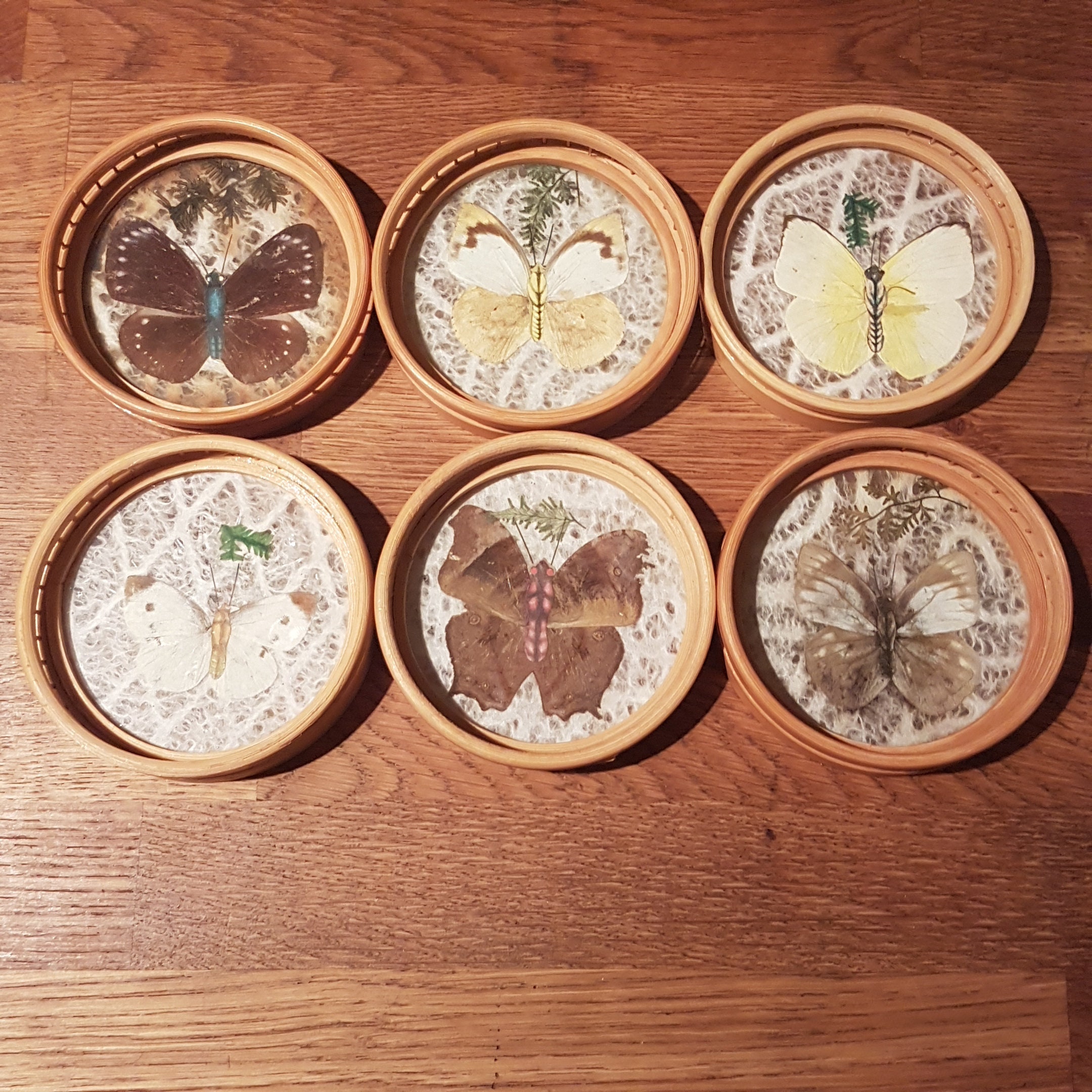 Set of 6 Vintage Bamboo Butterfly Coasters
