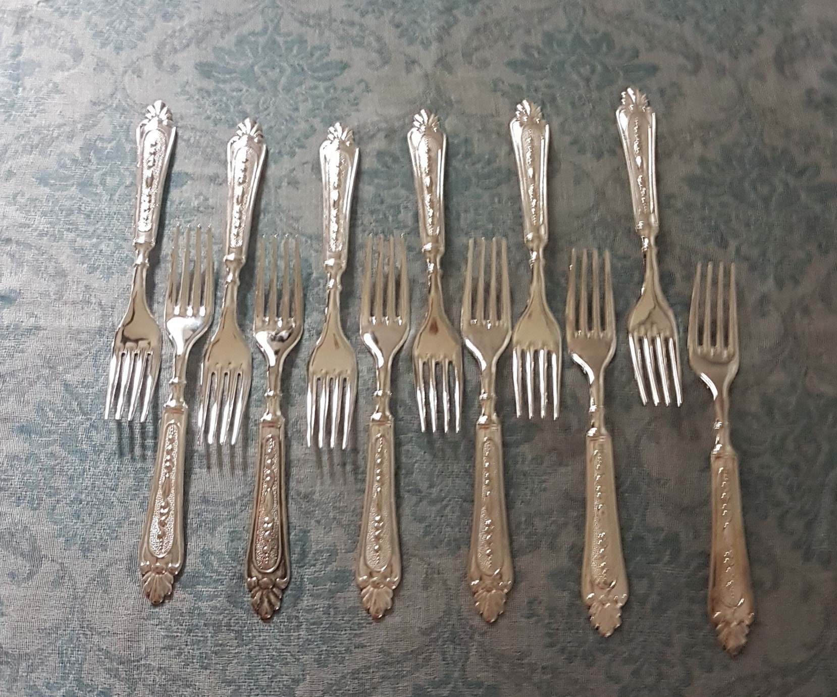 Gorgeous service for 12! Lbi2 pattern by LBL Italy, patterned with fan at the end of the textured handles.