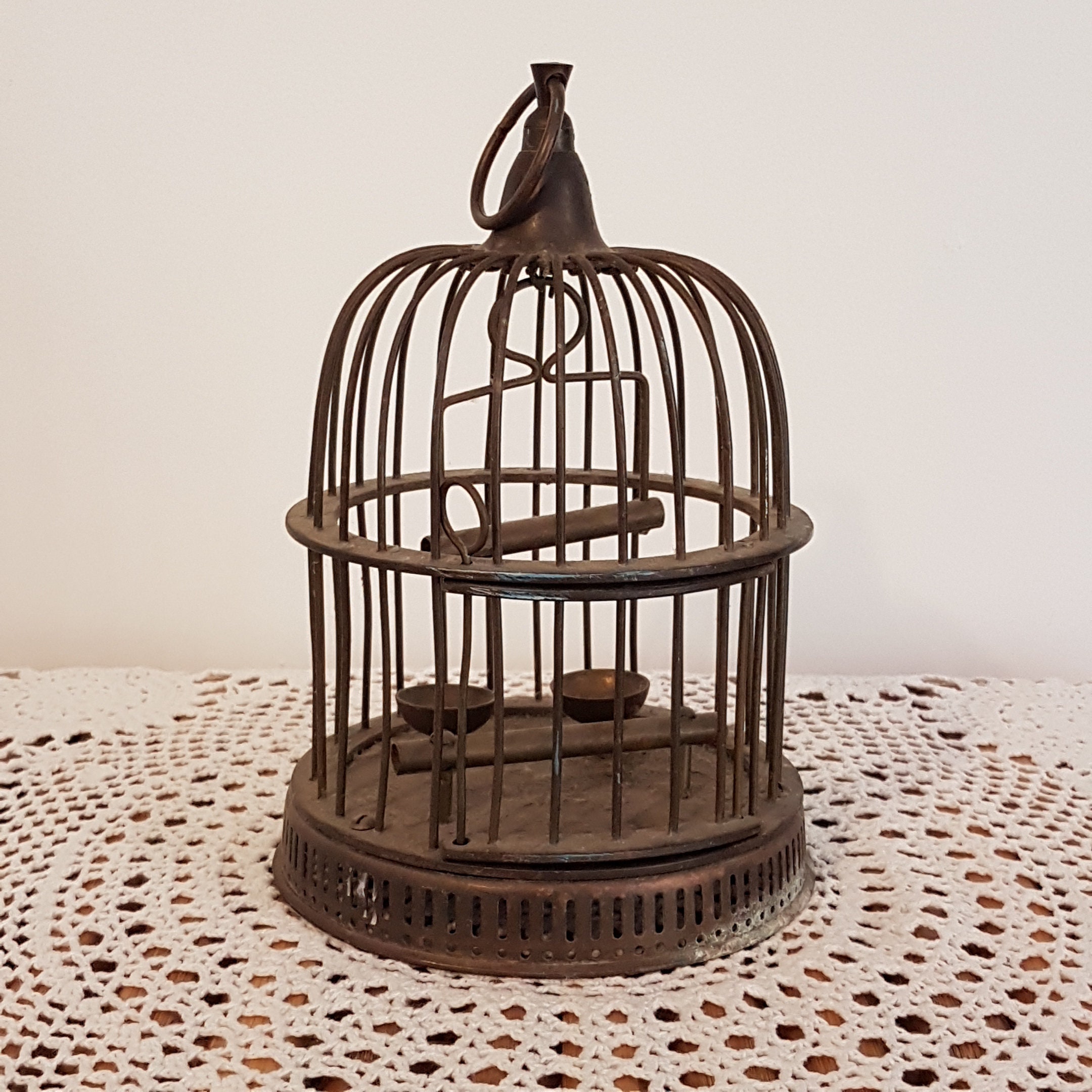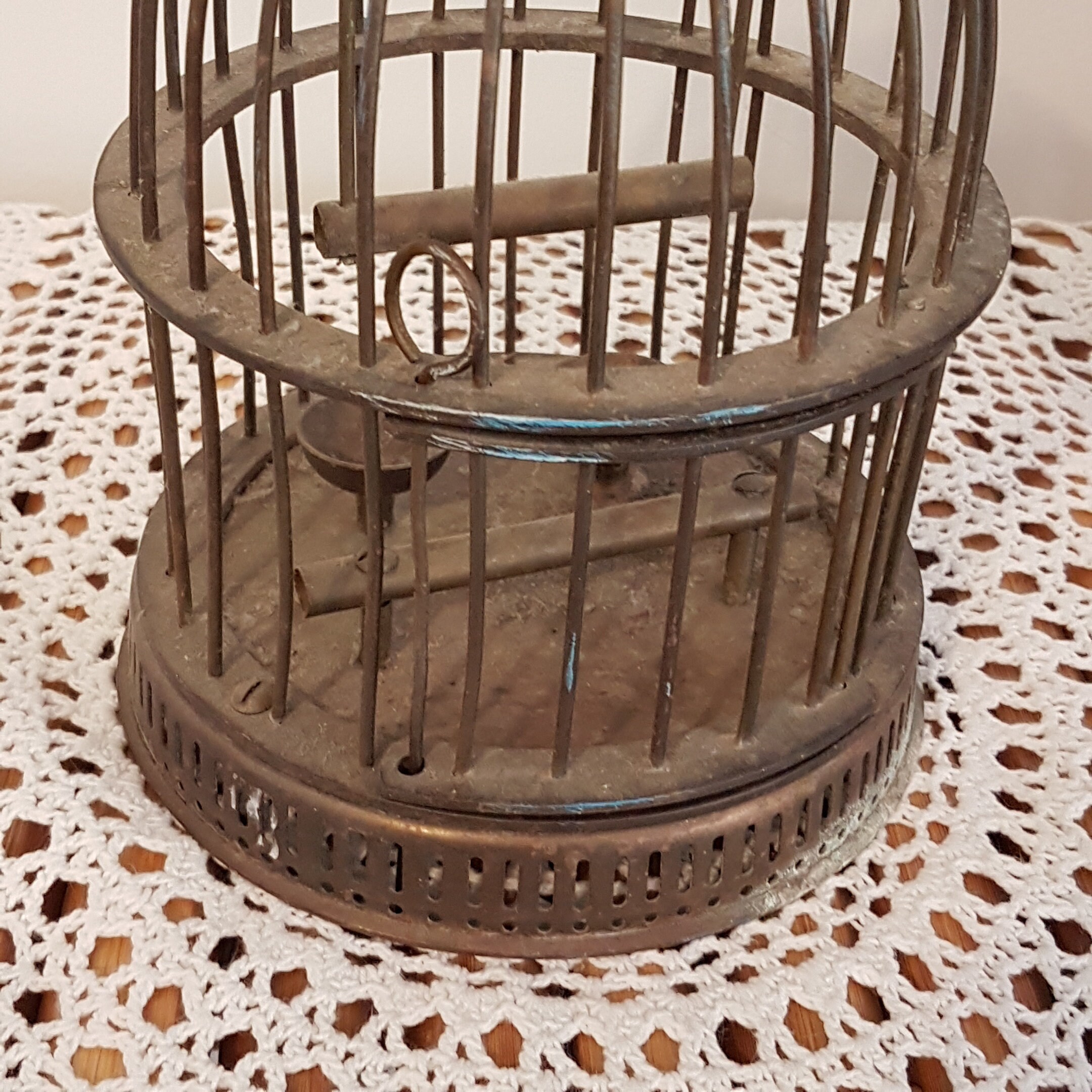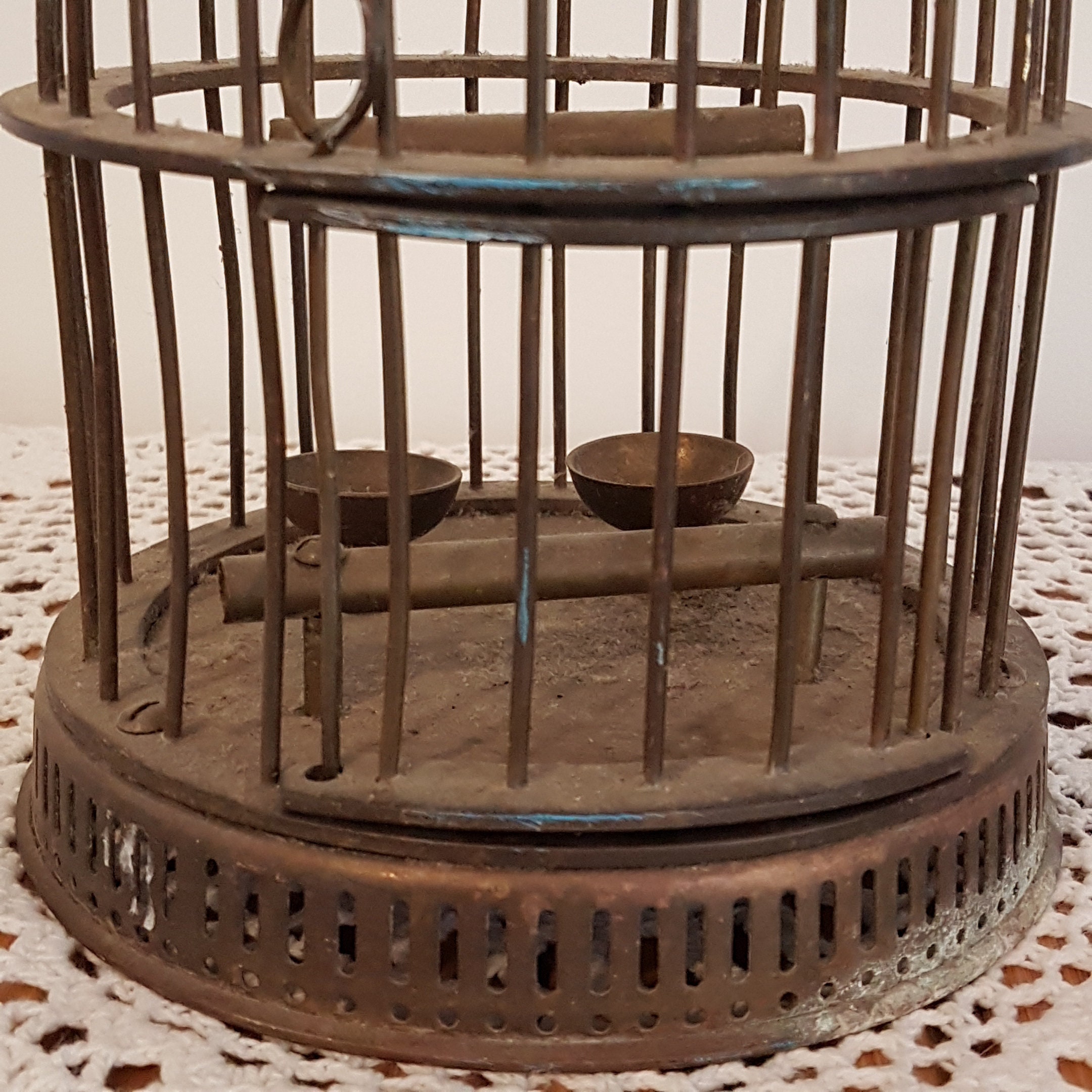 Original label on bottom of birdcage "Solid Brass Handmade, Made in India"