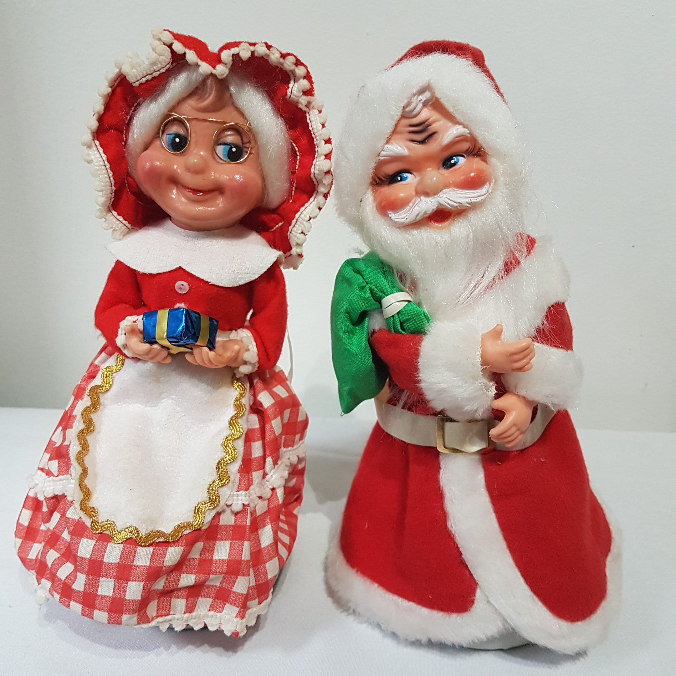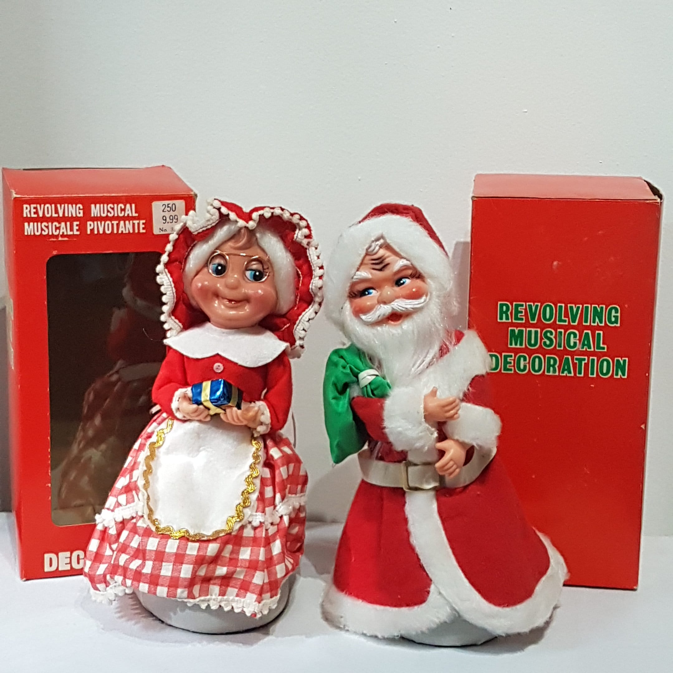 Rotating Mr & Mrs Claus, in original boxes. Figurines rotate and both play 'Jingle Bells'