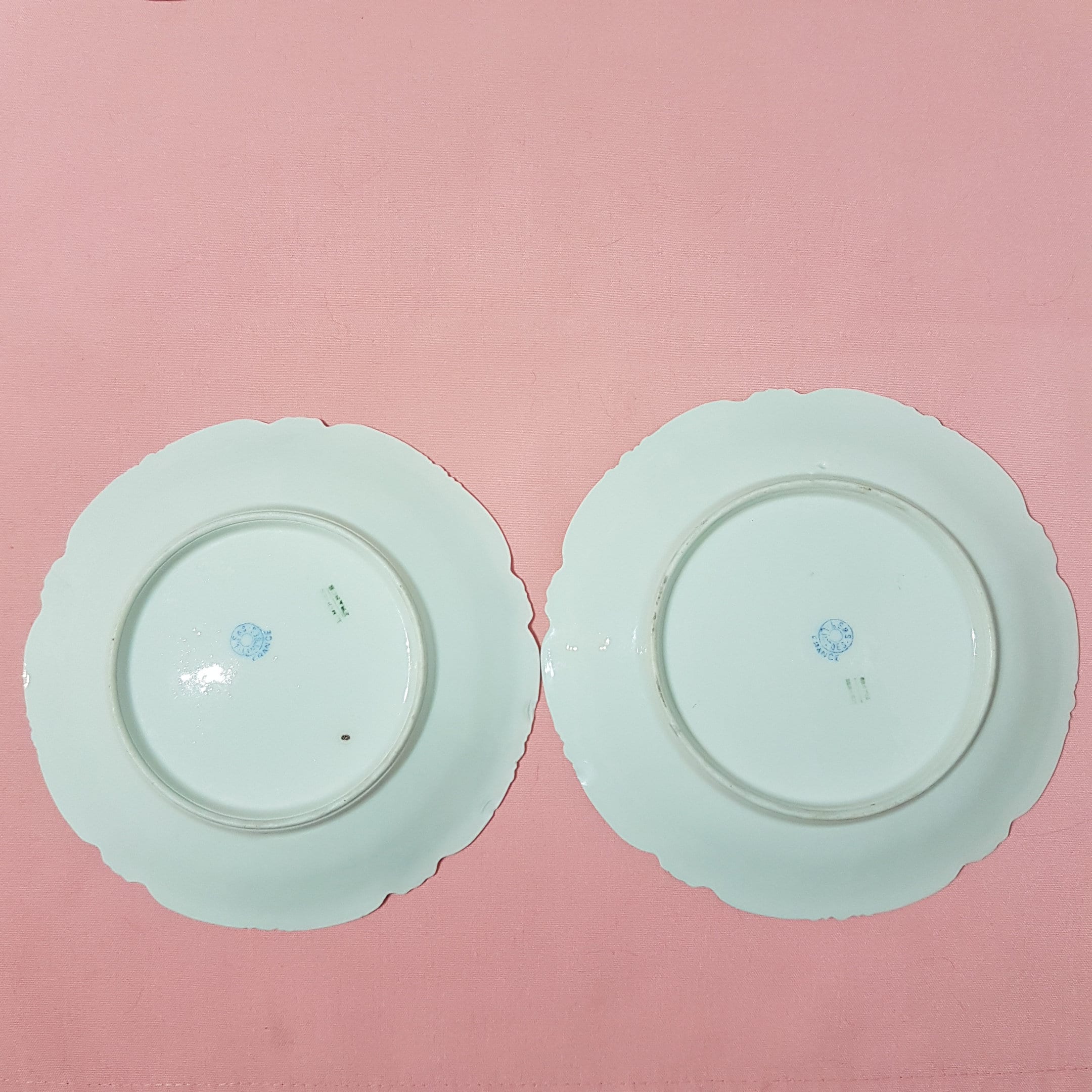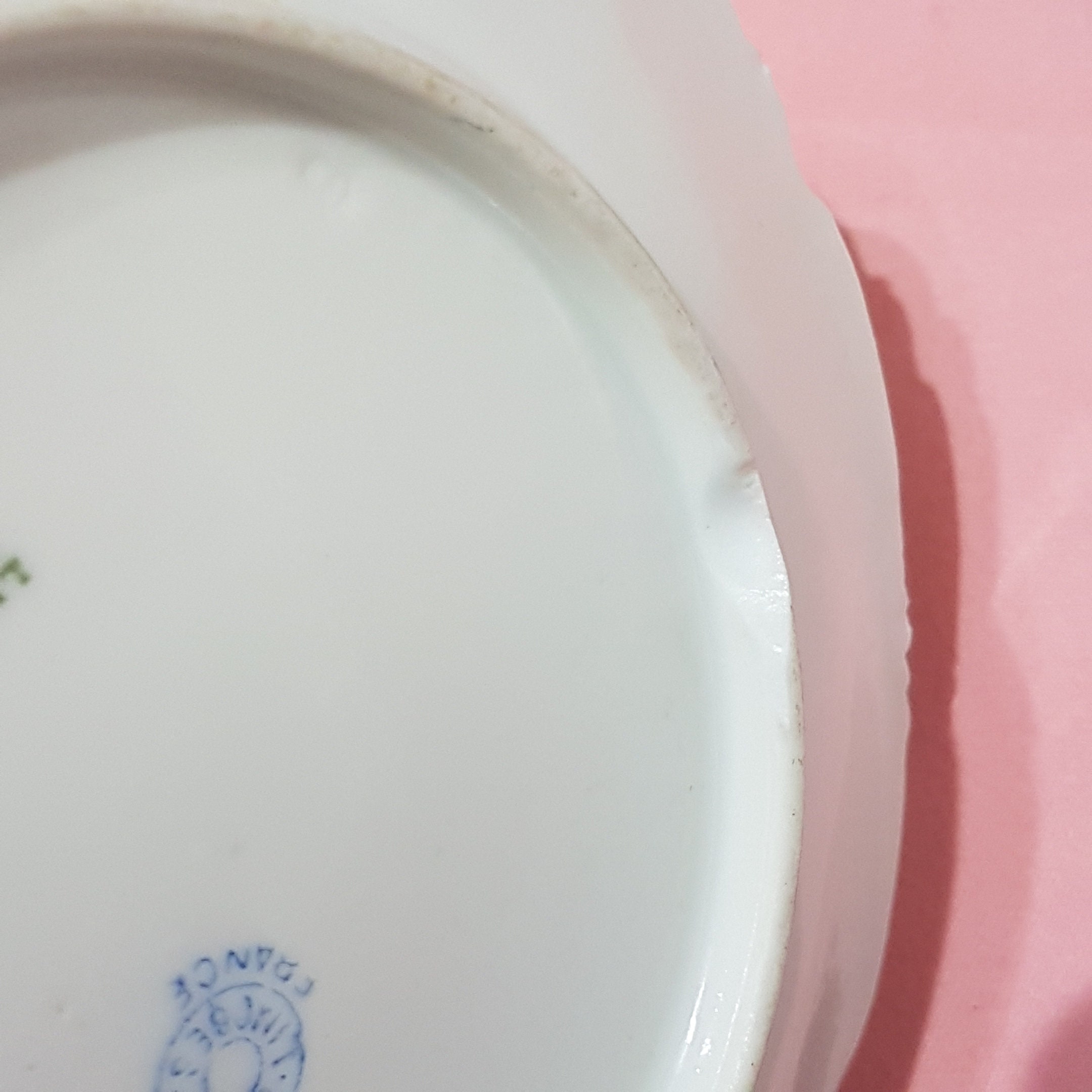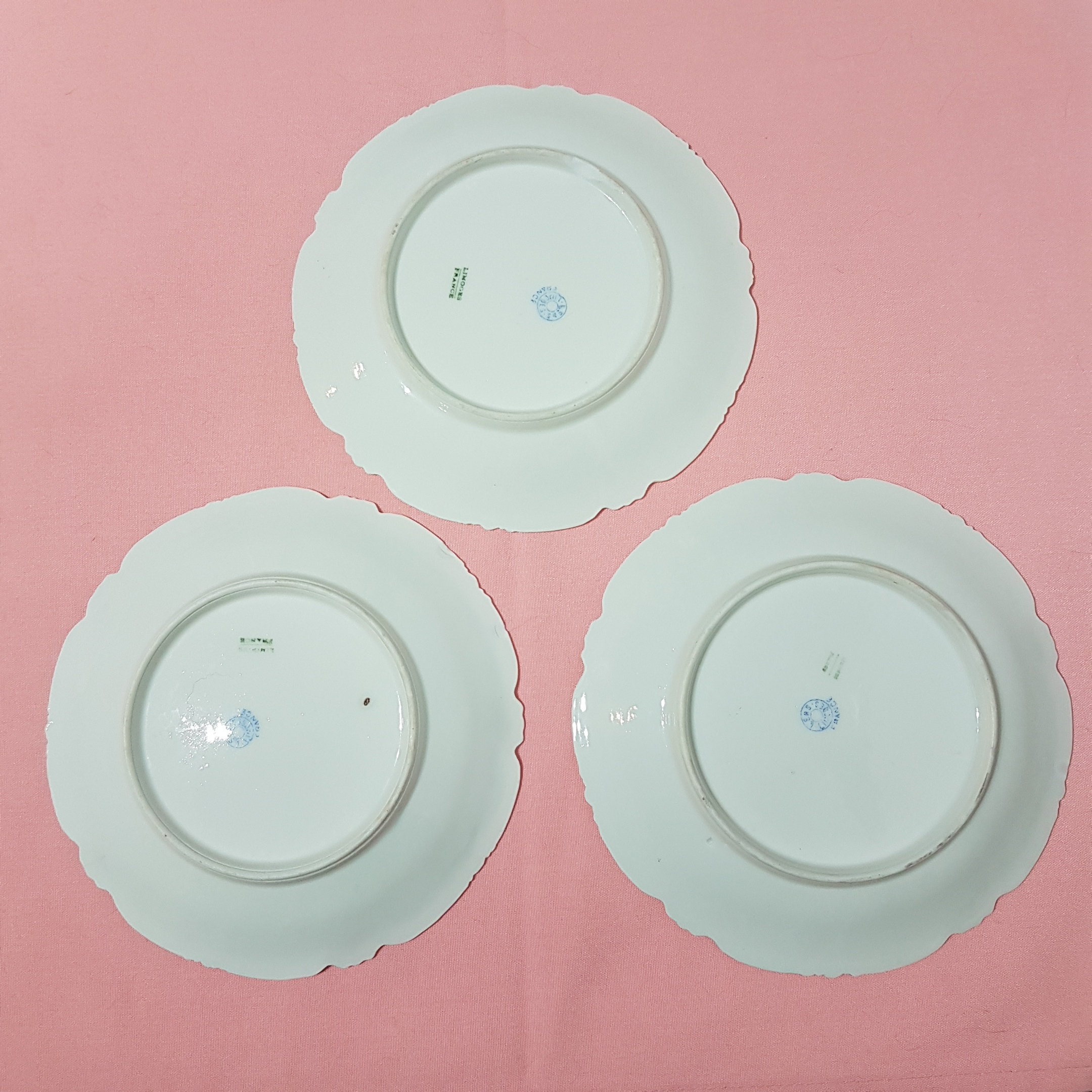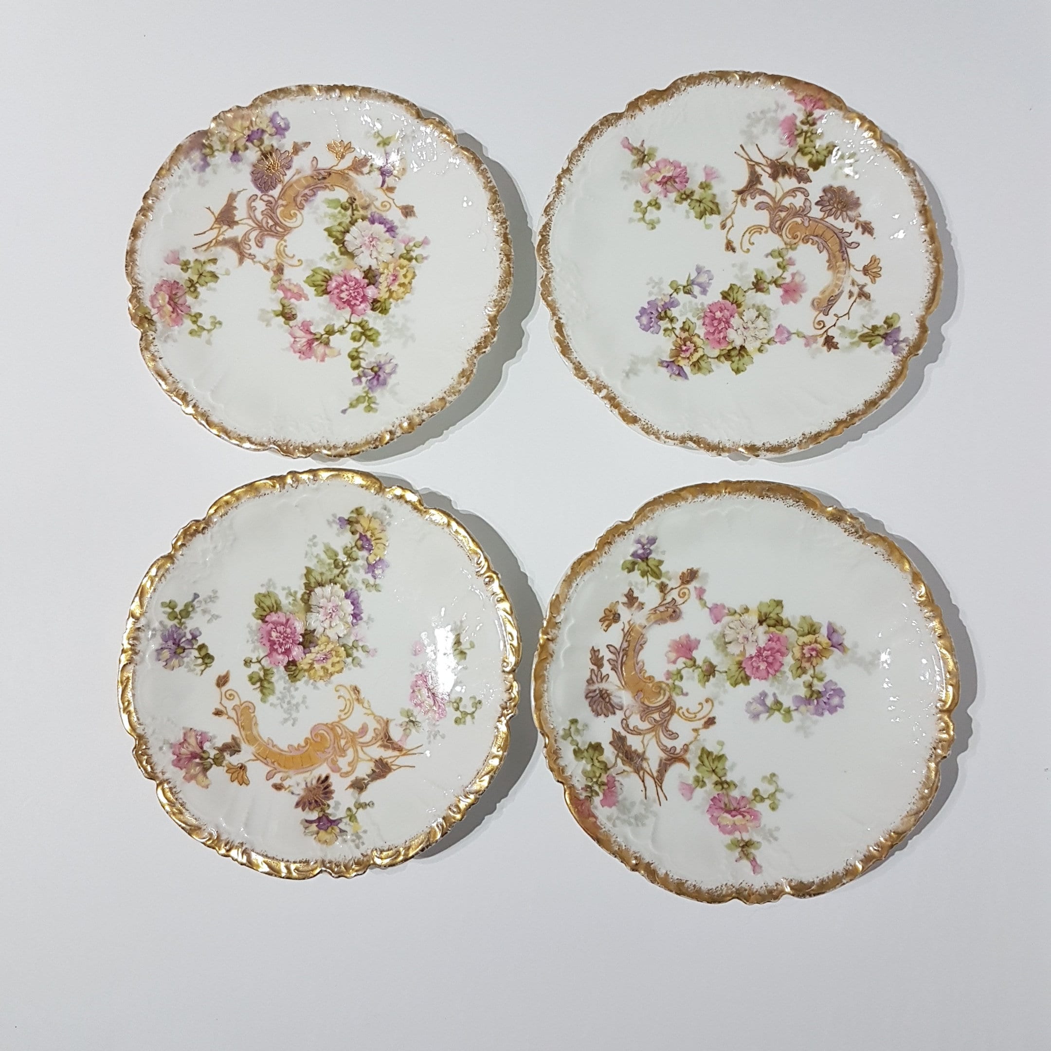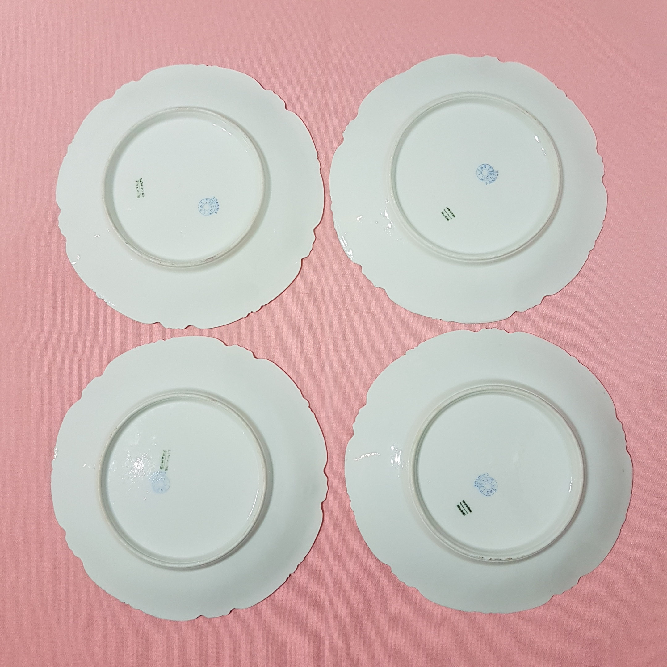 4 plates have chips on the back side of the plates but visible on the front face. Given the age, fine porcelain material and use of plates, some wear is to be expected.