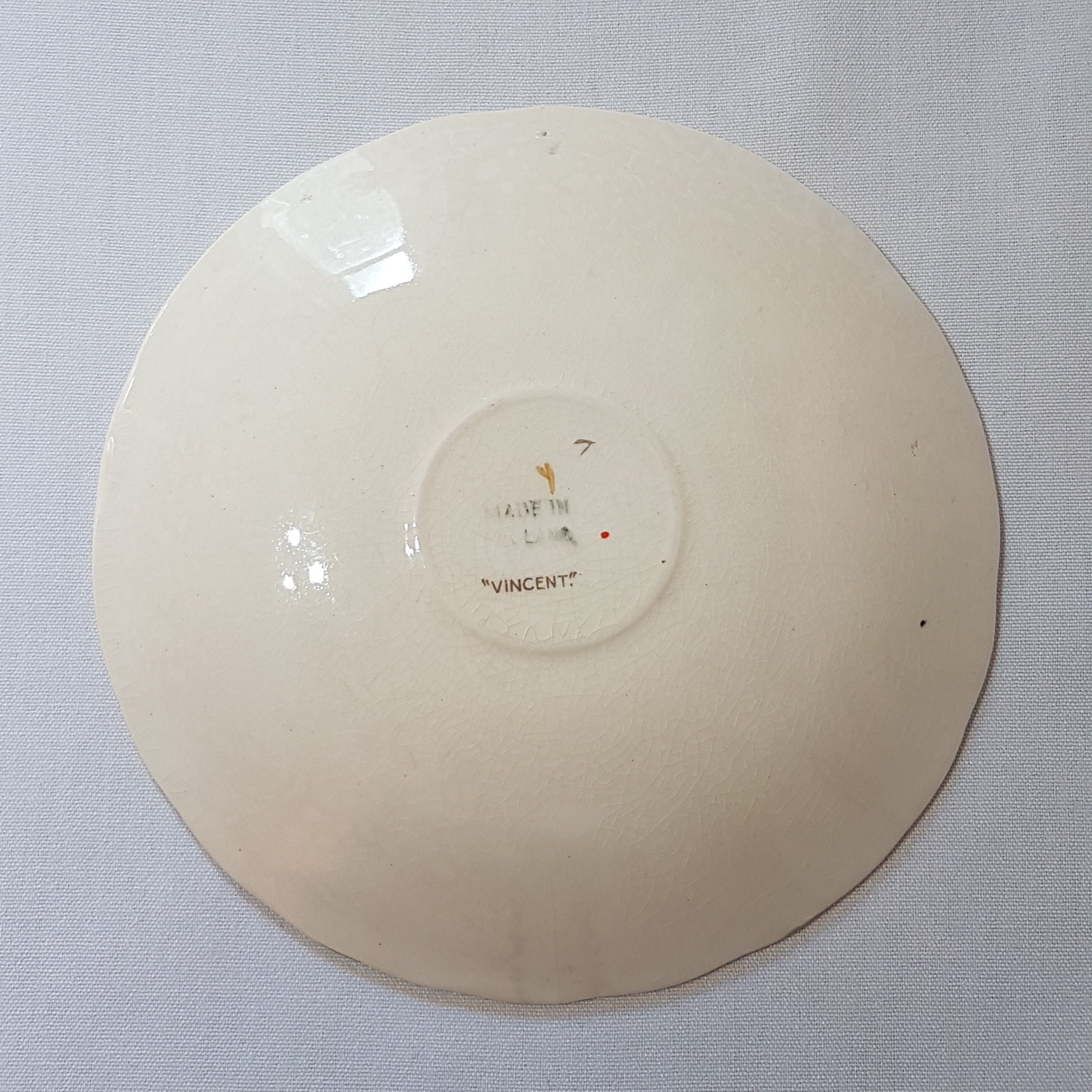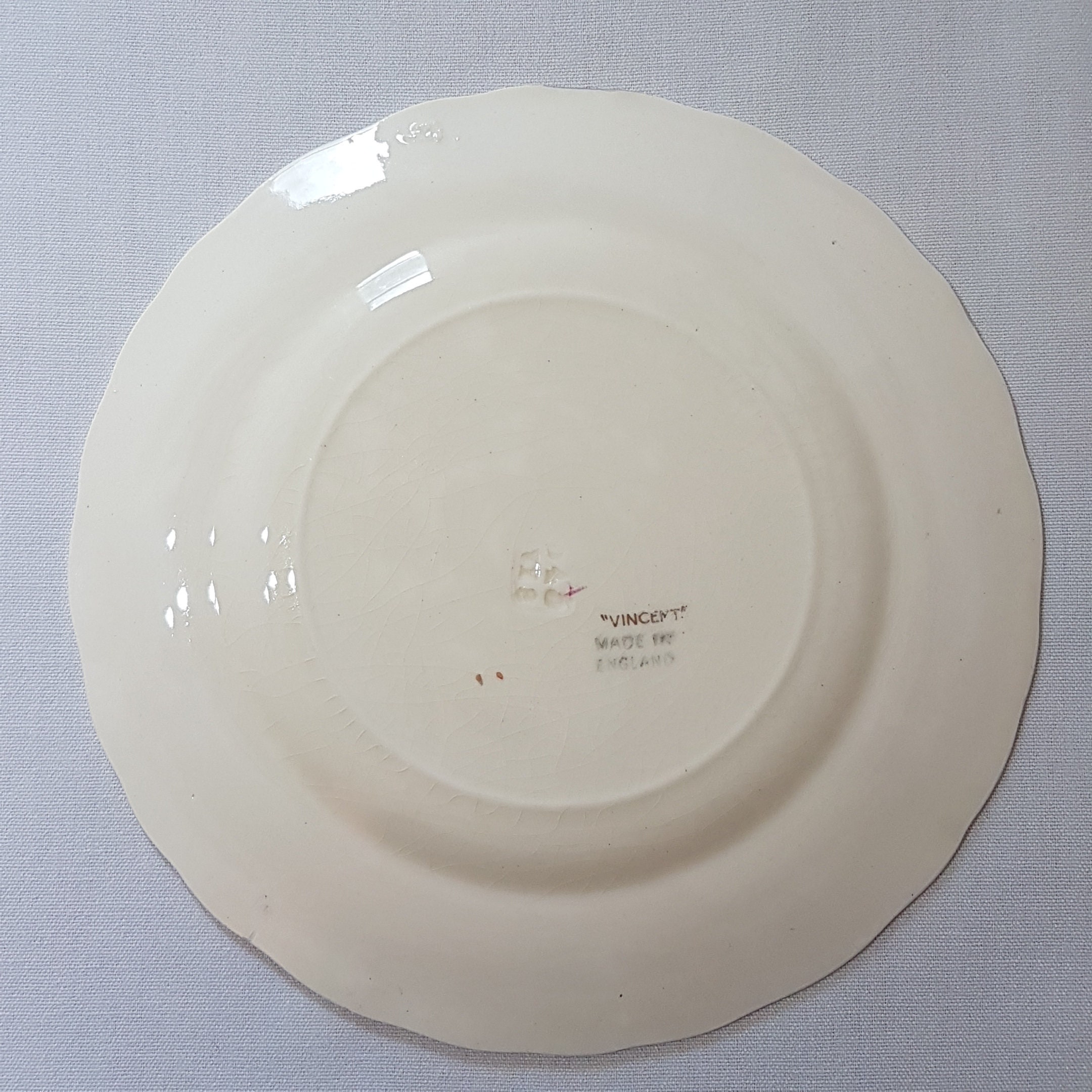 The underside of the saucer and dessert plate are impressed with the 3 digit letter code. Due to crazing, it is difficult to accurately distinguish, therefore; exact date is not provided.