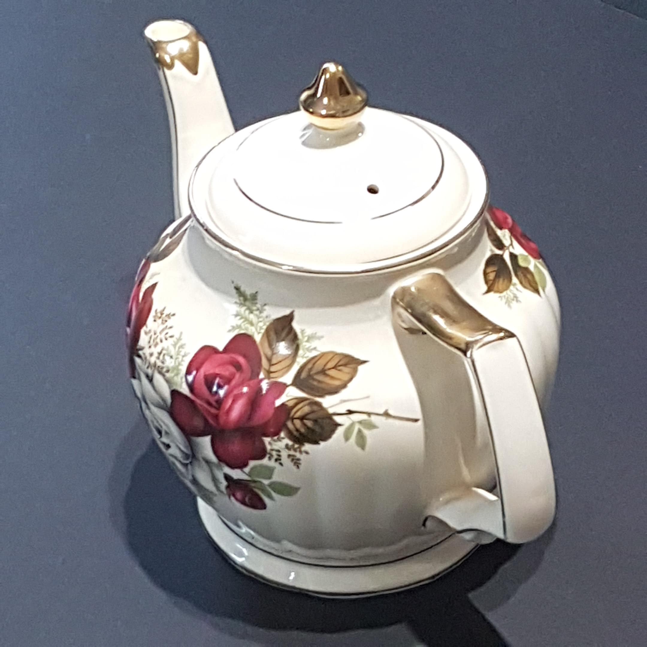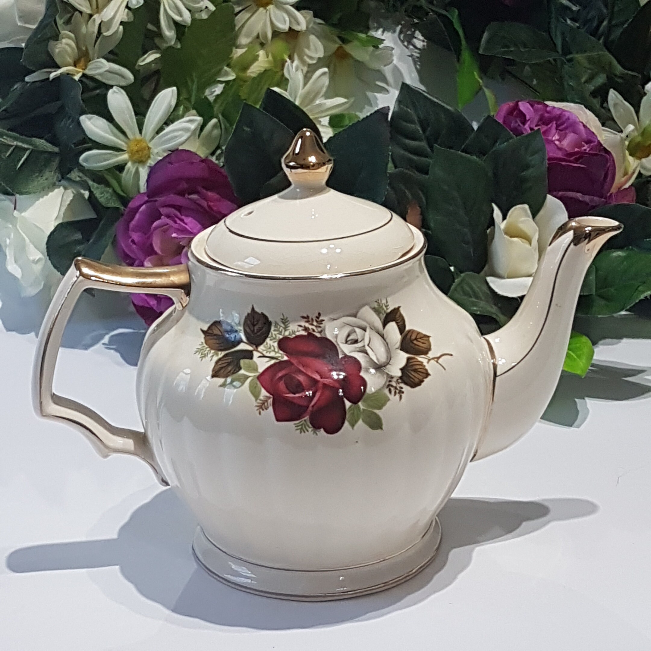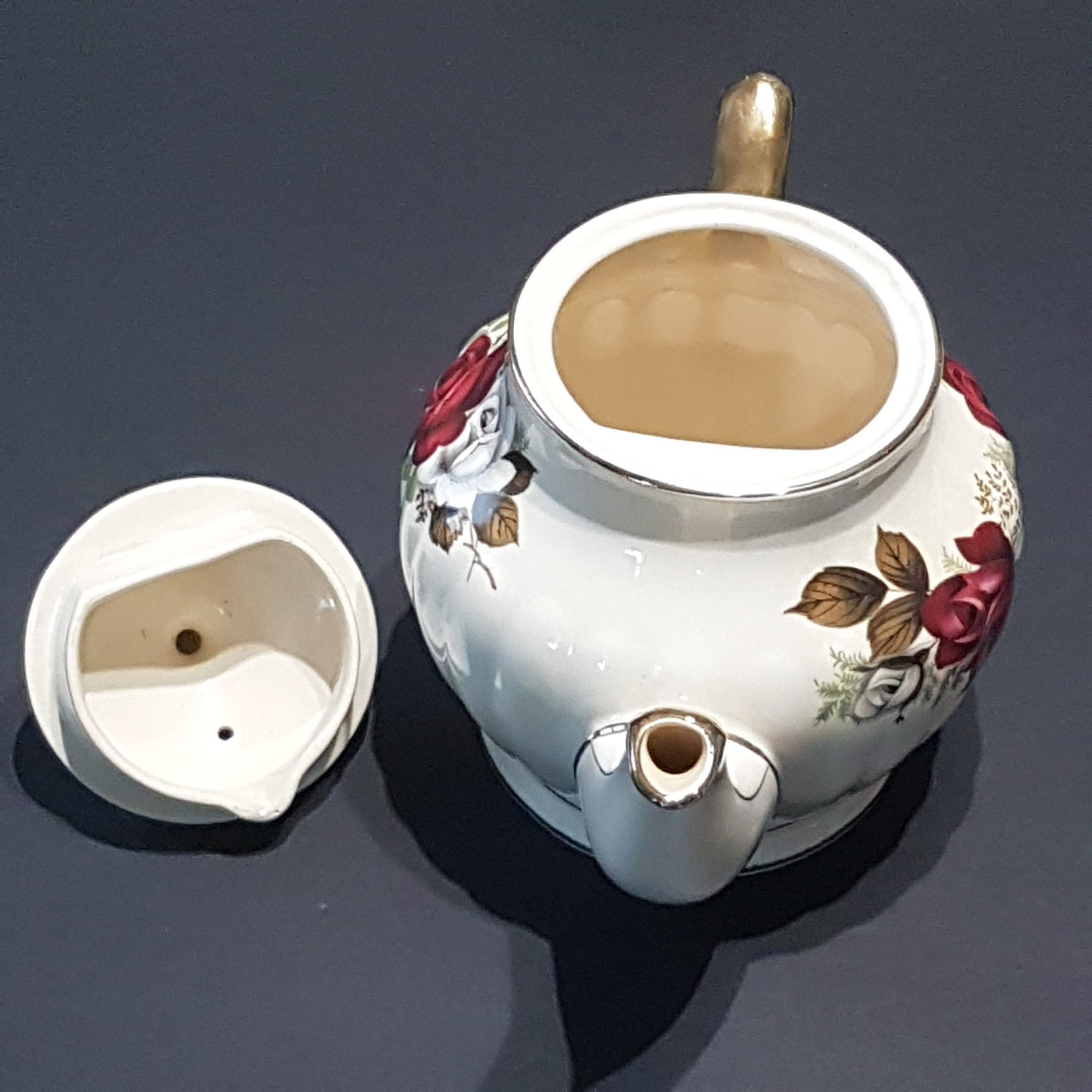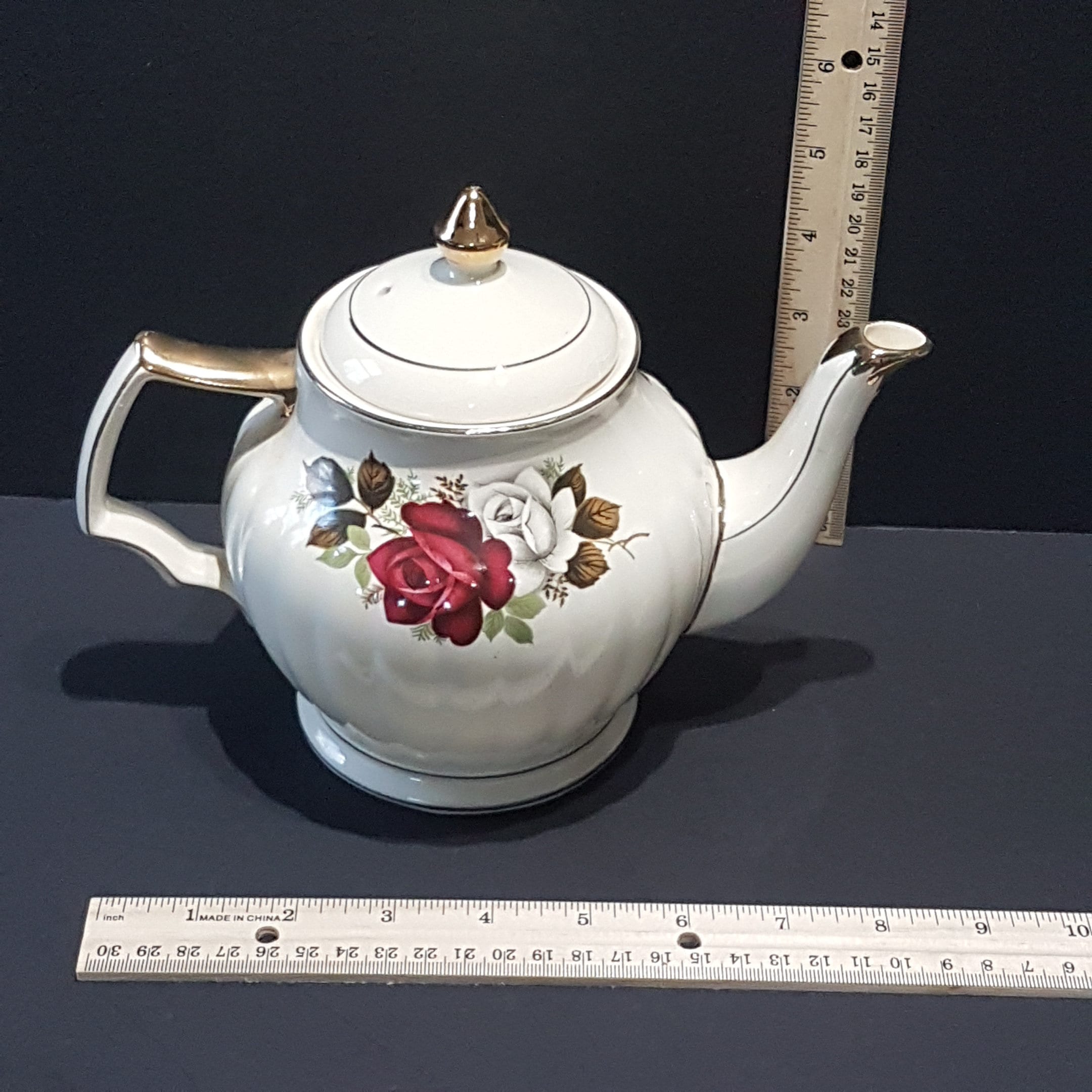 Lovely Sadler tea pot with white and red roses and gold gilded finial on top! So pretty for your afternoon tea!