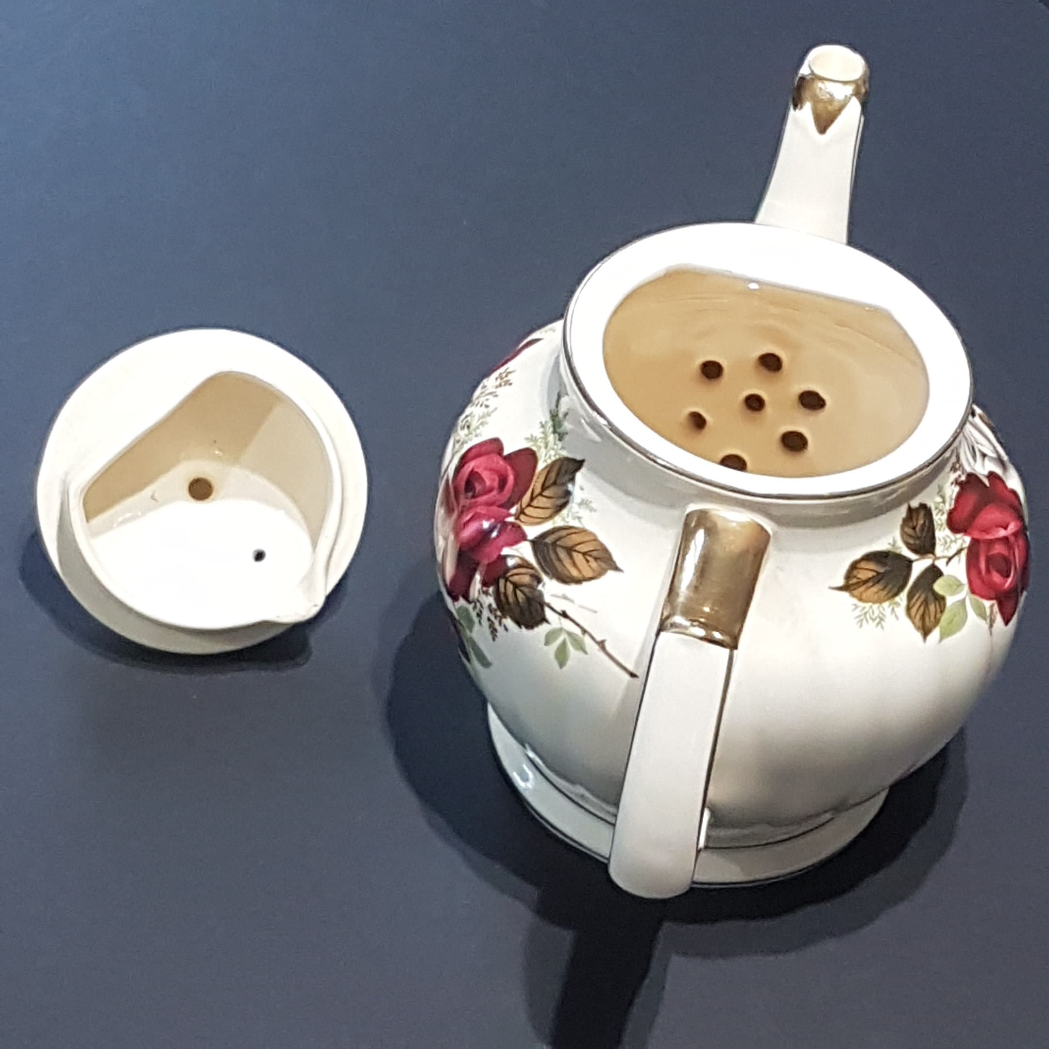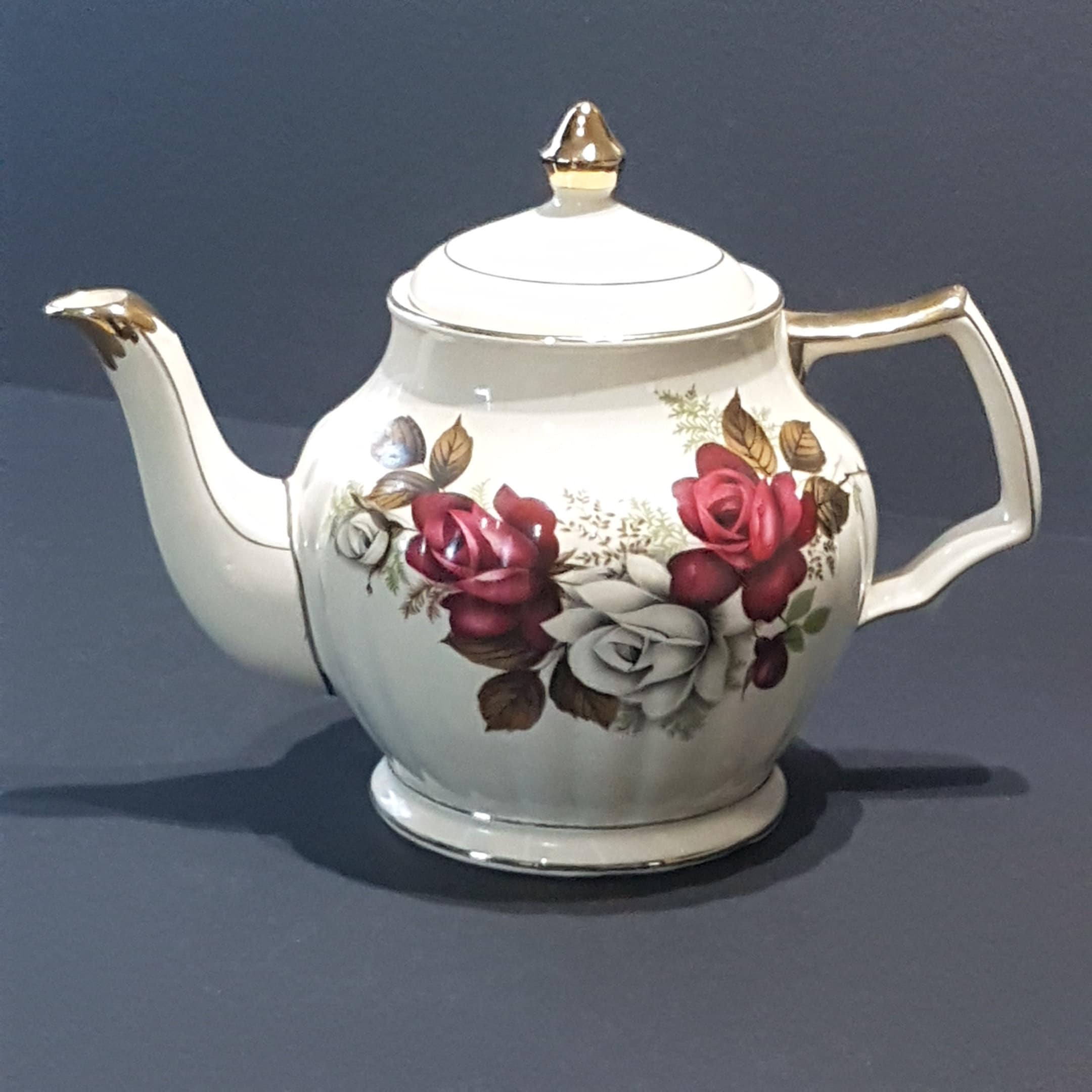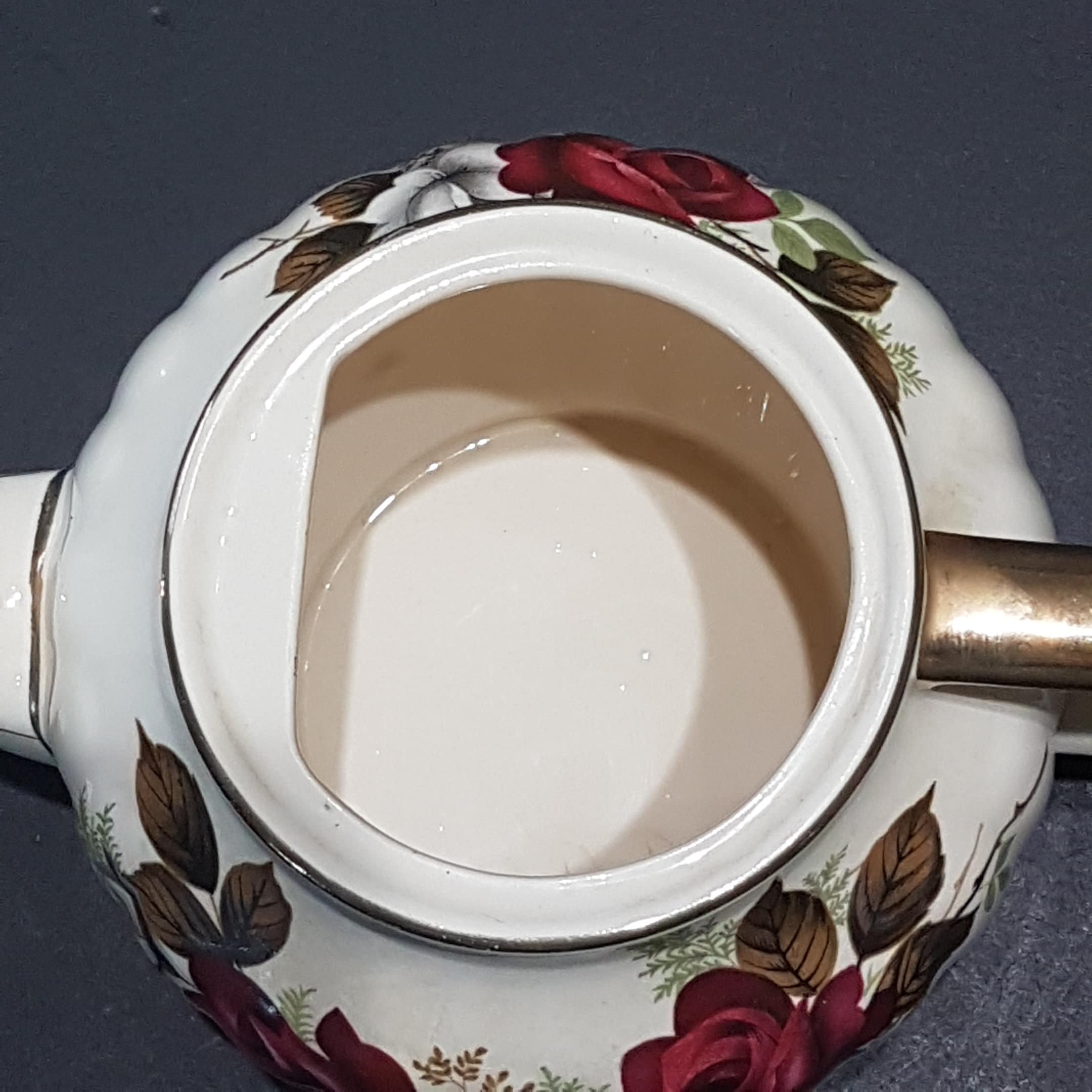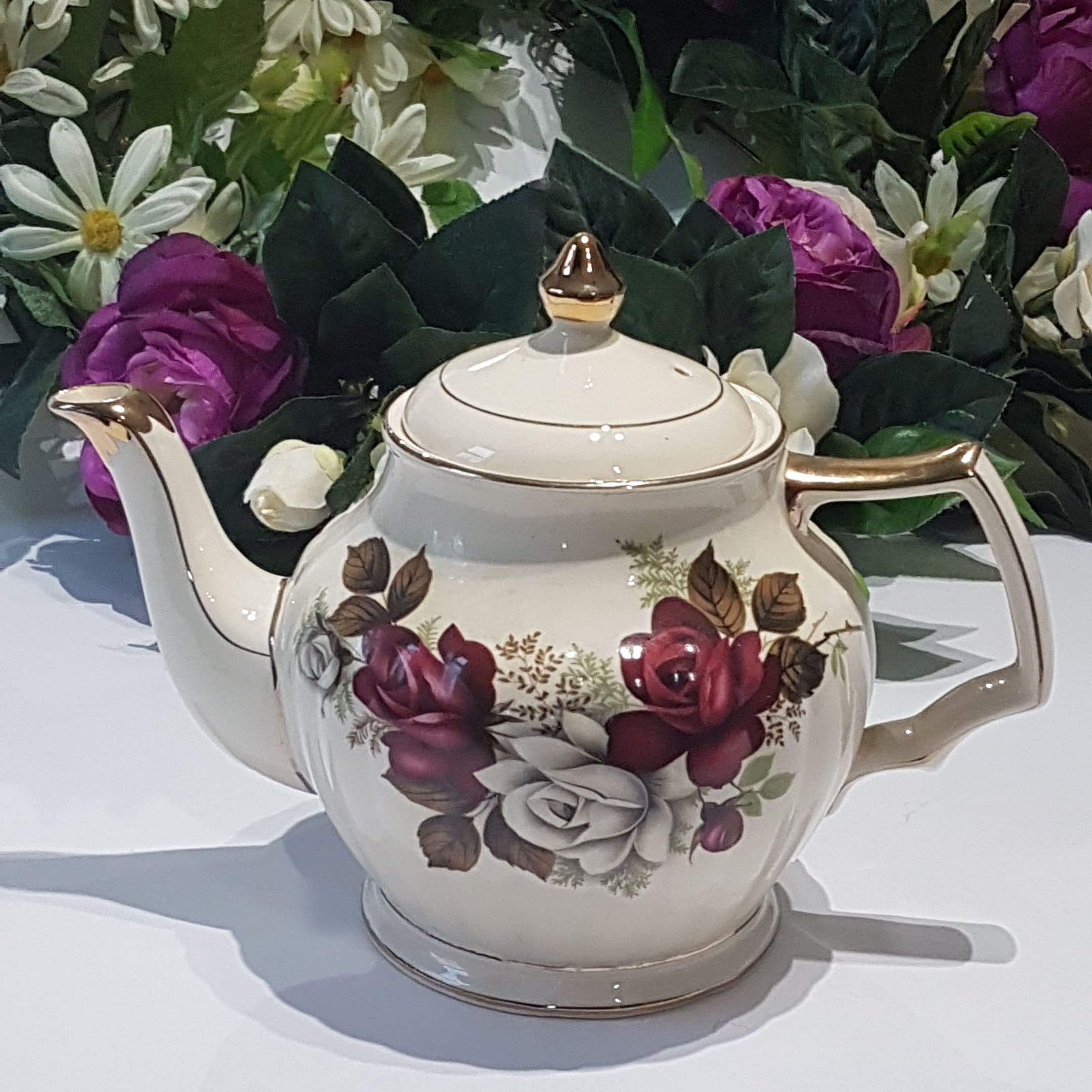 Lovely Sadler tea pot with white and red roses and gold gilded finial on top! So pretty for your afternoon tea!