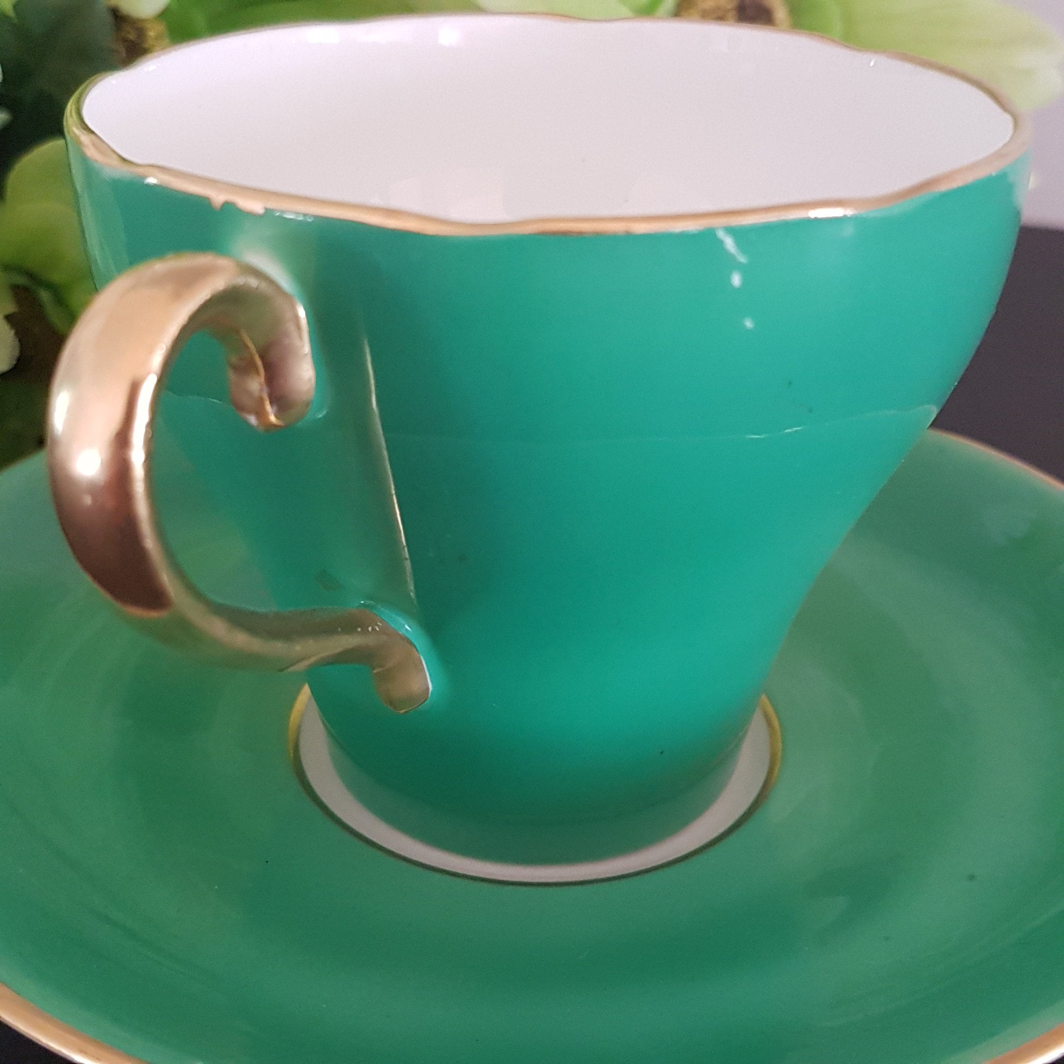 In excellent vintage condition, no chips, cracks, repairs or crazing. No obvious signs of gold wear. Few spots of wear to green on tea cup, please zoom in on pictures 9 & 10.