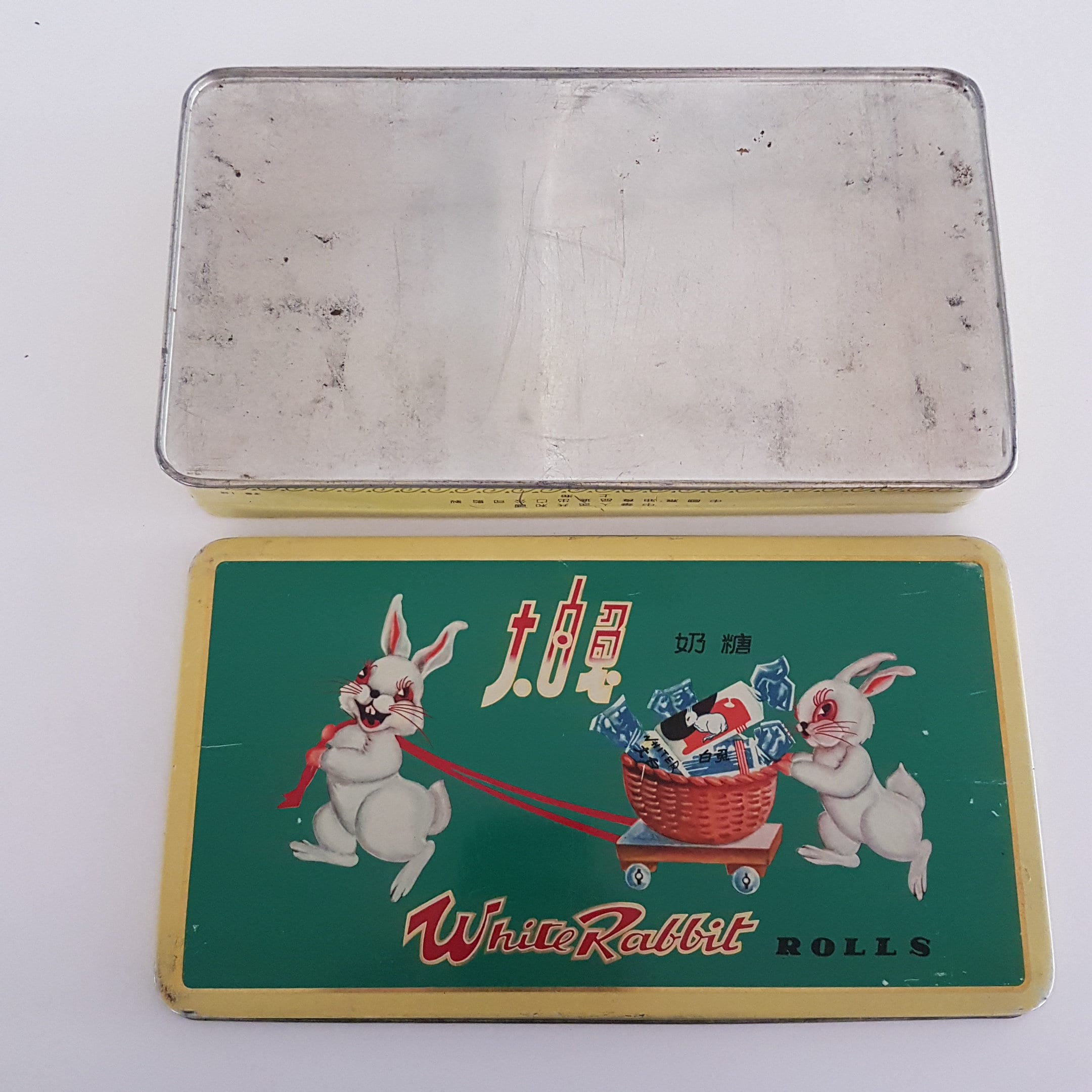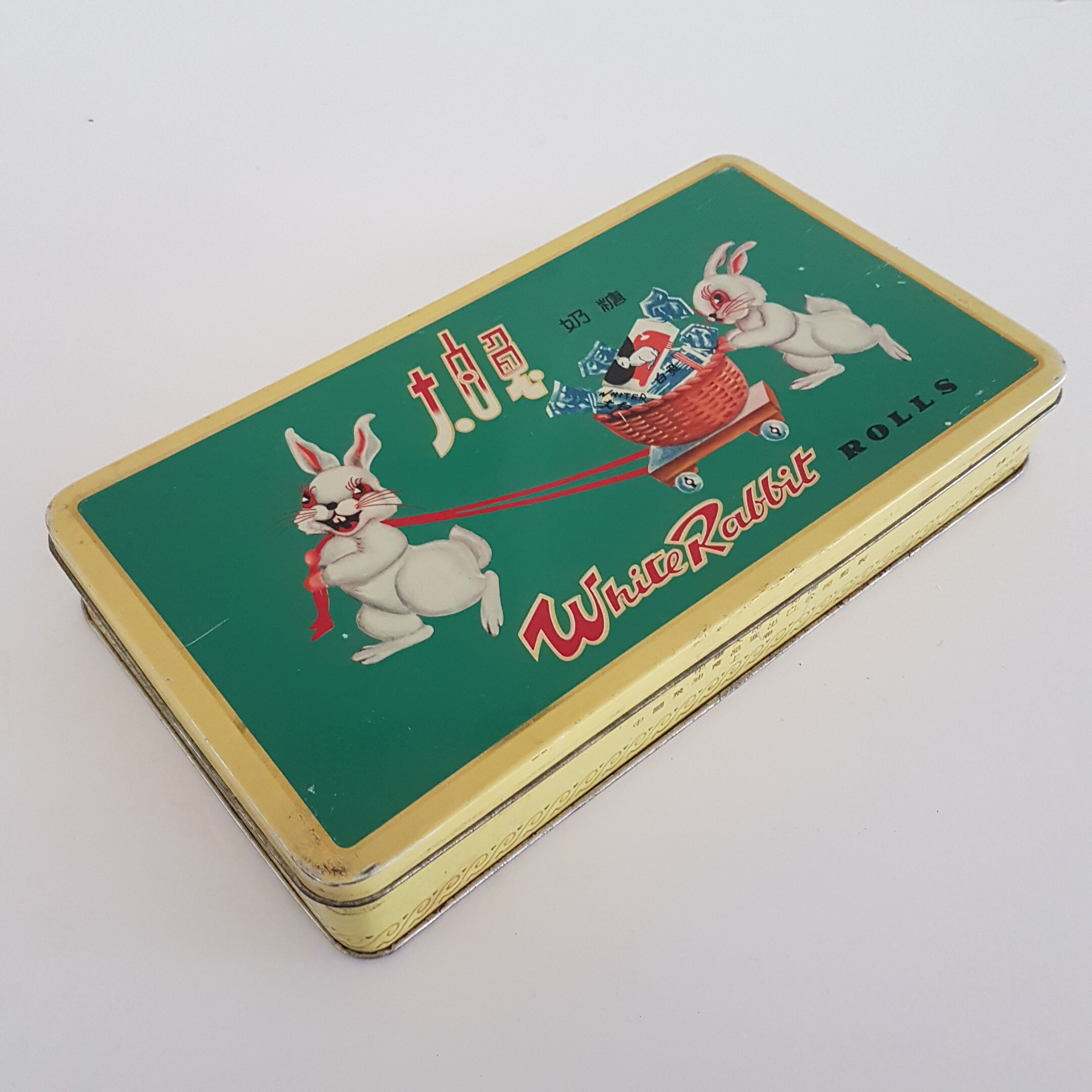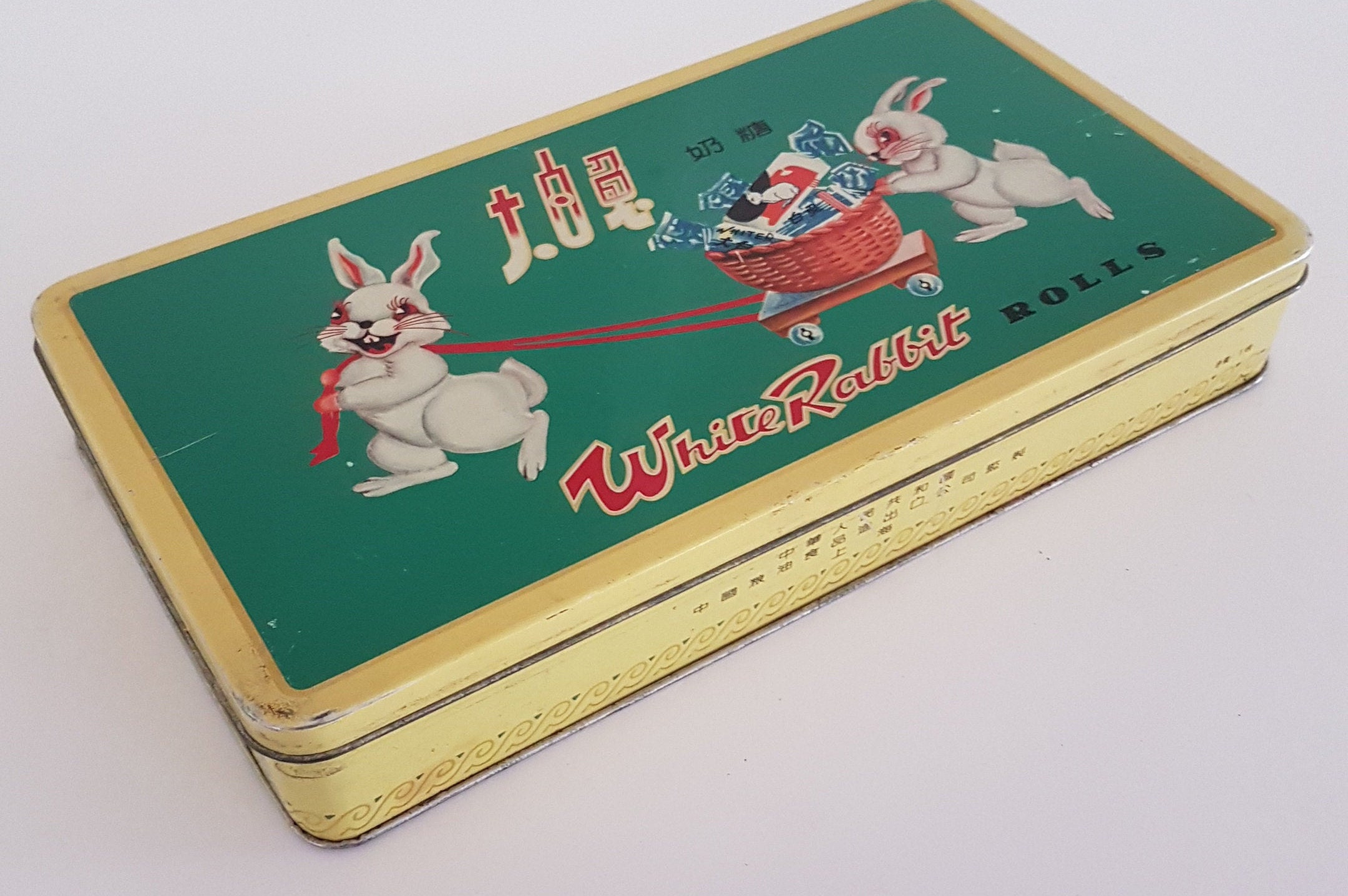 Vintage White Rabbit Rolls Candy tin. Great for the candy advertising collector!