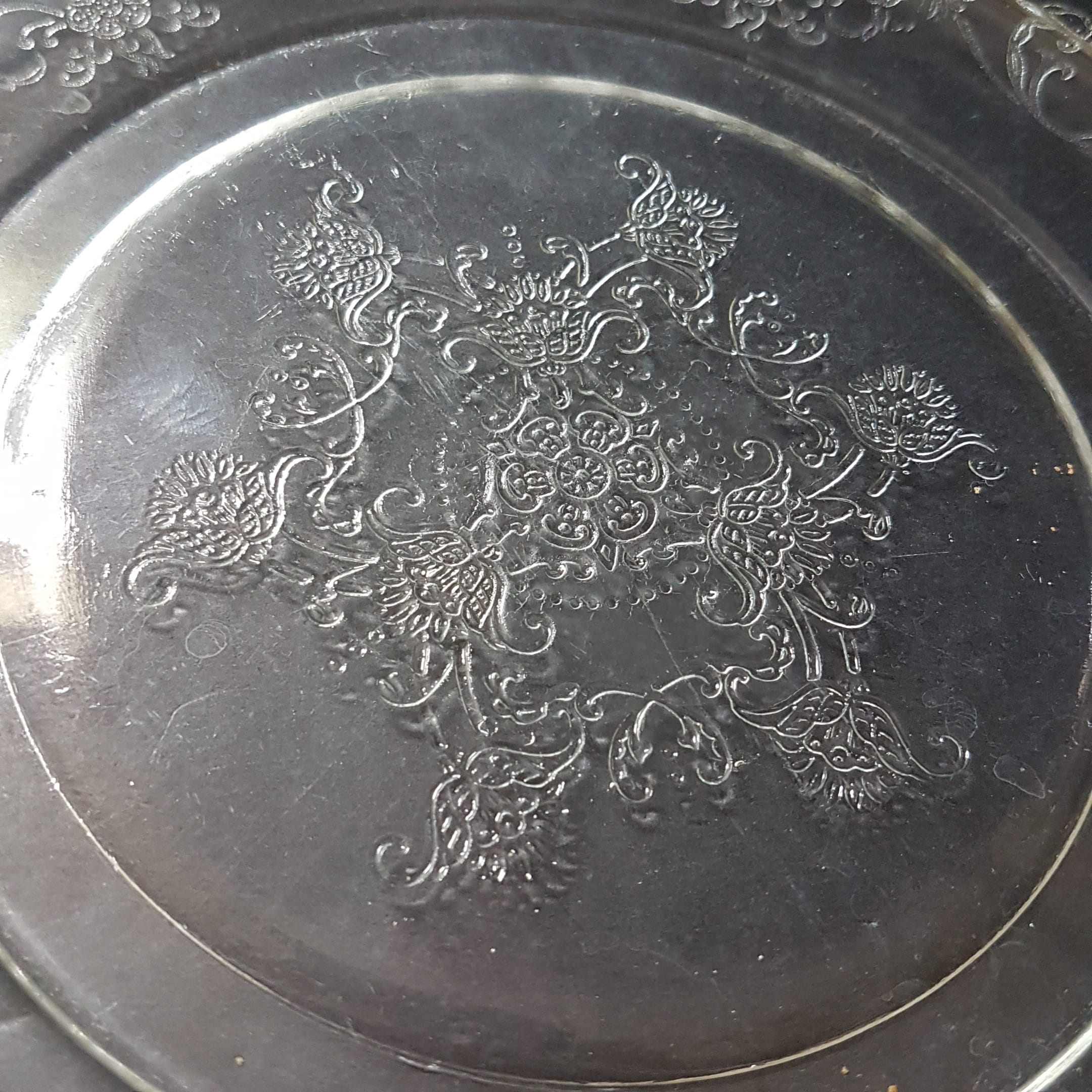 Vintage condition: NO chips or cracks. Few air bubbles in glass, as commonly found in Depression Glassware. Few light utensil marks on plate face.