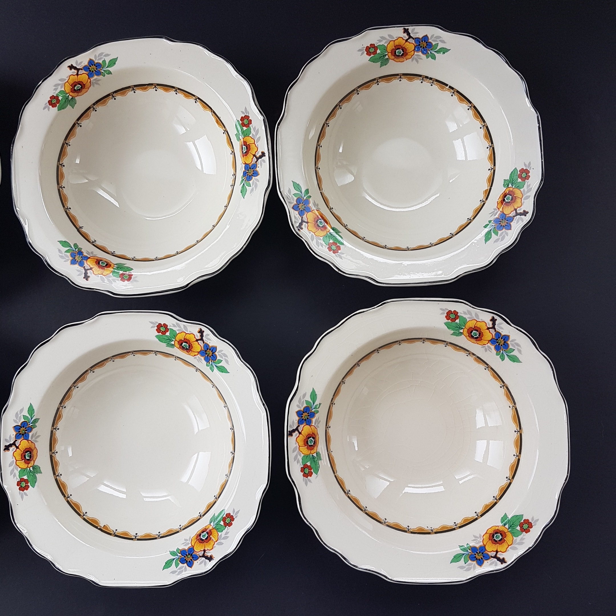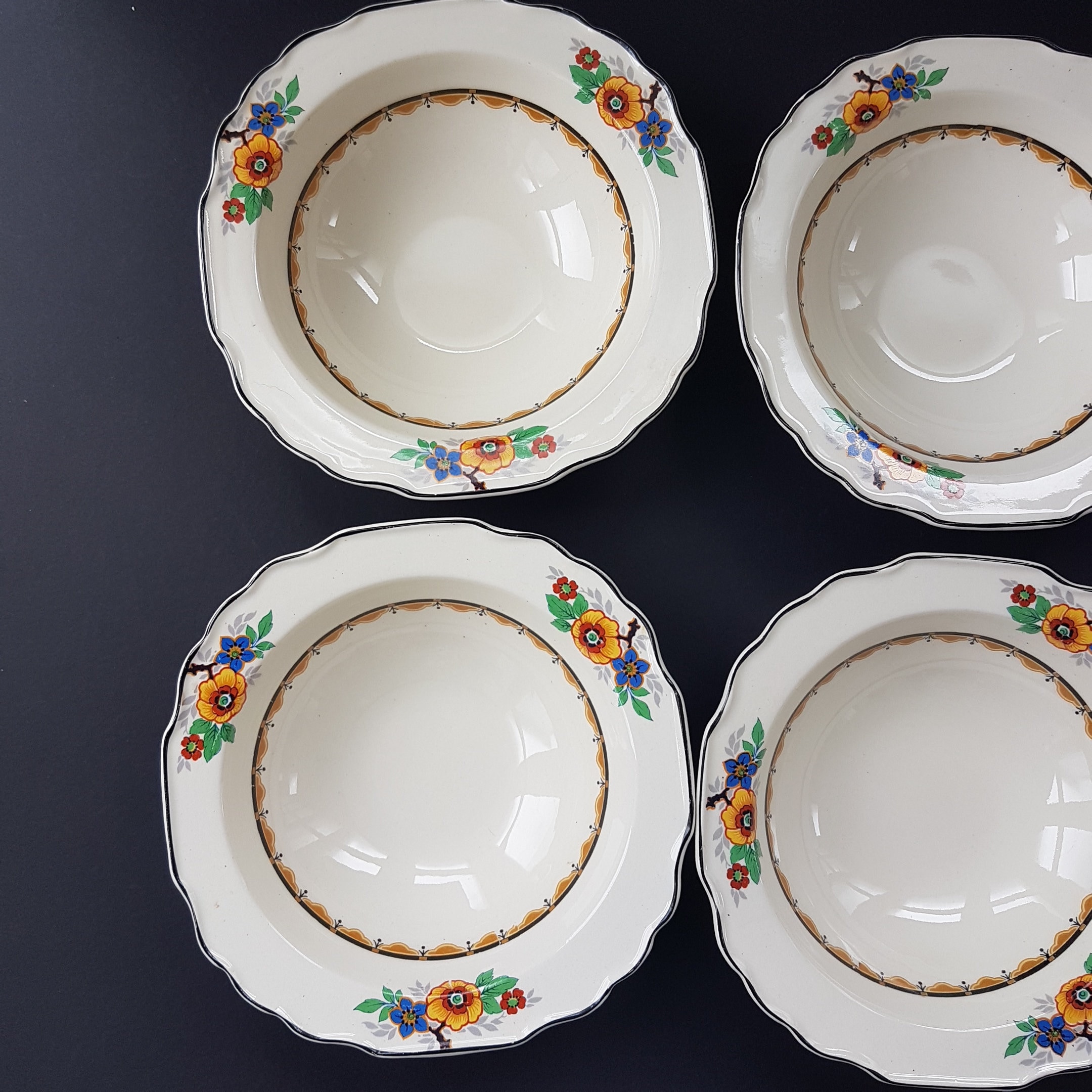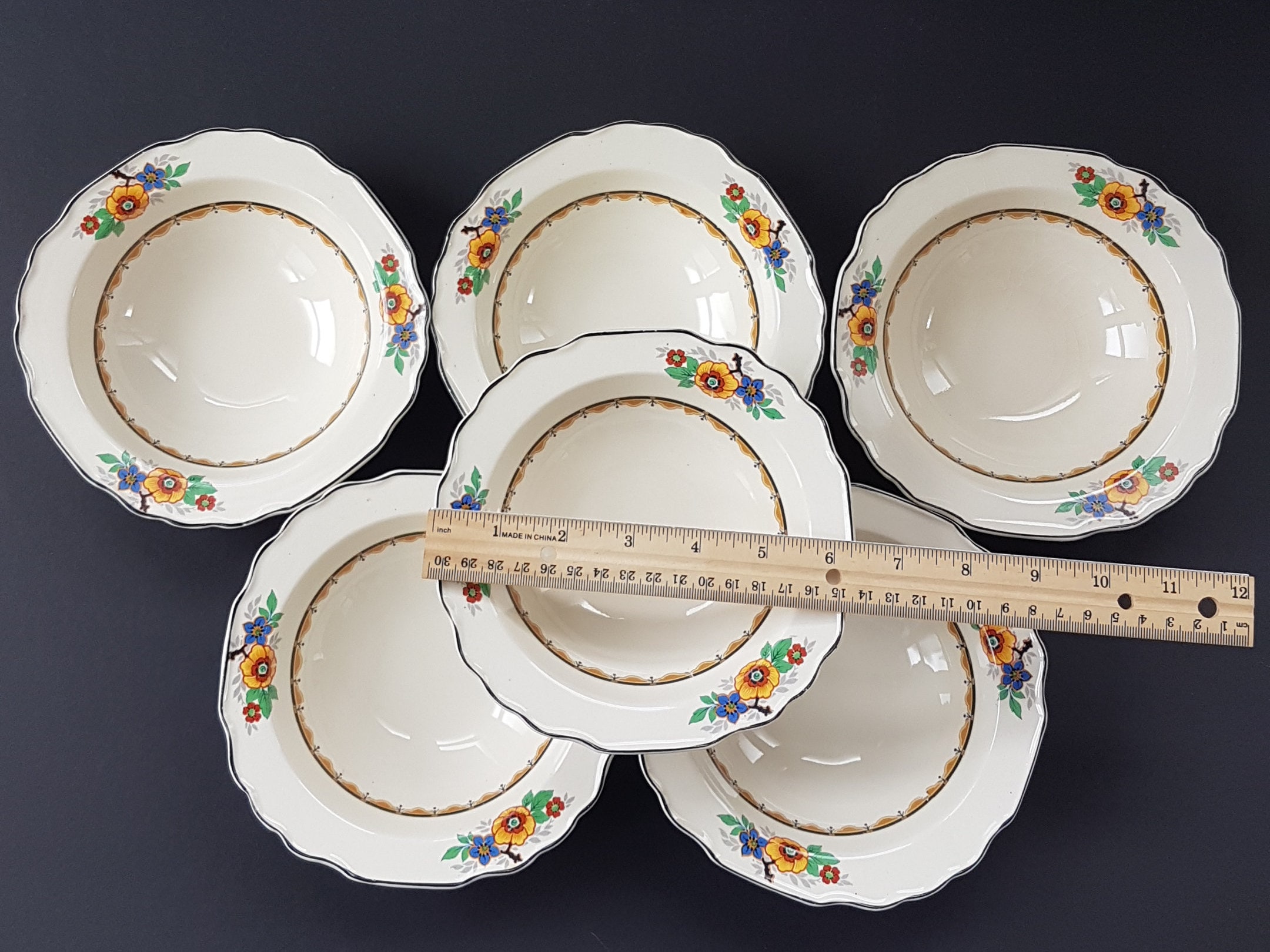 Set of 6 - Art Deco, Rimmed Soup Bowls / Cereal Bowls (1920-1949)